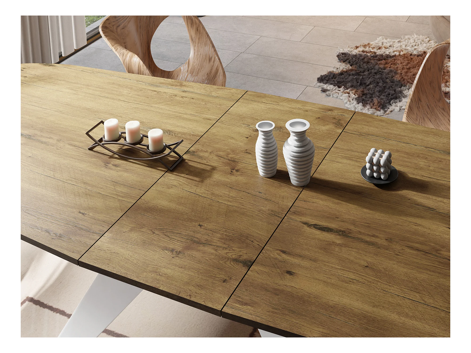 Ausziehbarer Esstisch im Loft-Stil - Industrieller Tisch mit Weißen Metallbeinen - Modernes Design für Wohnzimmer - 160 cm Ausziehbar auf 200 cm - Lancelot Eiche