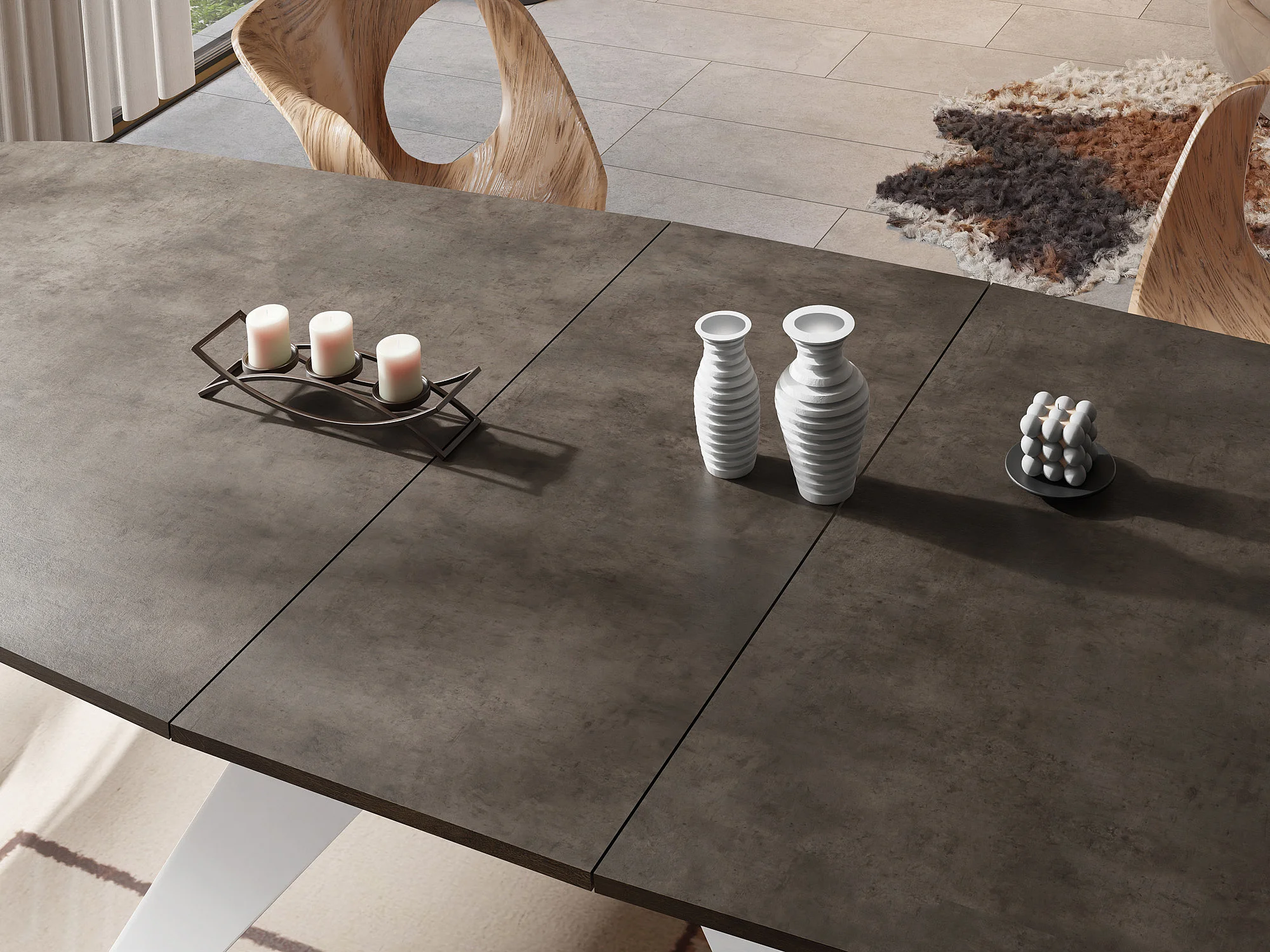 Ausziehbarer Esstisch im Loft-Stil - Industrieller Tisch mit Weißen Metallbeinen - Modernes Design für Wohnzimmer 180 cm Ausziehbar auf 220 cm - Chicago Beton Grau