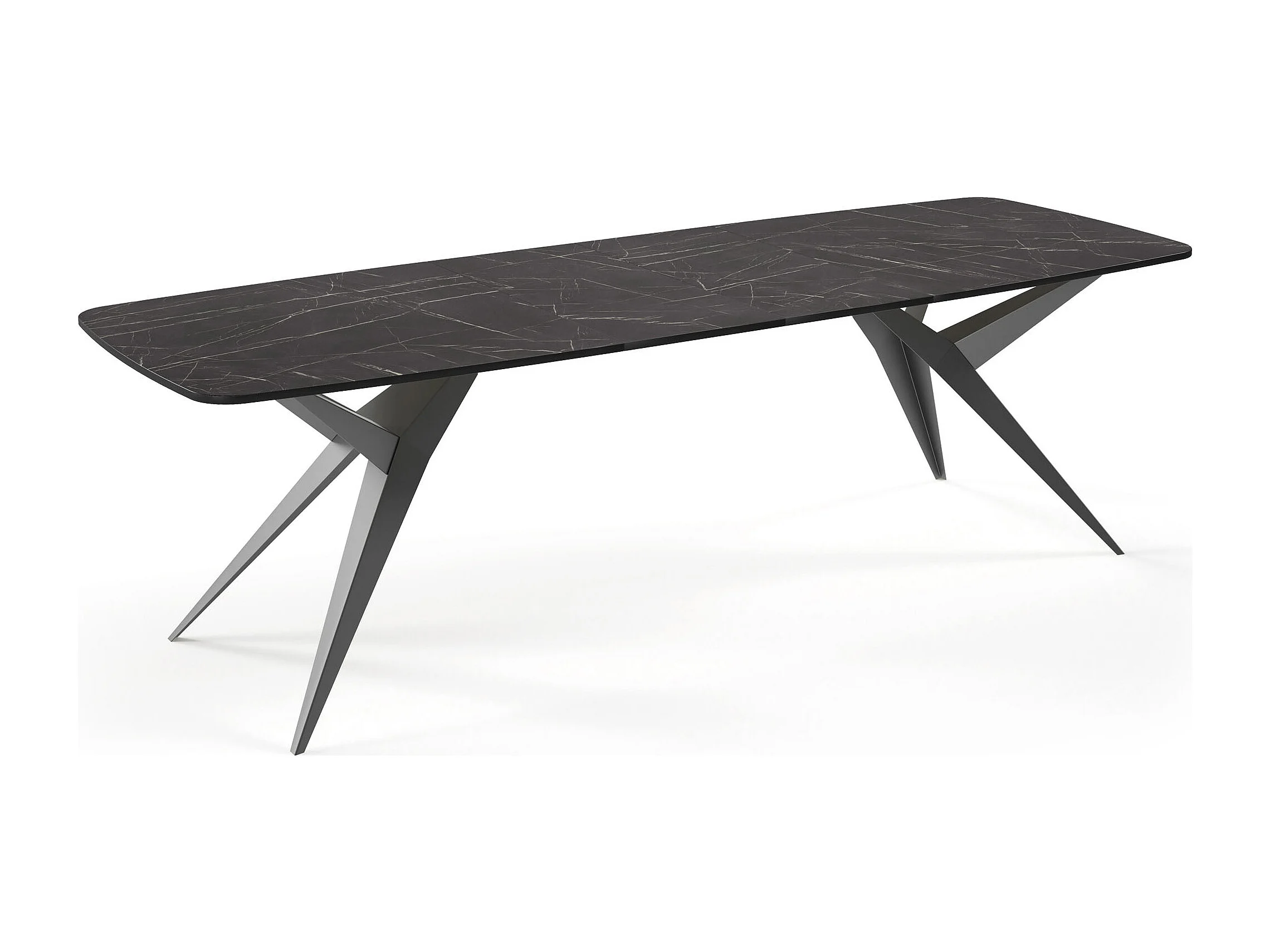 Ausziehbarer Esstisch im Loft-Stil – Rechteckiger Tisch mit Schwarzen Metallbeinen – Industrietisch mit Abgerundeten Ecken für 10-14 Personen – 200cm Marmor Schwarz