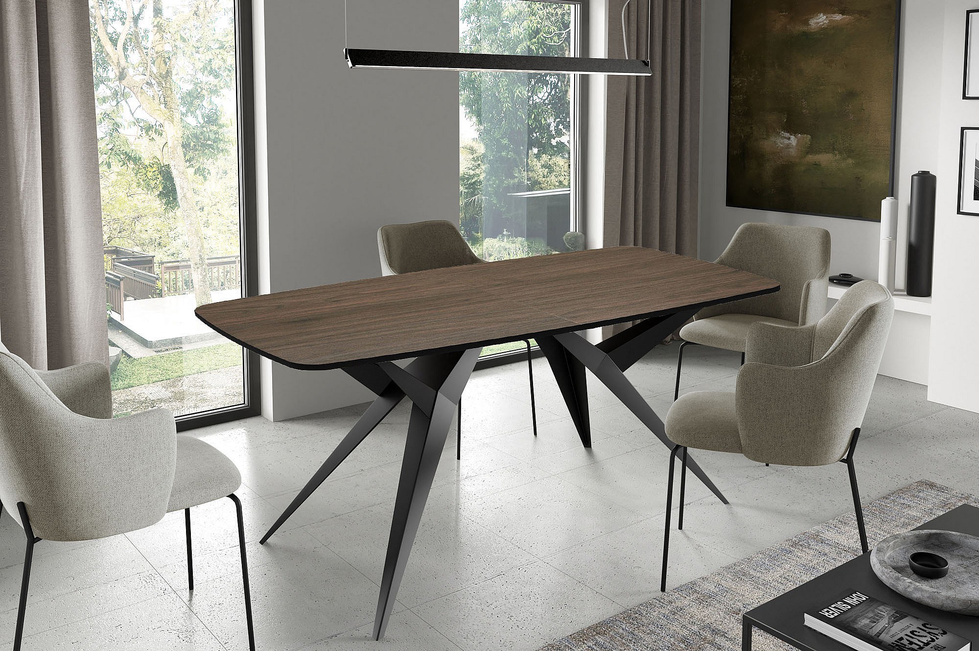 Ausziehbarer Esstisch im Loft-Stil – Rechteckiger Tisch mit Schwarzen Metallbeinen – Industrietisch mit Abgerundeten Ecken – für 6-10 Personen – 160cm Walnuss Braun