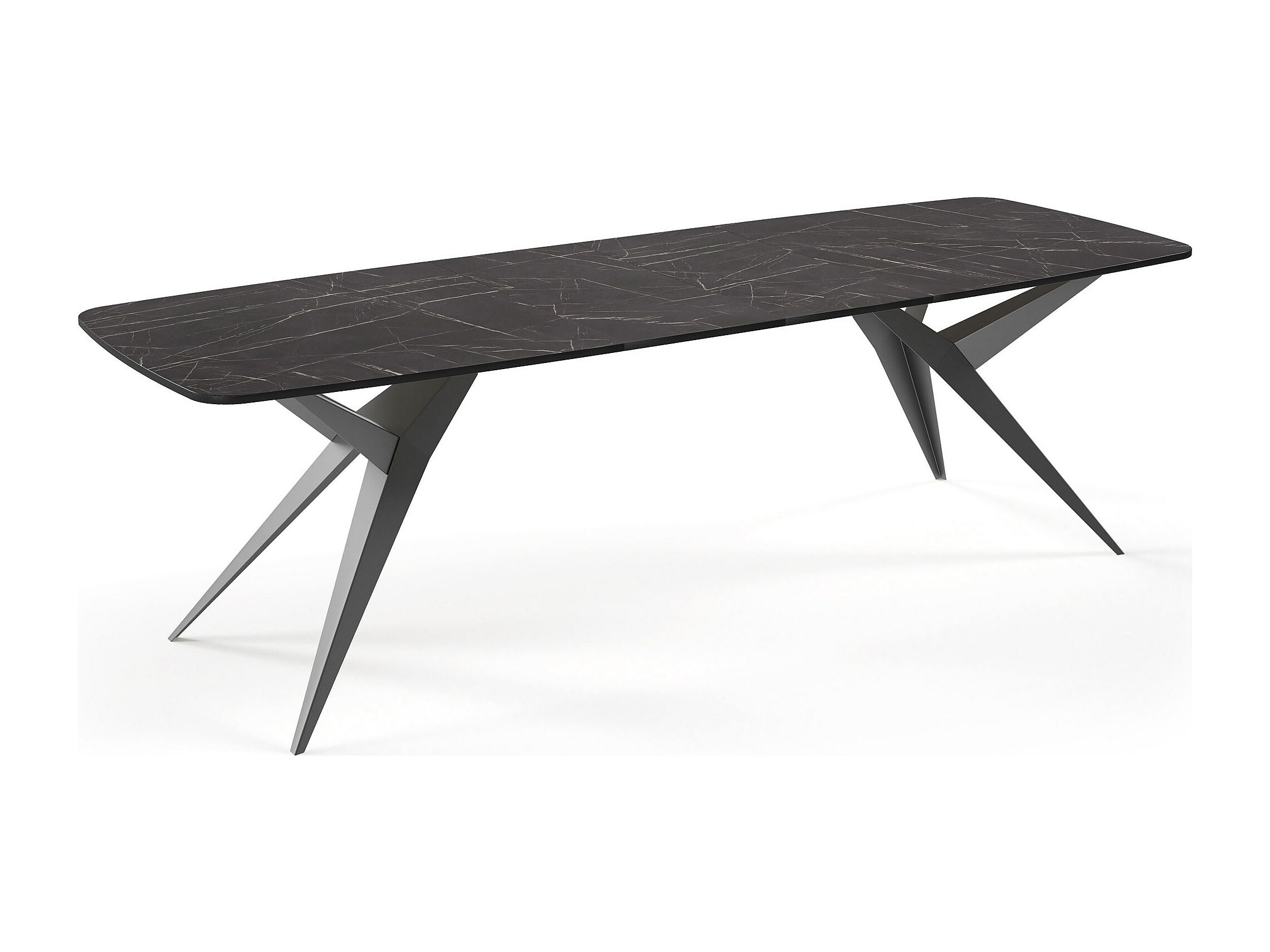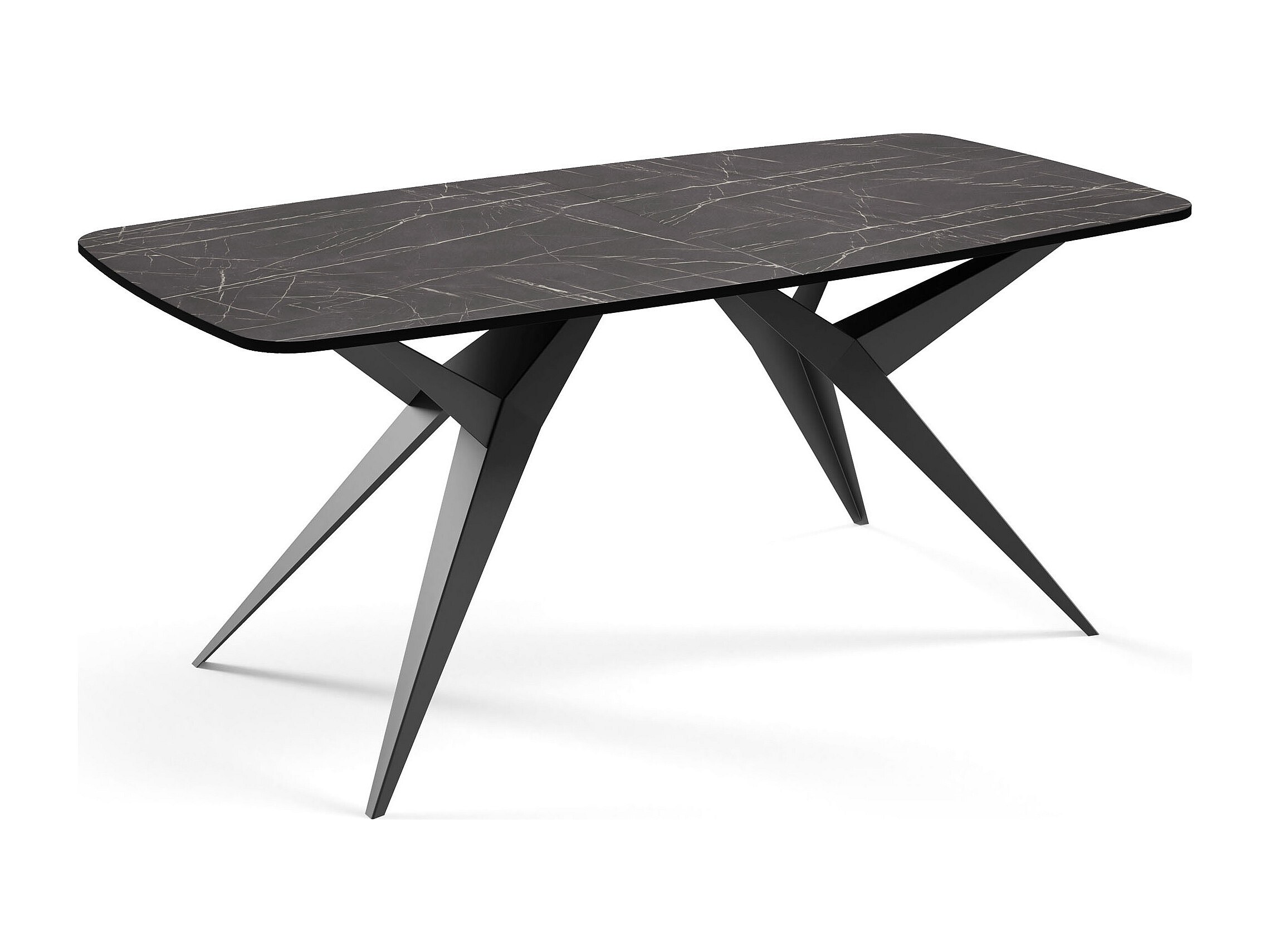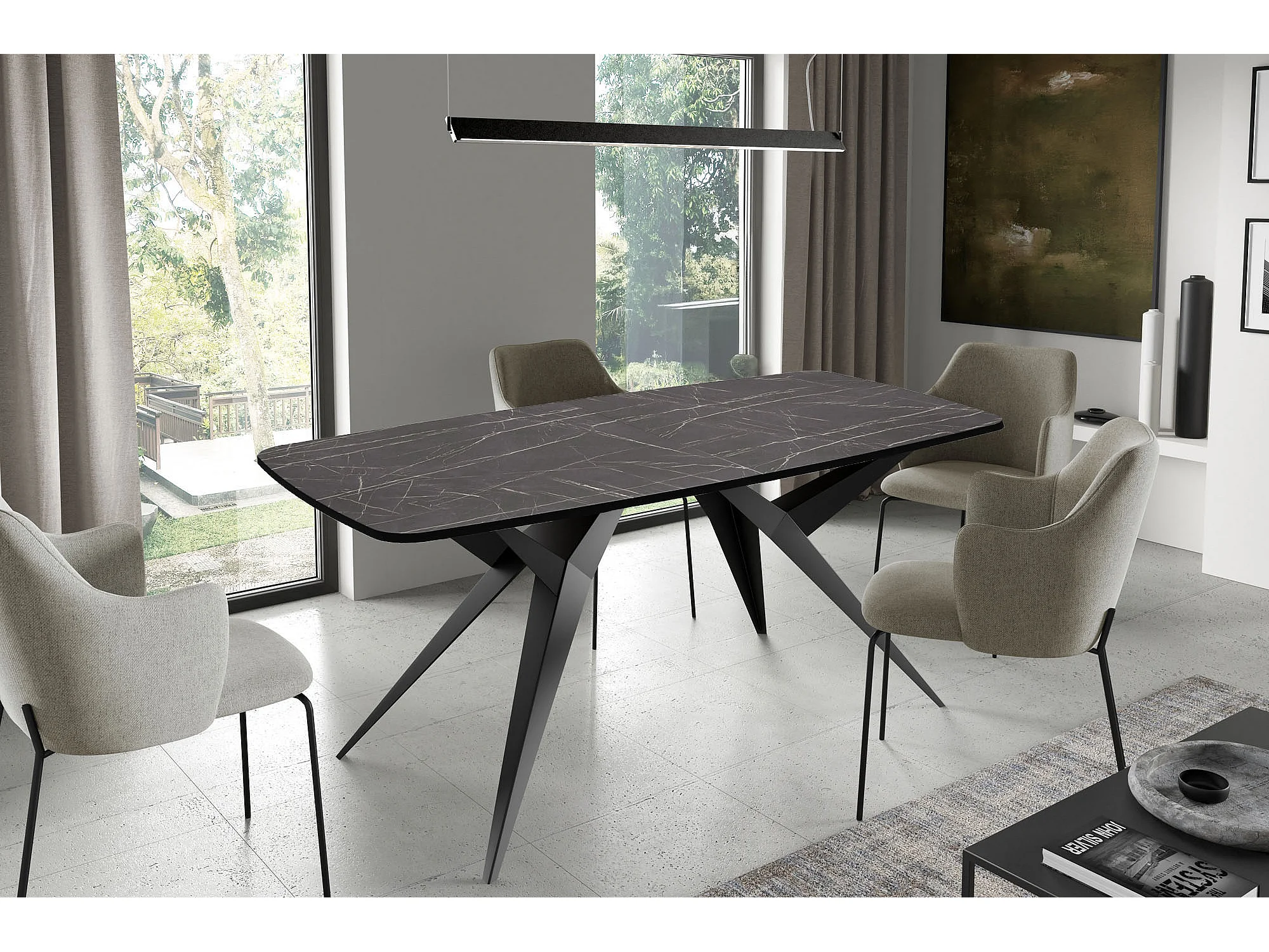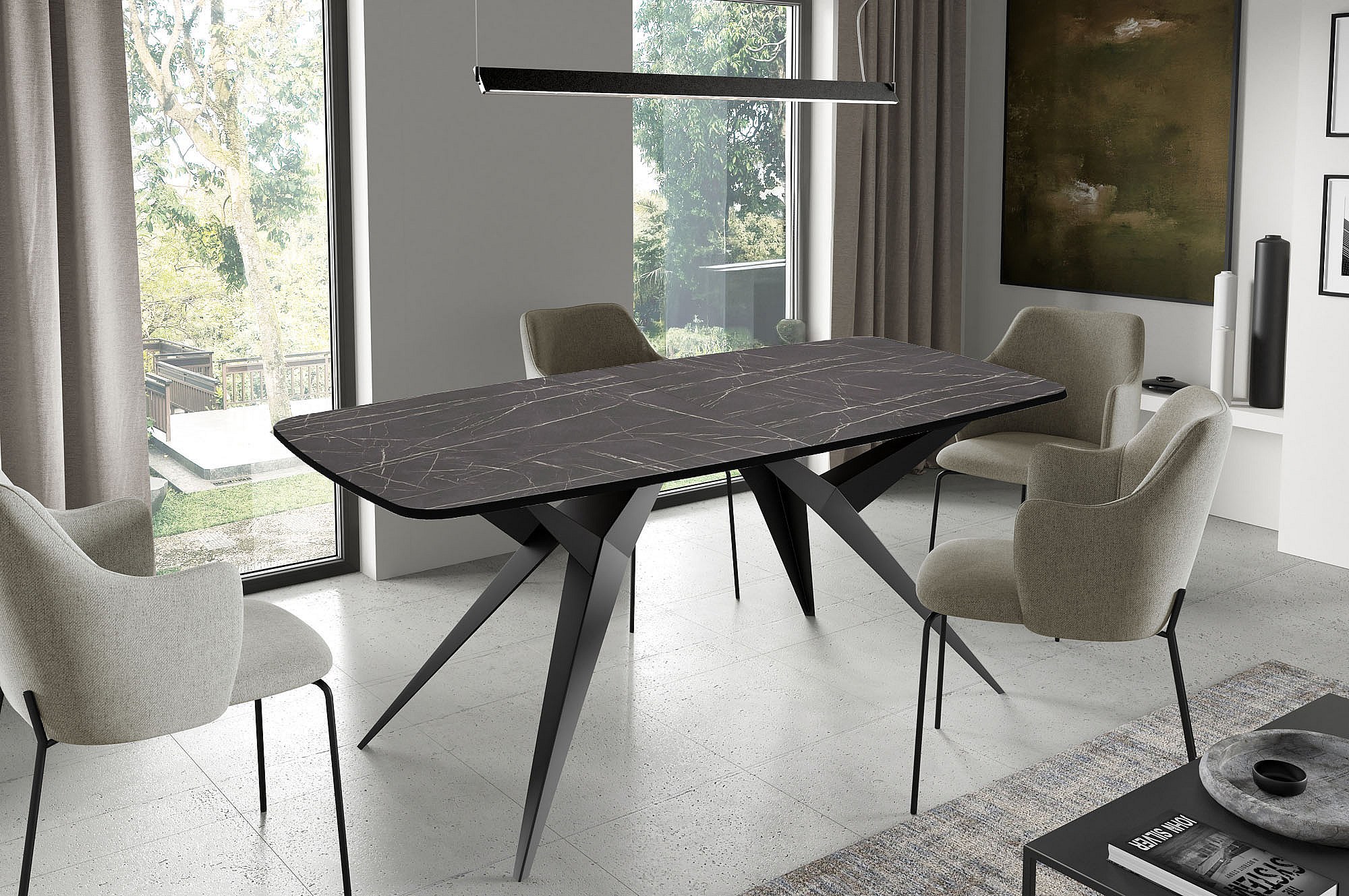 Ausziehbarer Esstisch im Loft-Stil – Rechteckiger Tisch mit Schwarzen Metallbeinen – Industrietisch mit Abgerundeten Ecken für 8-12 Personen – 180 cm Marmor Schwarz