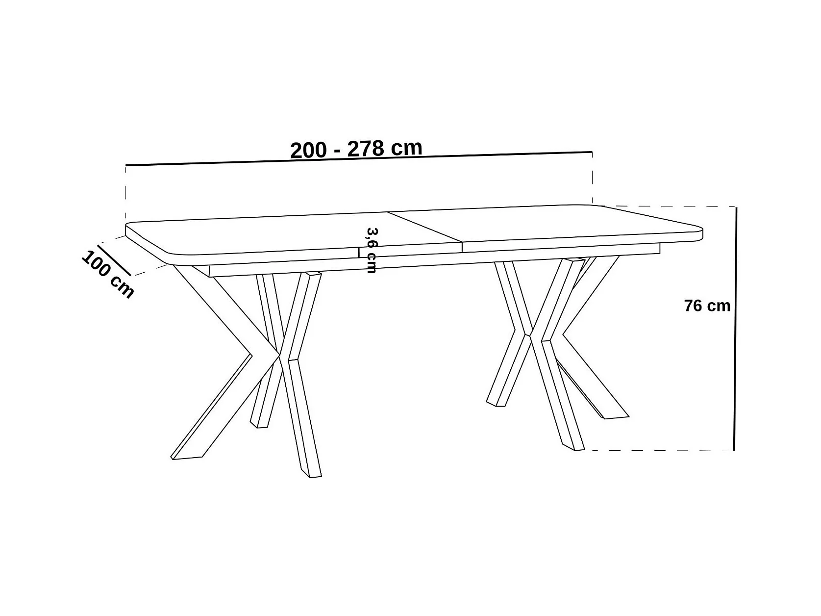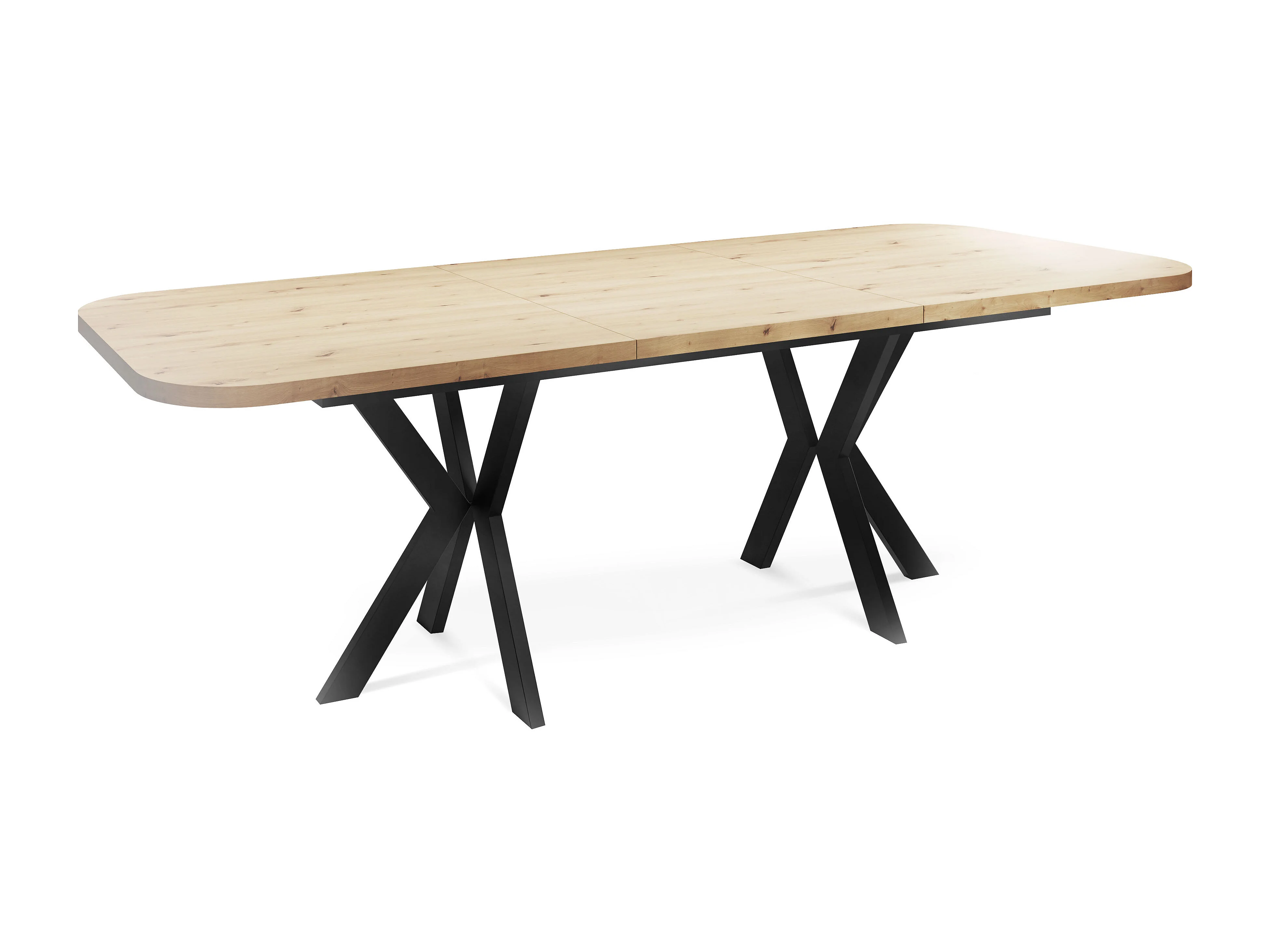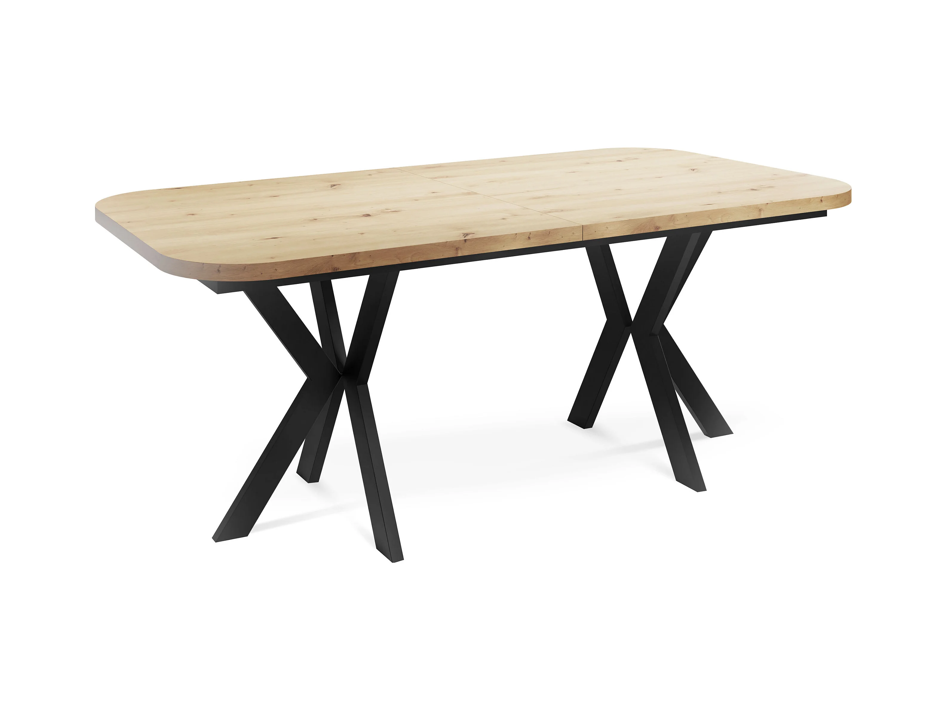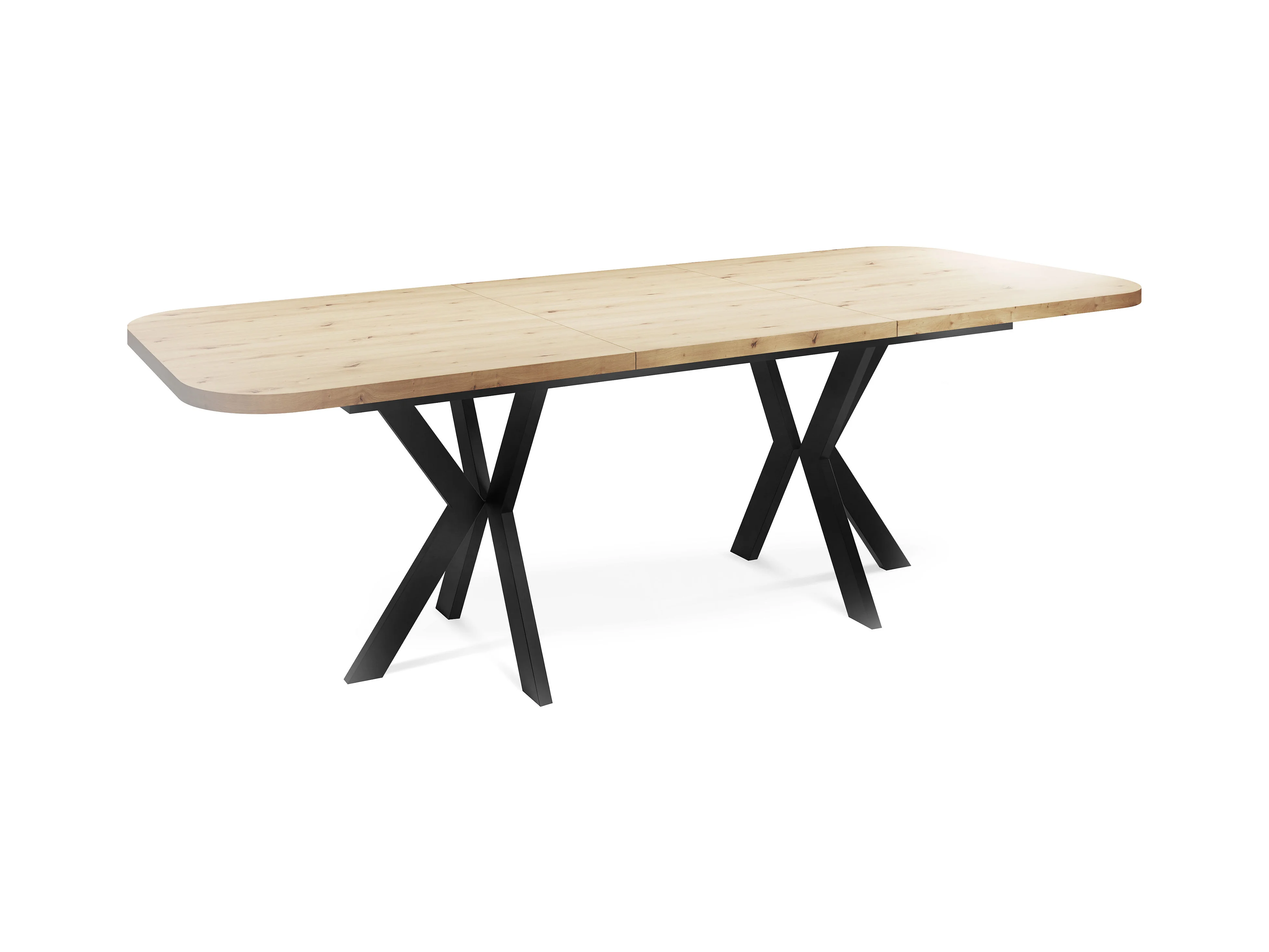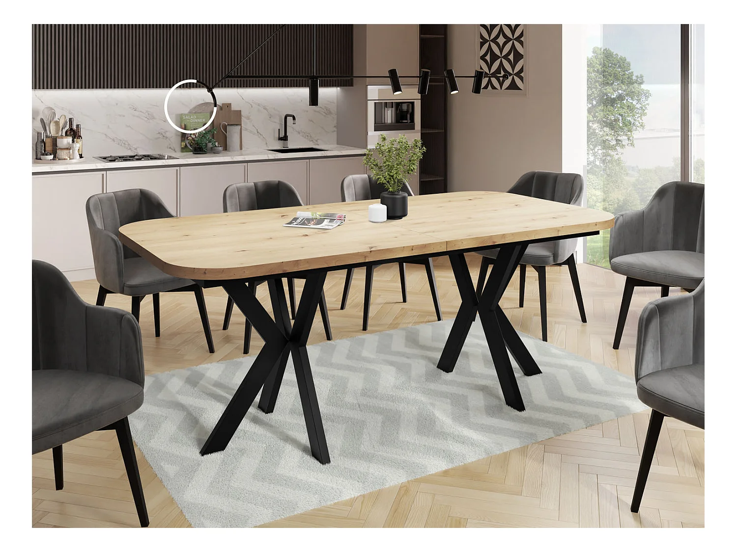 Ausziehbarer Esstisch im Modern-Stil - Rechteckiger Tisch mit Schwarzen Metallbeinen - Industrietisch mit Abgerundeten Ecken - 200 x 100 cm - Artisan Eiche
