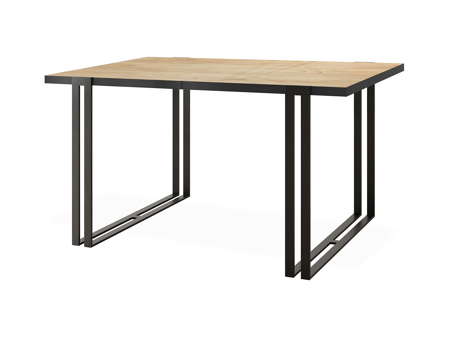 Ausziehbarer Esstisch mit Tischrand schwarzes Dekor - Großer Tisch im Loft-Stil mit Schwarzen Metallbeinen 160 bis 260 cm - 160 x 90 cm - Craft Eiche