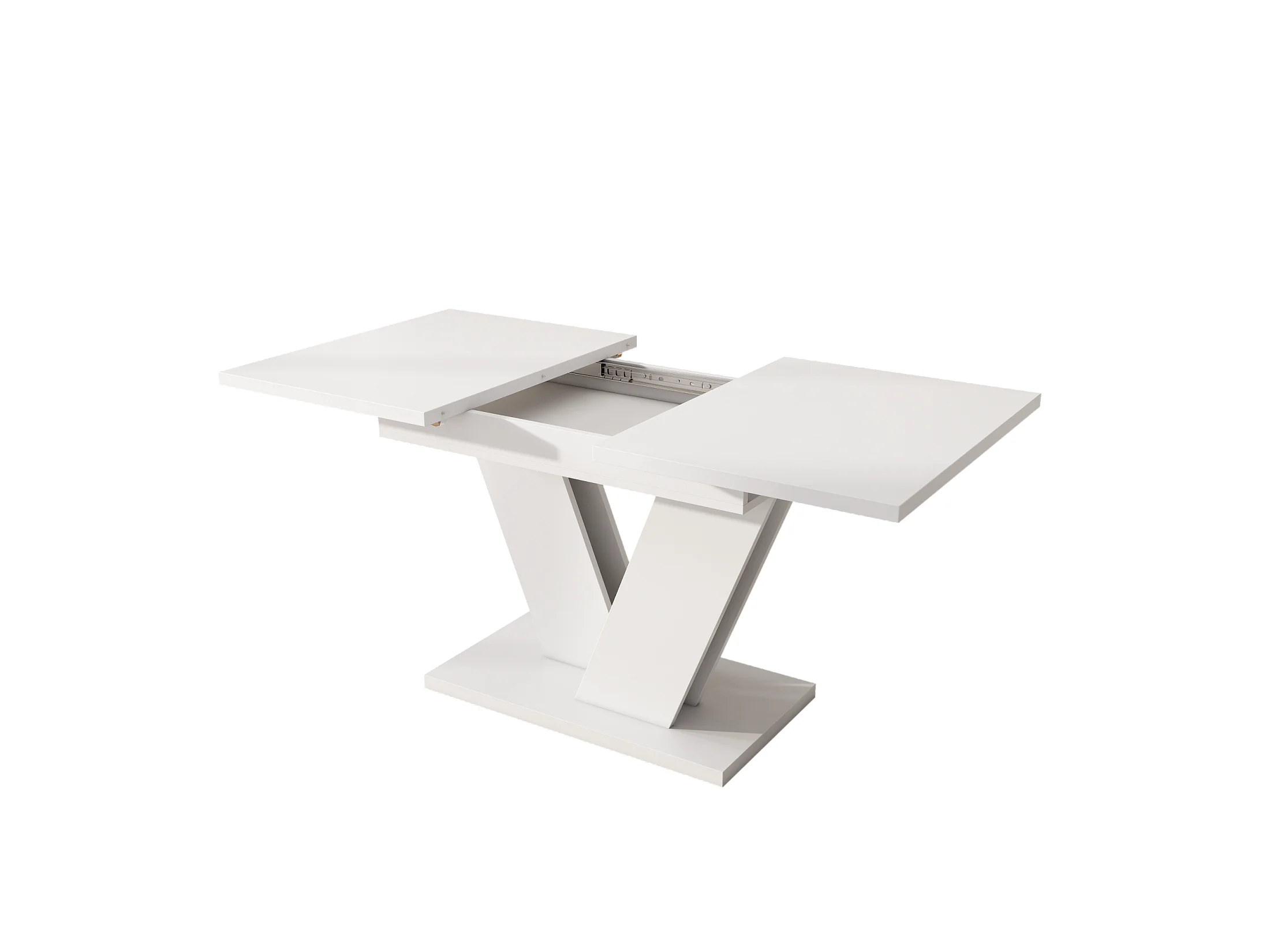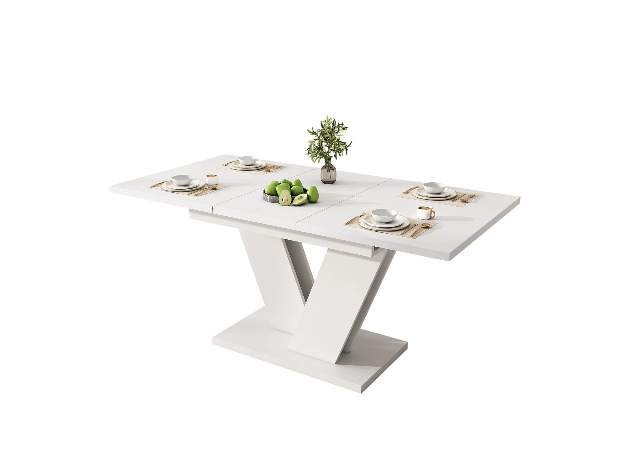 Ausziehbarer Esstisch mit verdickte Tischplatte für 4-8 Personen, rechteckiger Esstisch Ausziehtisch mit V-förmige Beine 120/160*80 cm, Weiß