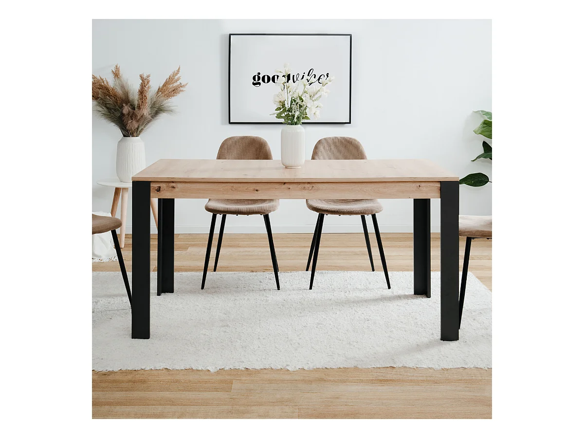 Ausziehbarer Esstisch von 150 bis 200 cm, Dekor Artisan-Eiche und Schwarz – TOLOSA