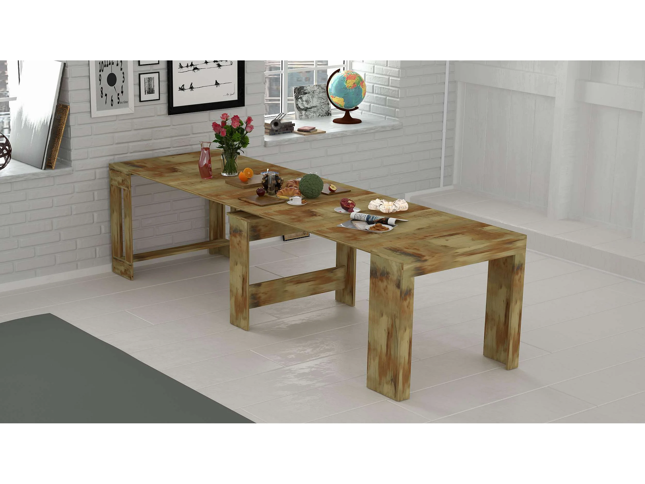 Ausziehbarer Esstischkonsole aus Holz 90x51-300cm Pratika Wood
