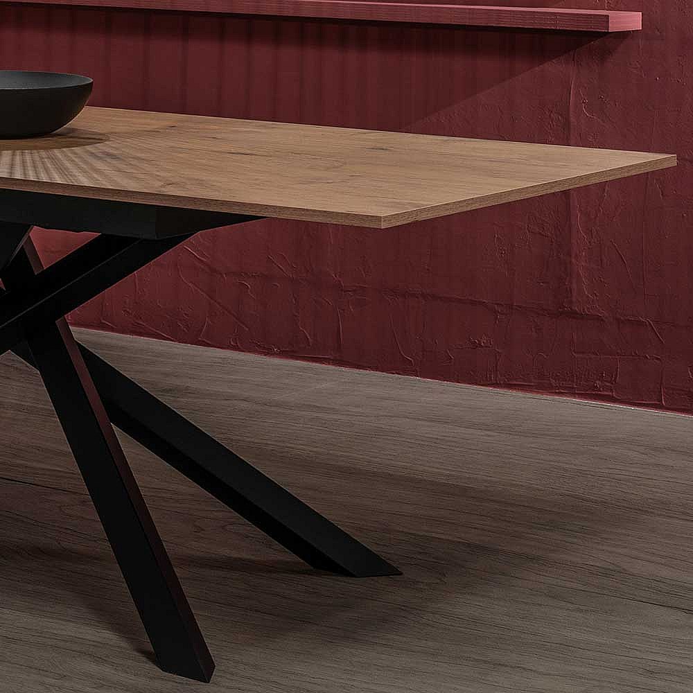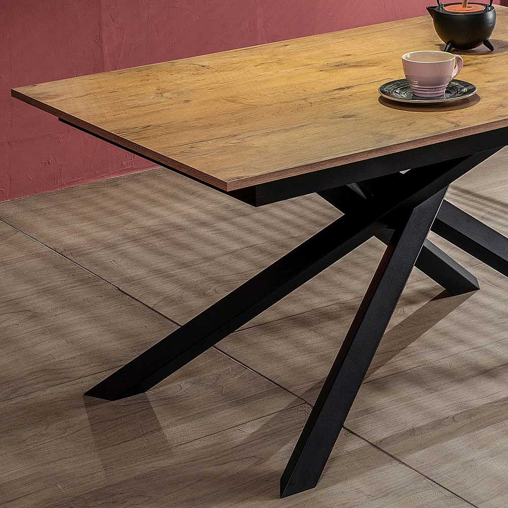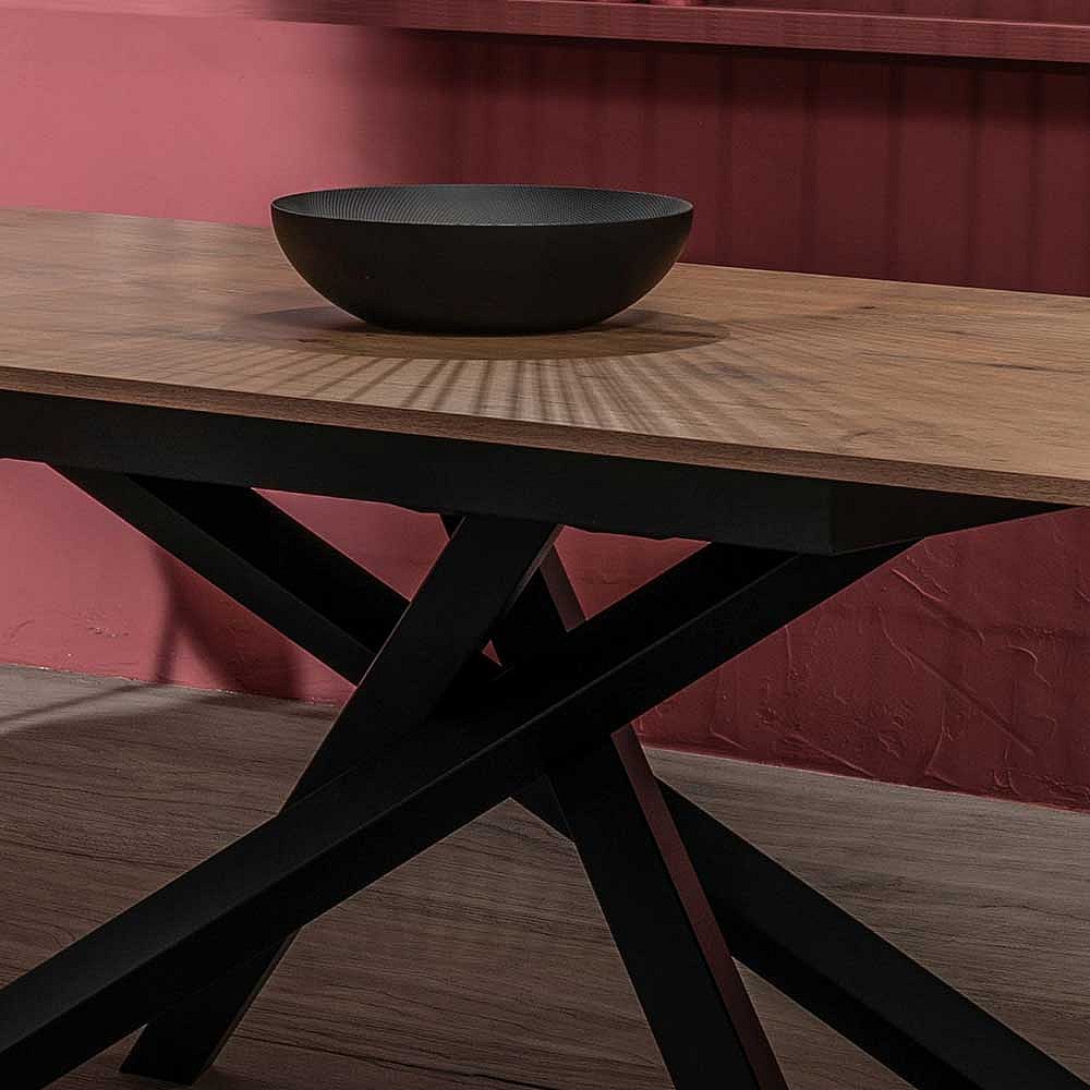 Ausziehbarer Esszimmertisch in Eichefarben und Schwarz Mikado Fu�gestell