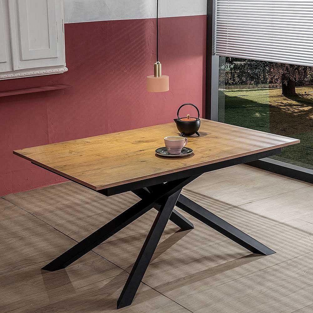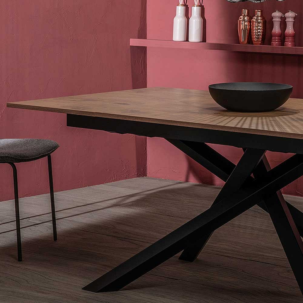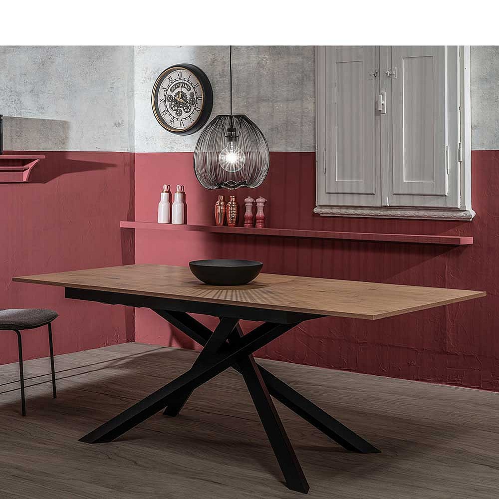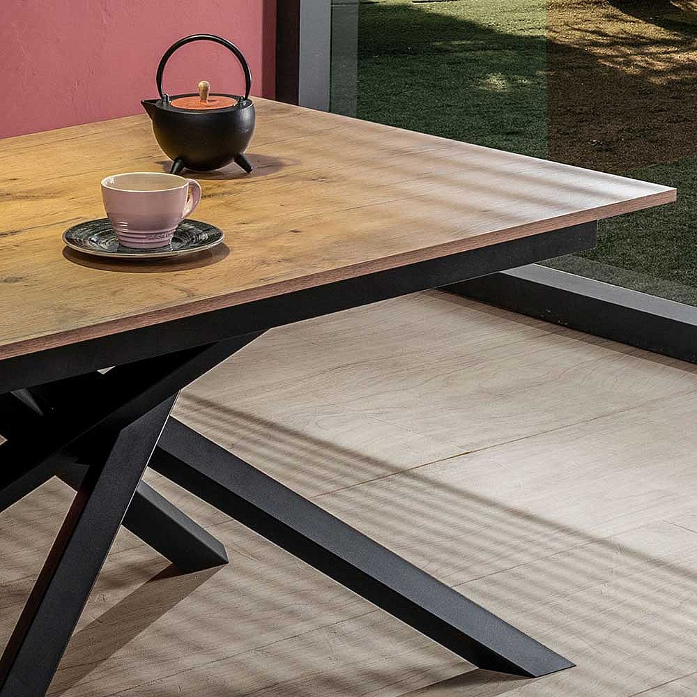 Ausziehbarer Esszimmertisch in Eichefarben und Schwarz Mikado Fu�gestell
