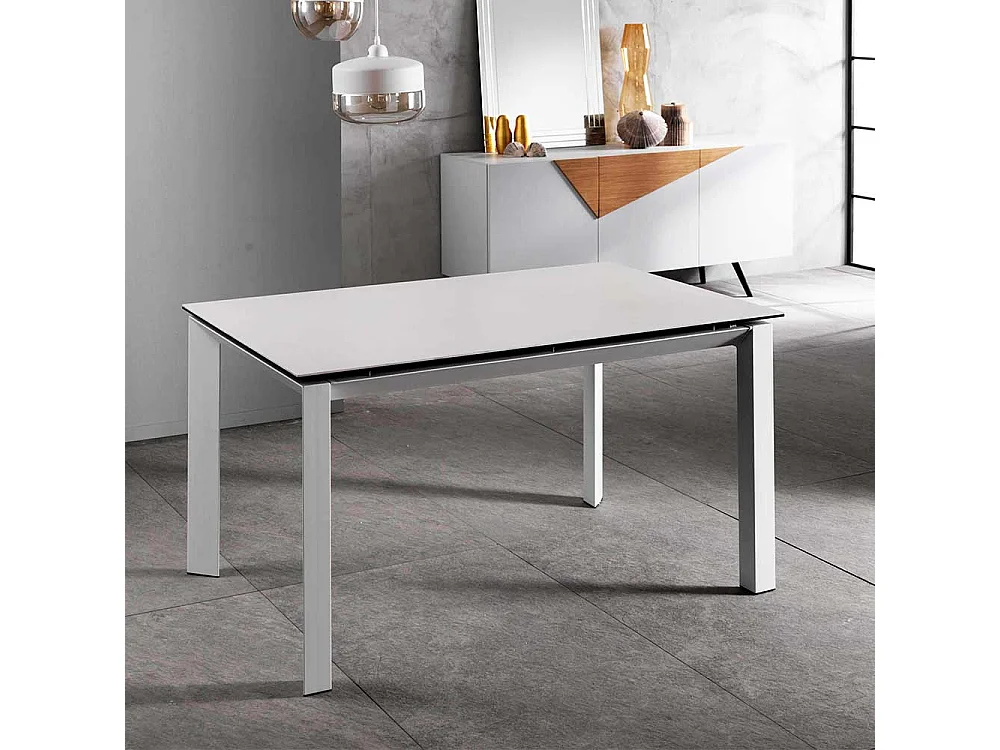 Ausziehbarer Küchentisch in Weiß Keramikplatte