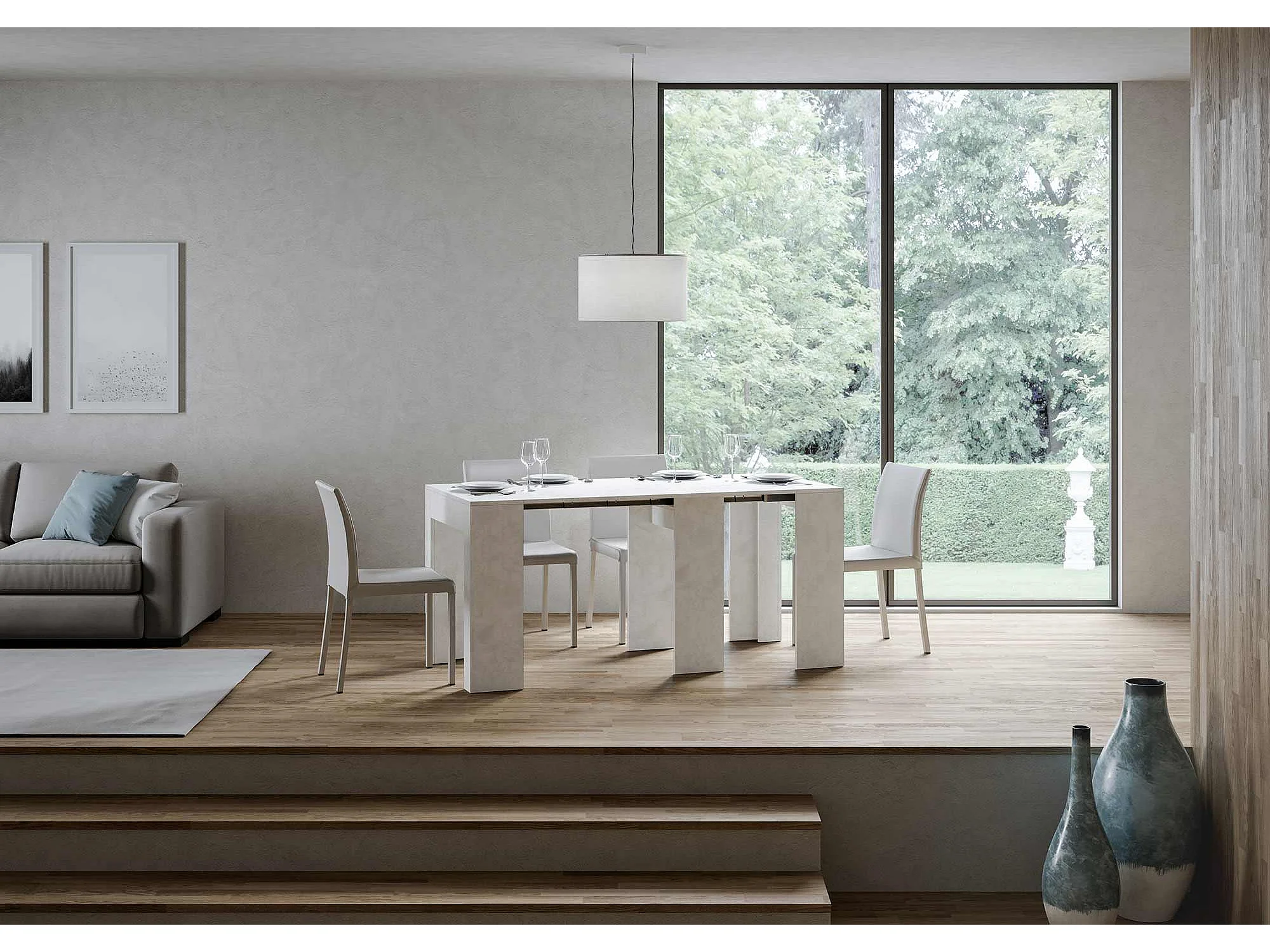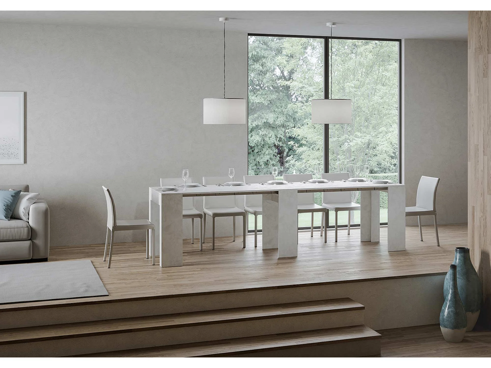 Ausziehbarer Konsolentisch 78x47/299 cm Allin Effekt weiß gespachtelt mit Innenverlängerungen