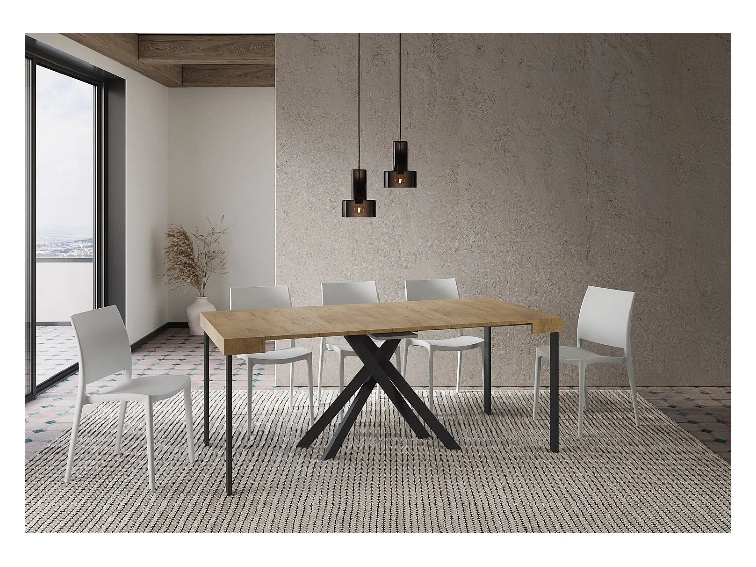 Ausziehbarer Konsolentisch 90x40/196 cm Krack Small Eiche Natur mit anthrazitfarbenen Füßen