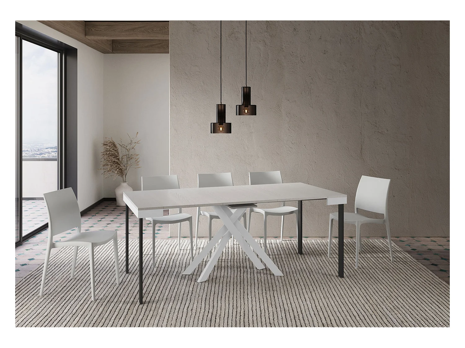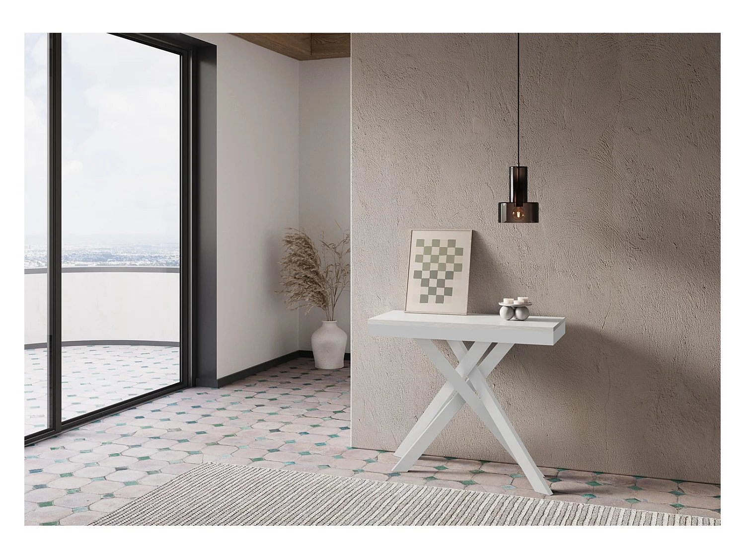 Ausziehbarer Konsolentisch 90x40/196 cm Krack Small Evolution Esche weiß mit weißem Eisenrahmen