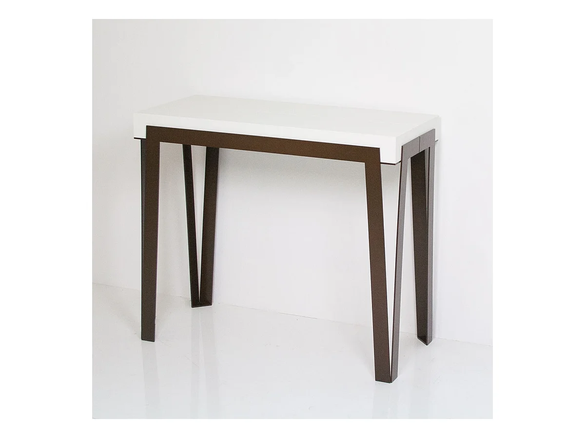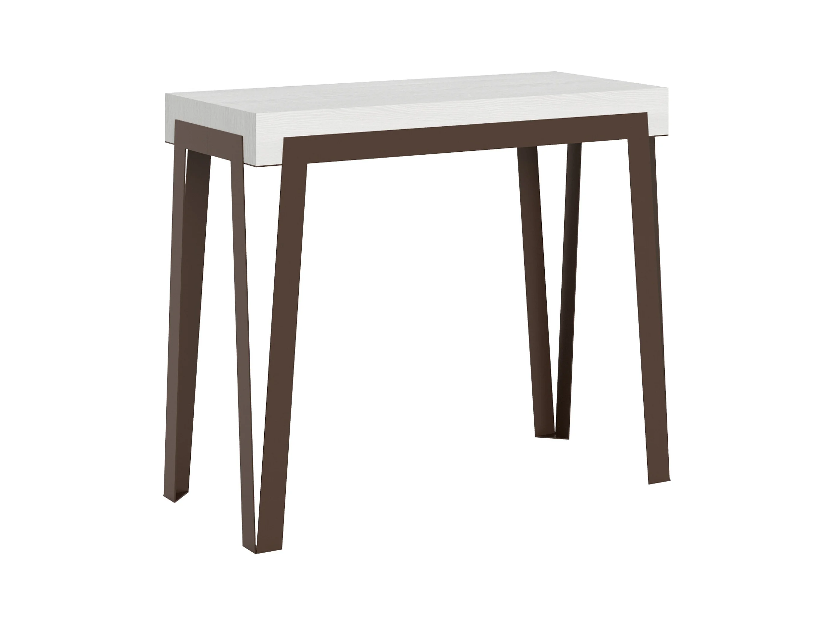 Ausziehbarer Konsolentisch 90x40/196 cm Rio Small Esche weiß mit Eisenrahmen aus Rostbraun