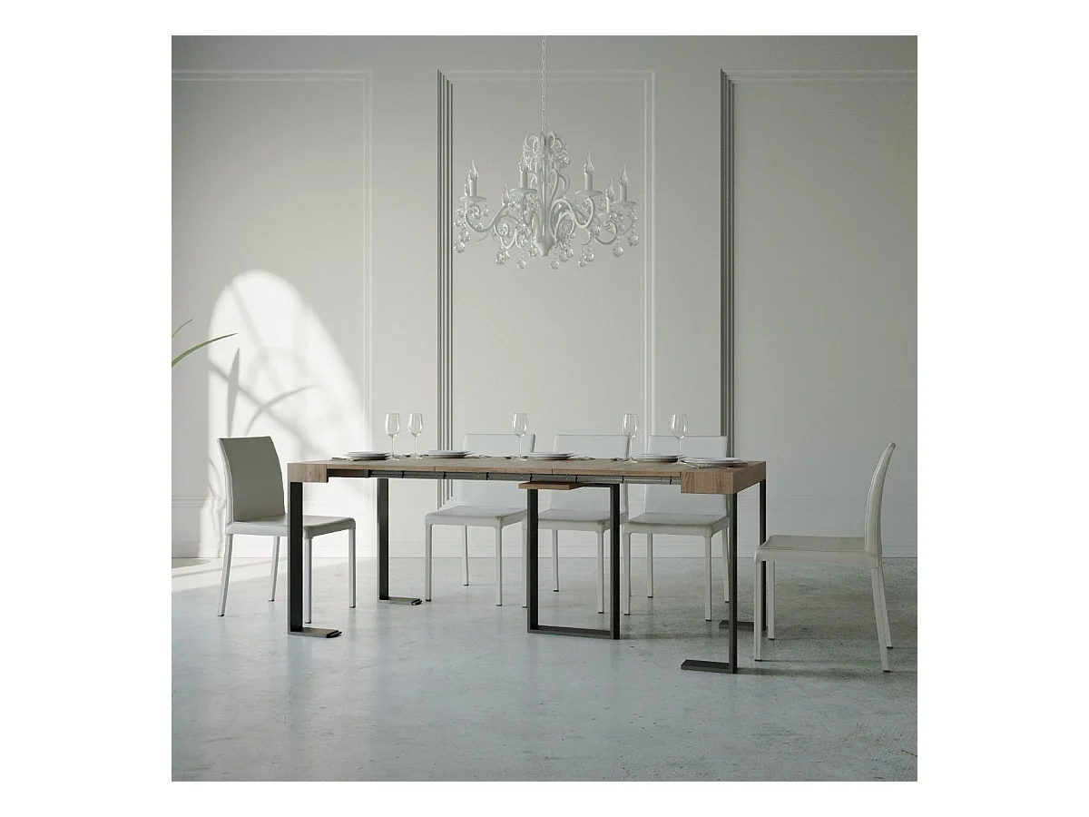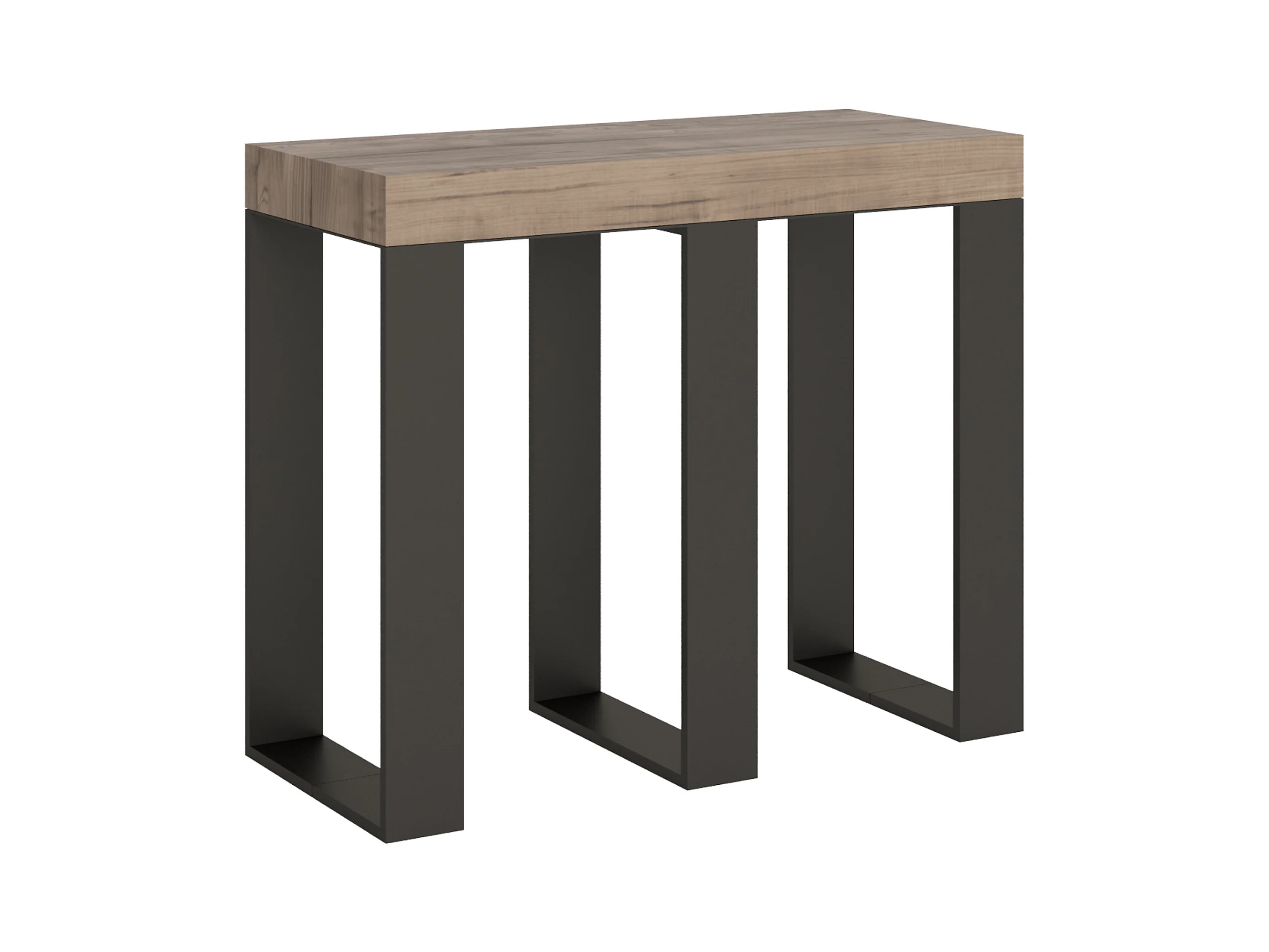 Ausziehbarer Konsolentisch 90x40/196 cm Sintesi Small Eiche Natur mit Eisenrahmen aus Anthrazit
