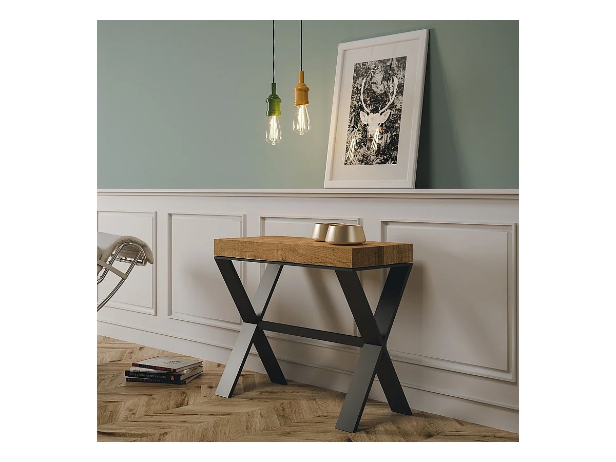Ausziehbarer Konsolentisch 90x40/196 cm Xenia Small Eiche Natur mit Eisenrahmen aus Anthrazit