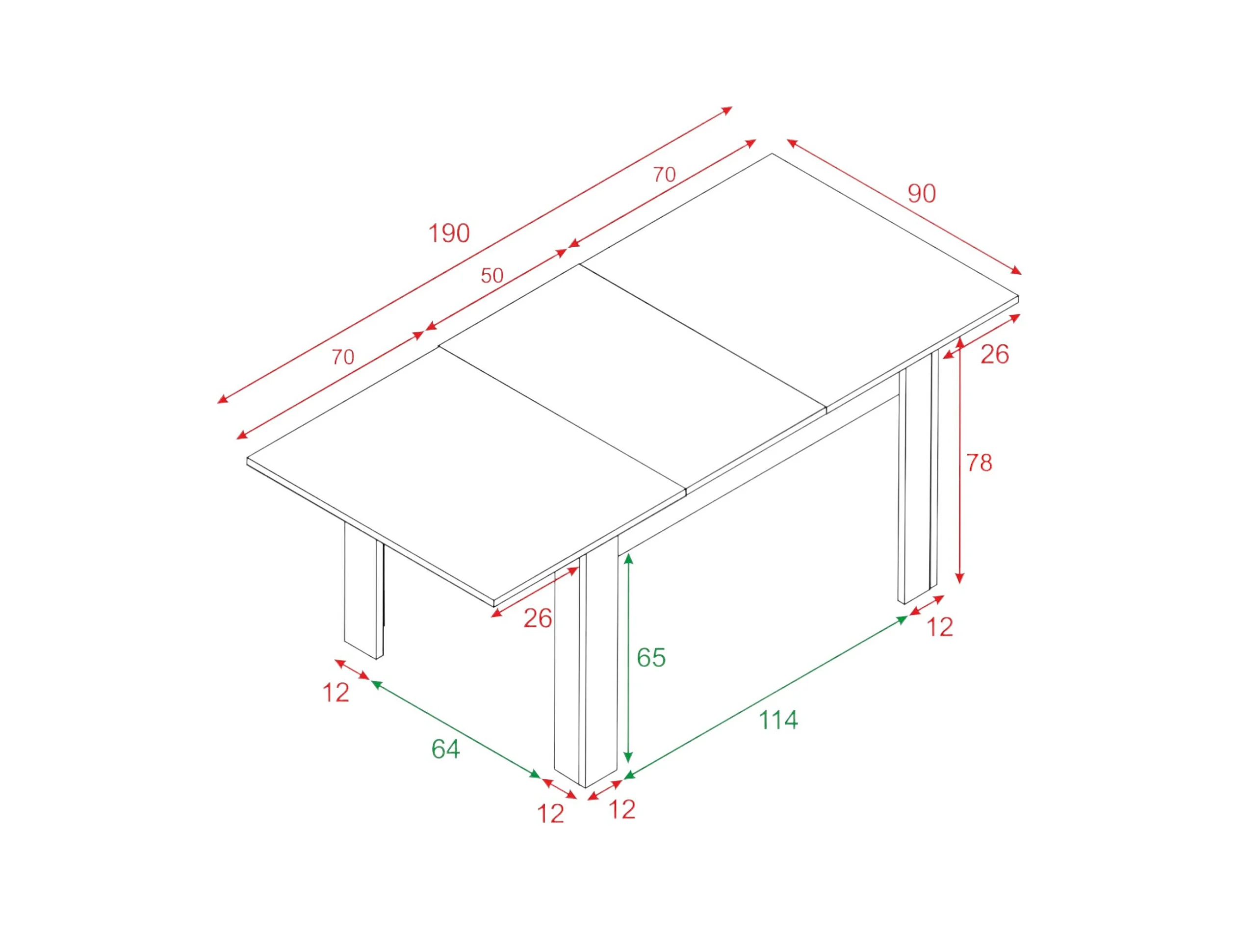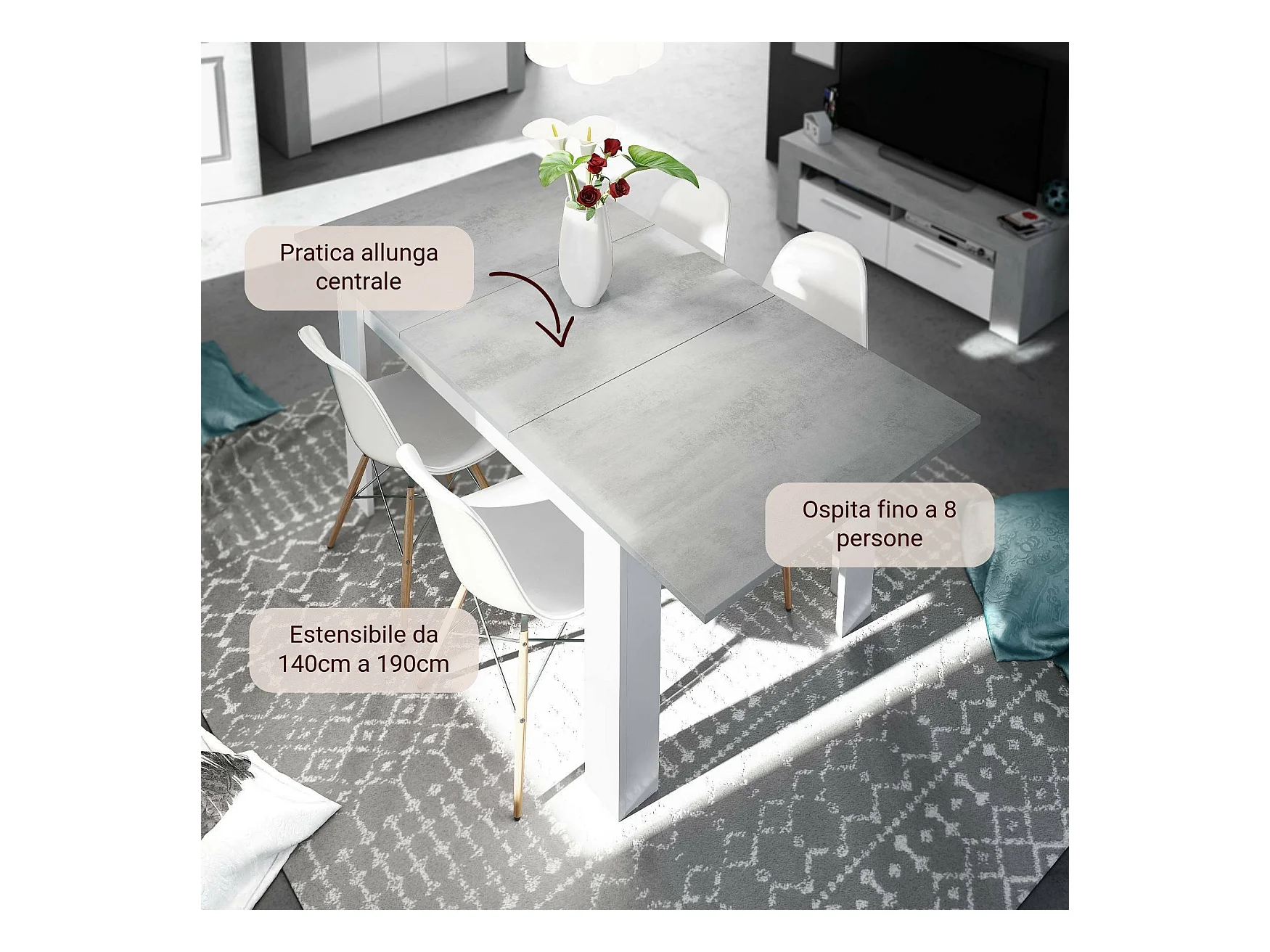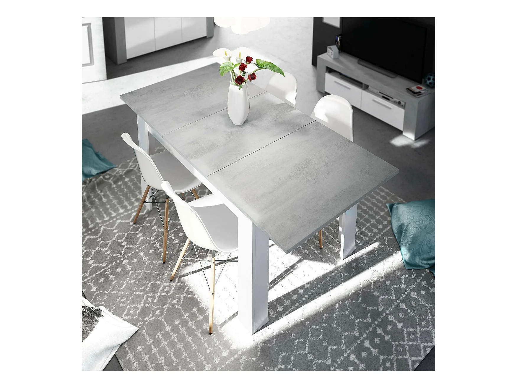 Ausziehbarer Midland-Tisch, ausziehbare Konsole für das Esszimmer, zu öffnender Küchentisch mit Verlängerung, 140/190 x 90 x 78 cm, Zement und Weiß