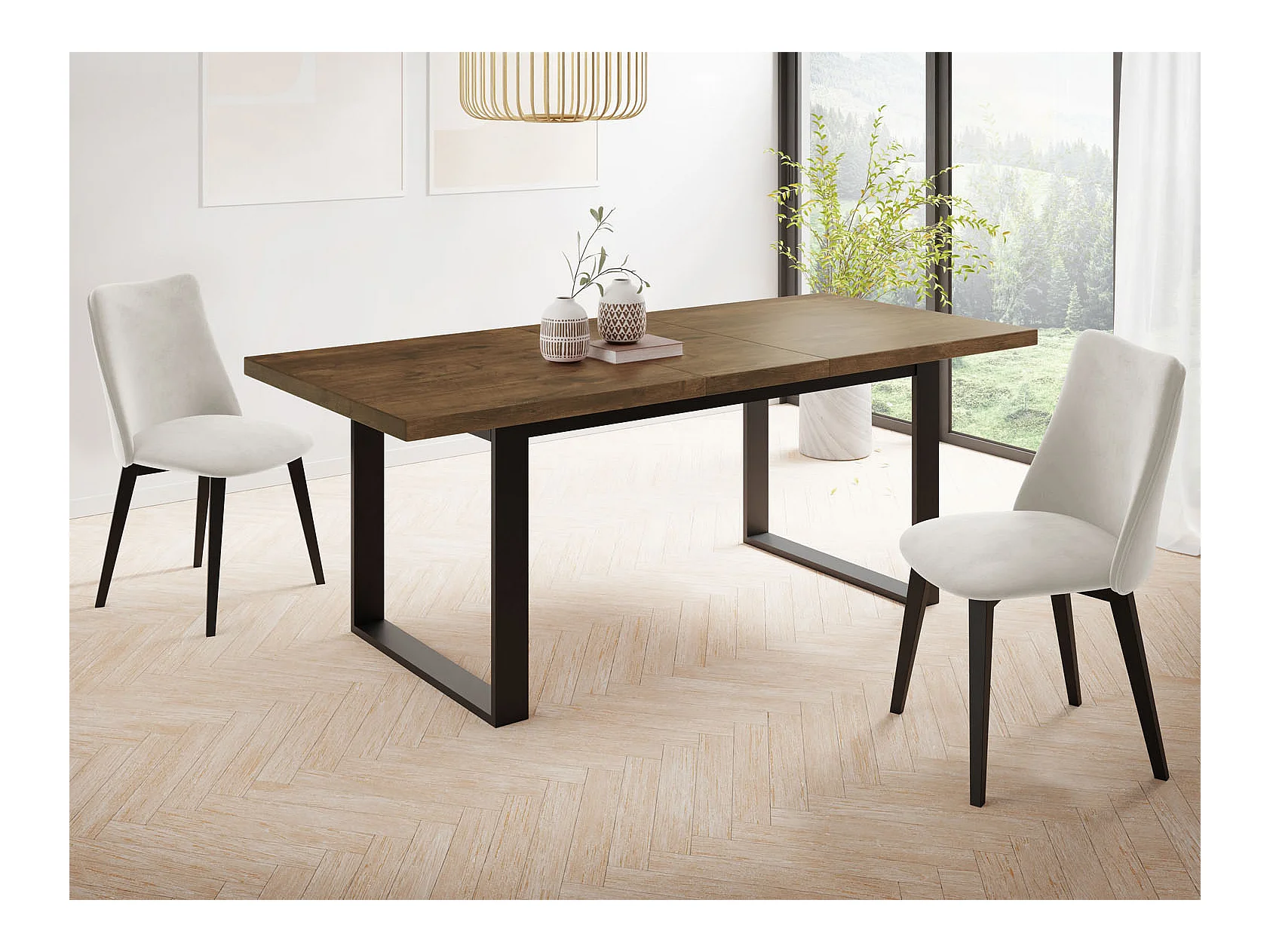 Ausziehbarer Rechteckiger Esstisch im Loft-Stil mit Schwarzen Metallbeinen – Tisch für Wohnzimmer – Ausziehbar von 160 cm auf 200 cm – Made in EU – Lefkas Eiche