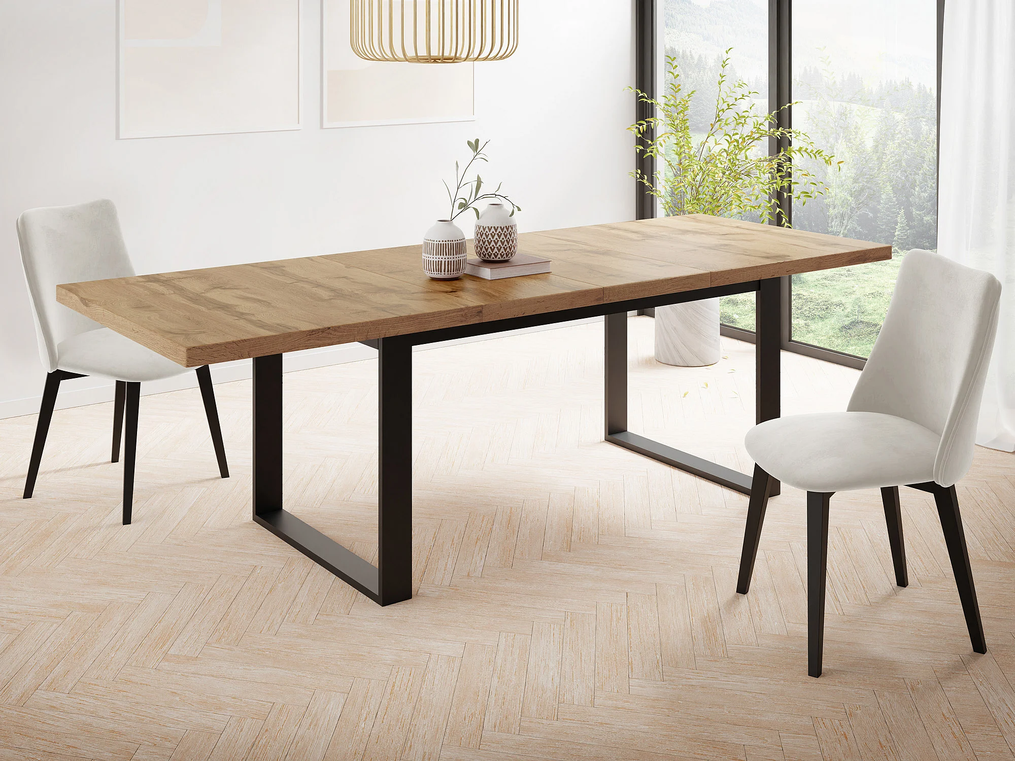 Ausziehbarer Rechteckiger Esstisch im Loft-Stil mit Schwarzen Metallbeinen – Tisch für Wohnzimmer – Ausziehbar von 160 cm auf 240 cm – Made in EU – Wotan Eiche