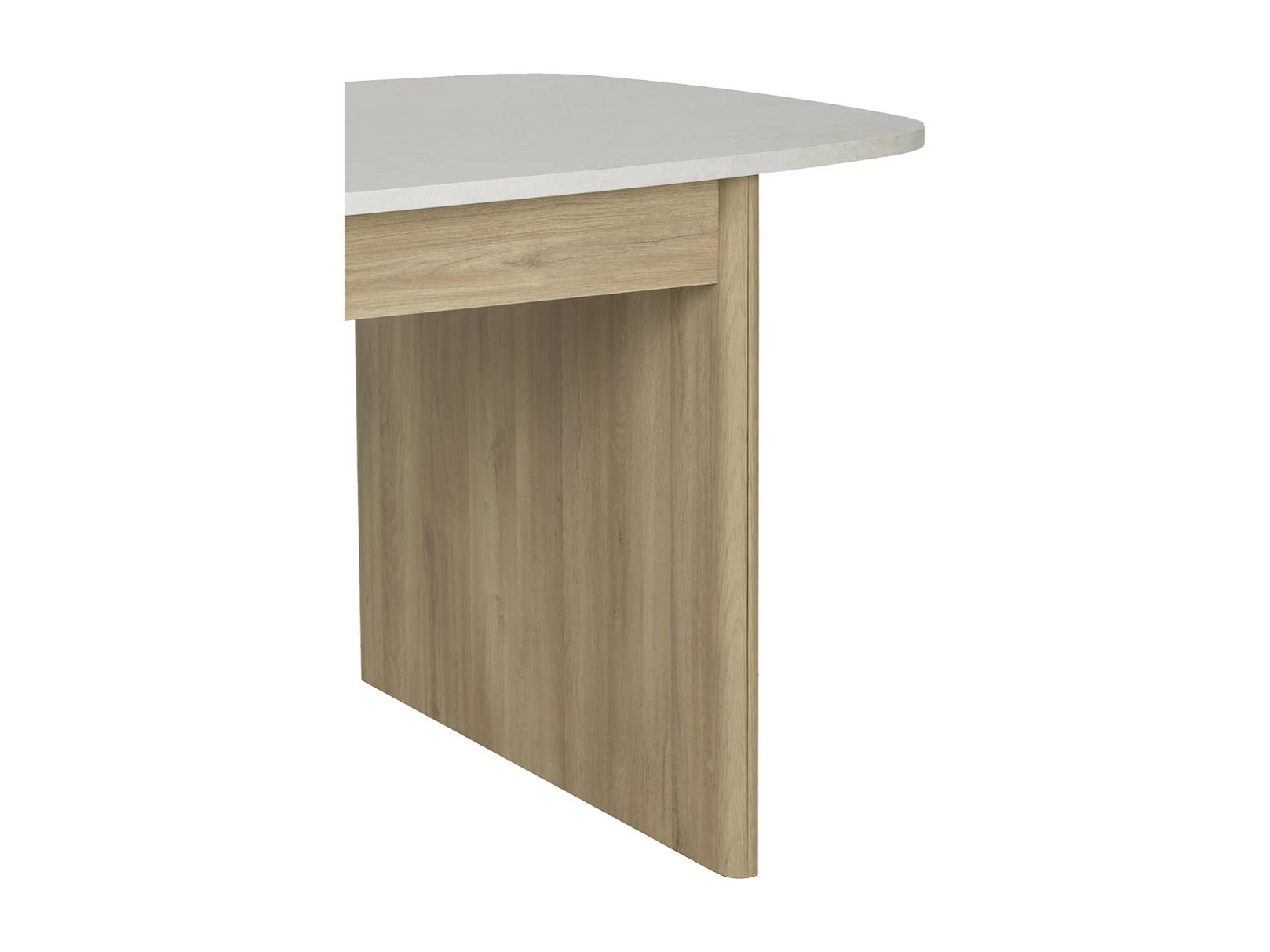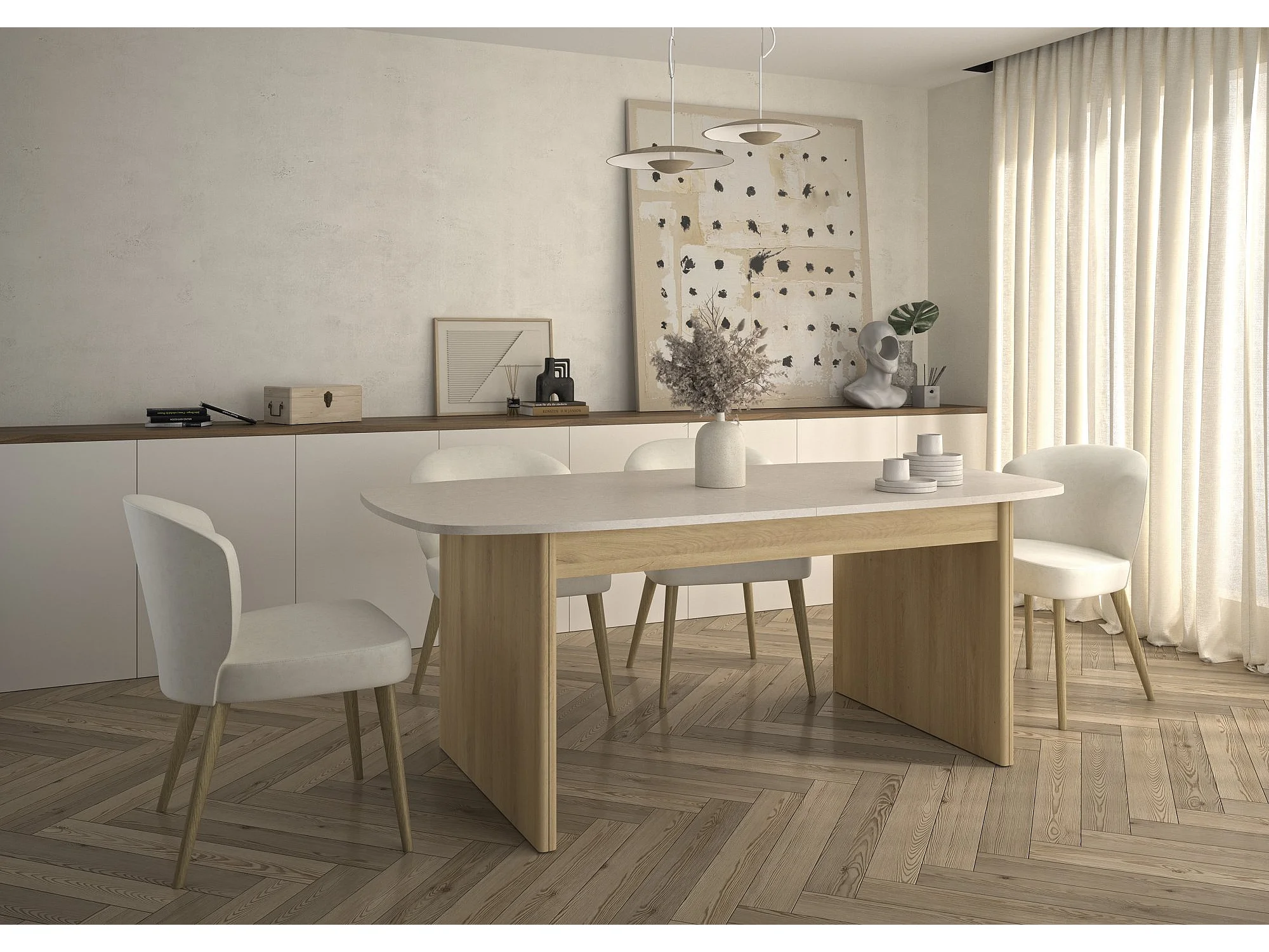Ausziehbarer rechteckiger Tisch mit abgerundeten Kanten Dekor Weiß und Eiche - GALEO