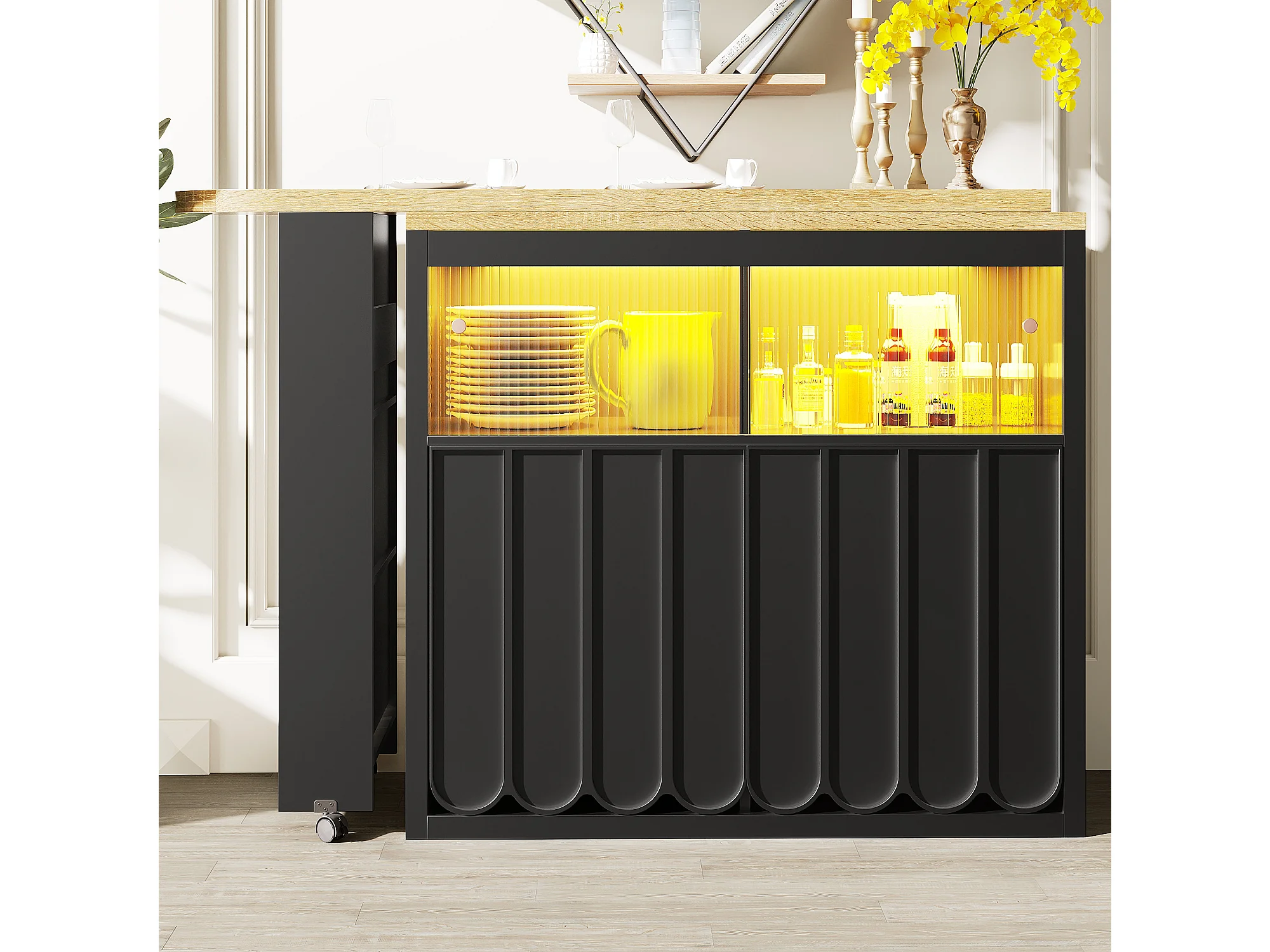 Ausziehbarer Stehtisch mit Stauraum - 135-205 x 39 x 100 cm - mobile Kücheninsel mit LEDs + 4 Türen - MDF - Schwarz