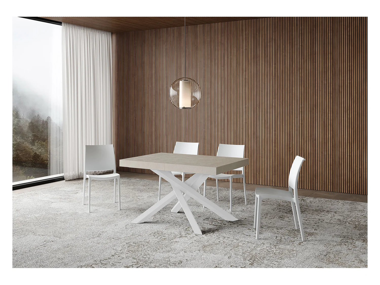 Ausziehbarer Tisch 90x120/380 cm, Gestell Volantis kaschmirweiß