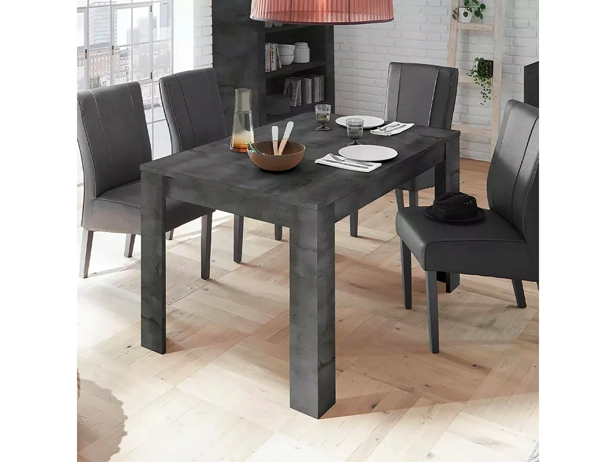 Ausziehbarer Tisch Ddrummon, Küchenkonsole, Esstisch mit Verlängerung, Ausziehbares Küchenregal, Made in Italy, 137x90 h79 cm, Schiefer