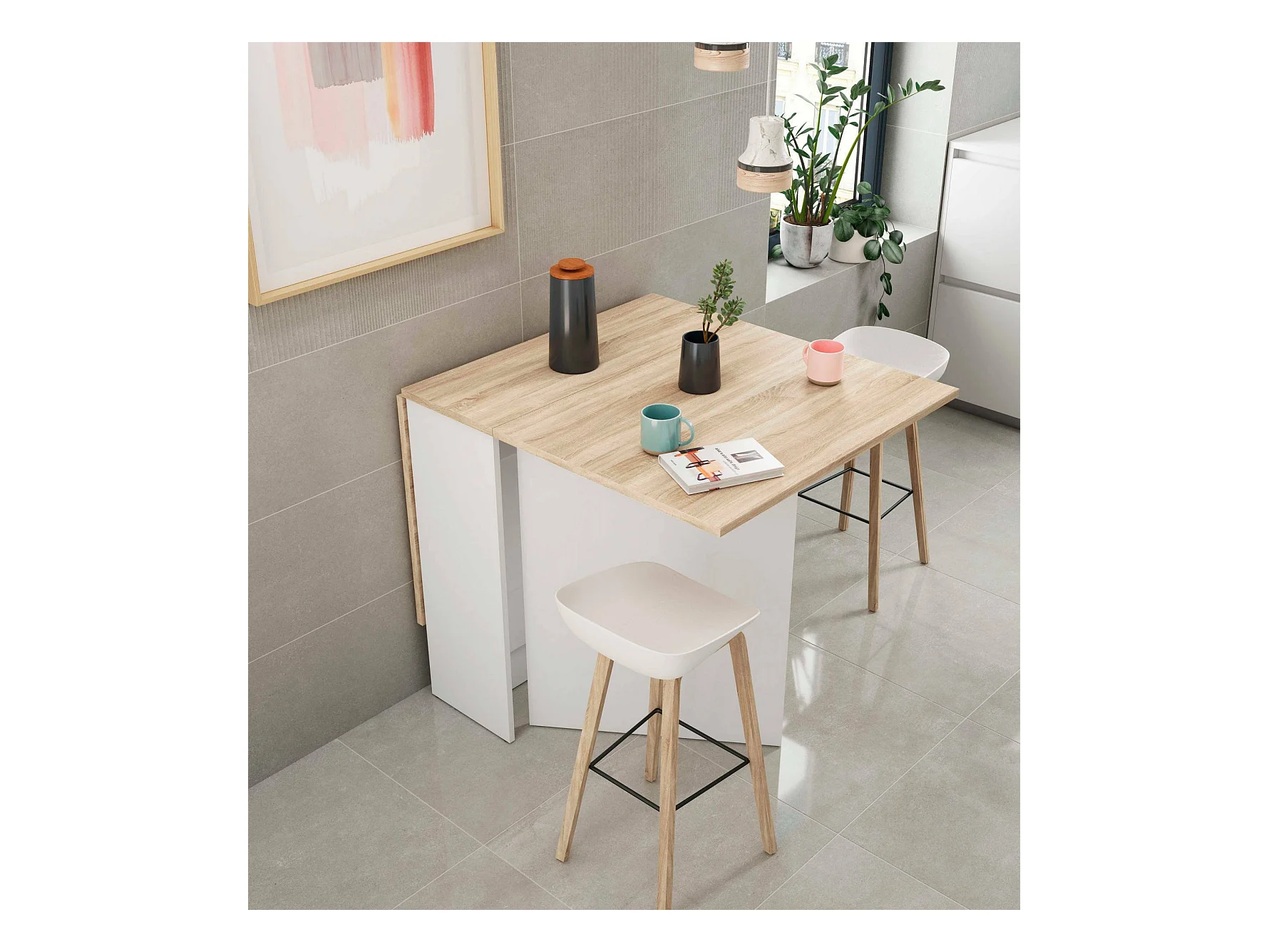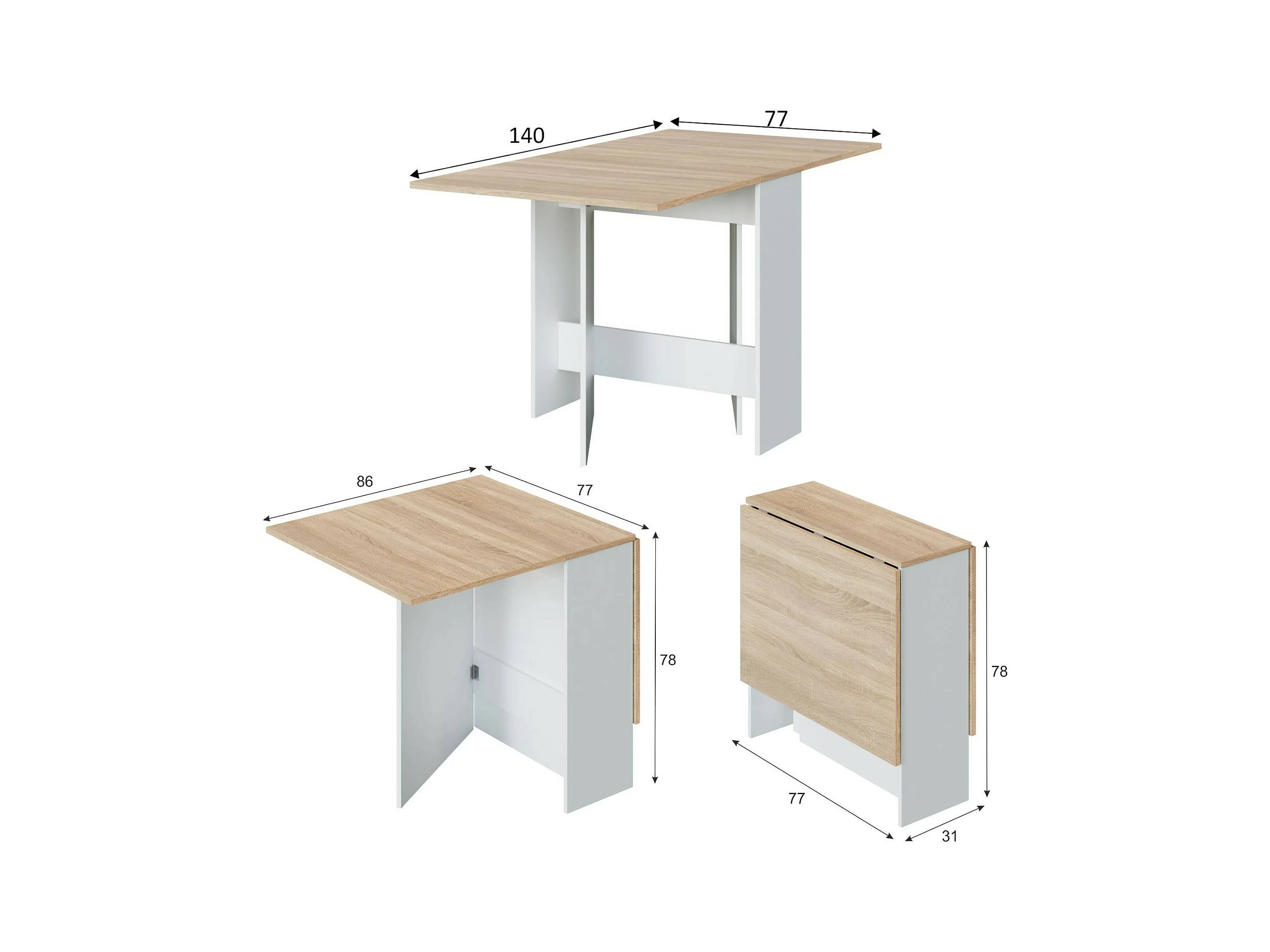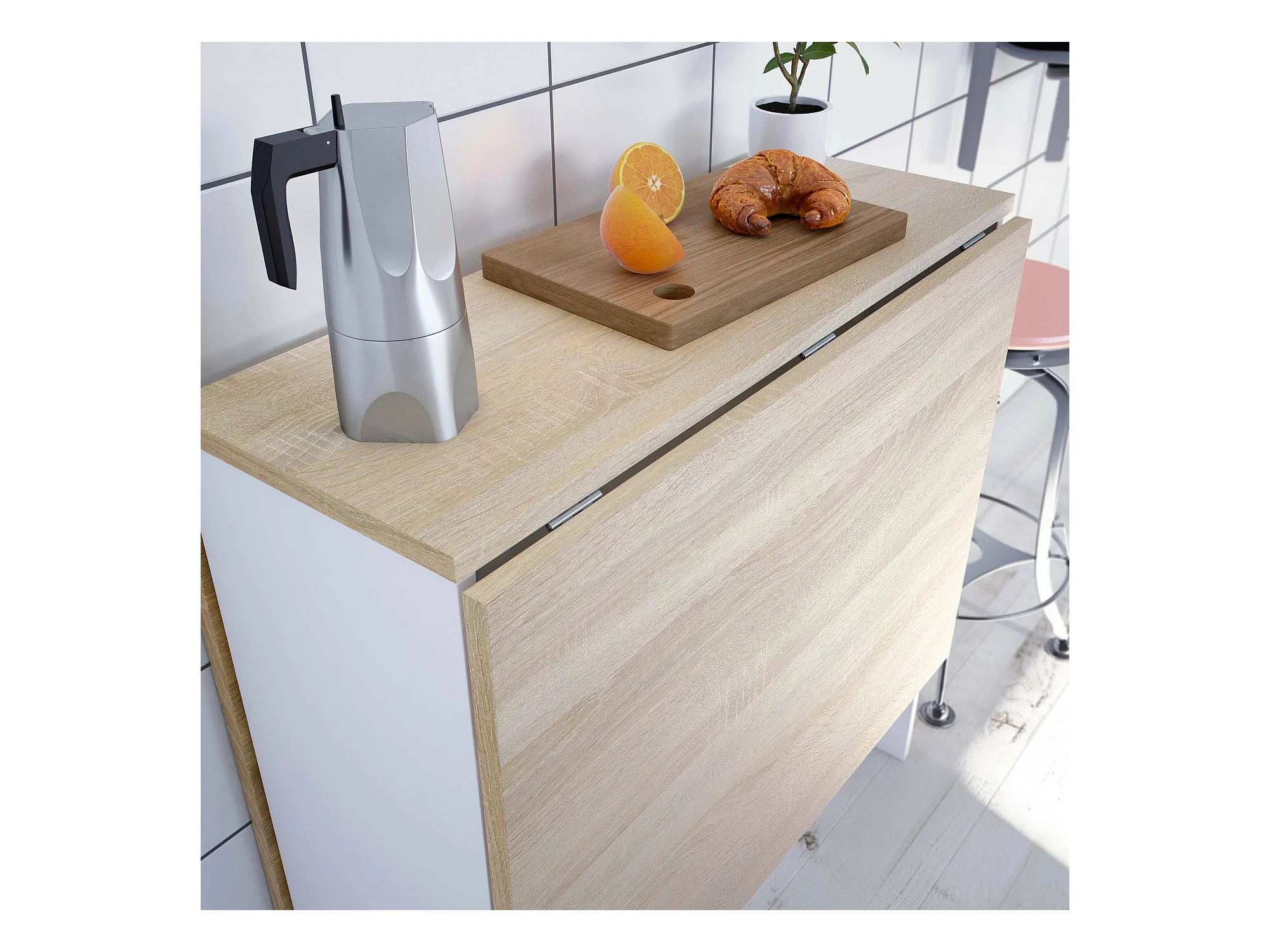 Ausziehbarer Tisch Dmodol, Klappbarer Esstisch mit klappbarer Platte, Klappbarer Hilfstisch, 31x77h78 cm, Weiß und Eiche