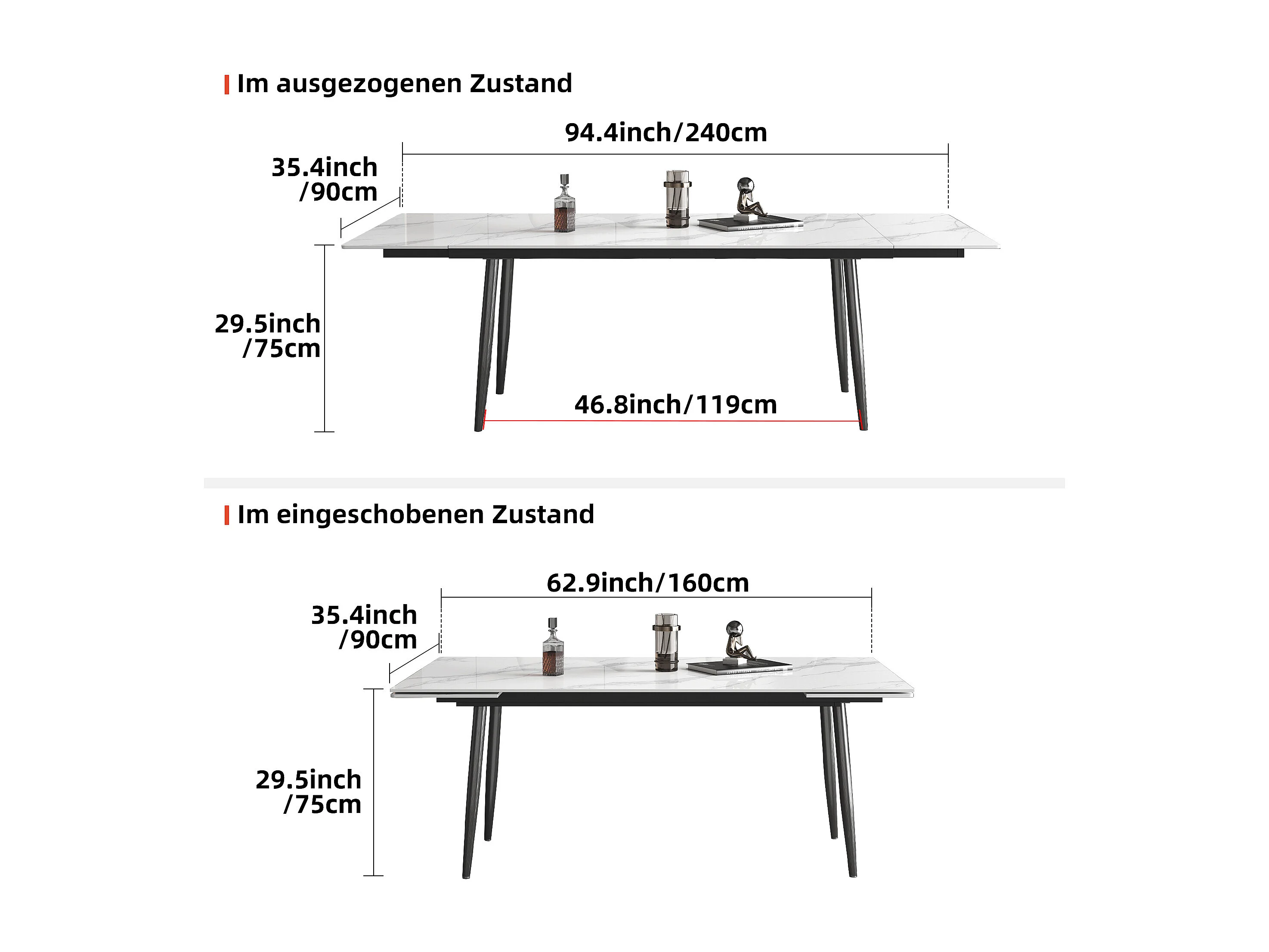 Ausziehbarer Tisch, Höhe 76 cm, Breite 90 cm, ausziehbar von 160 bis 240 cm, Tischplatte aus gesintertem Stein, Beige