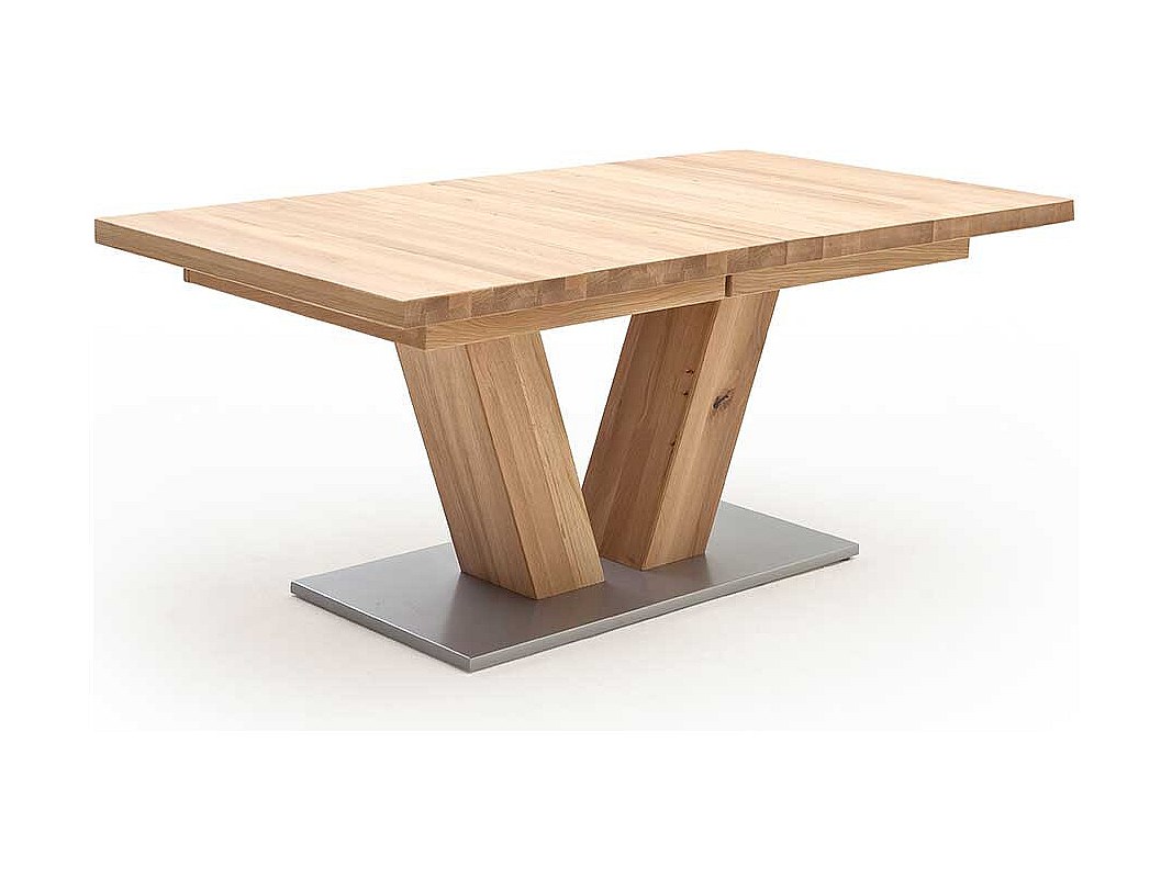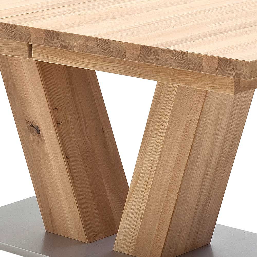 Ausziehbarer Tisch mit V-Fußgestell Eiche Massivholz