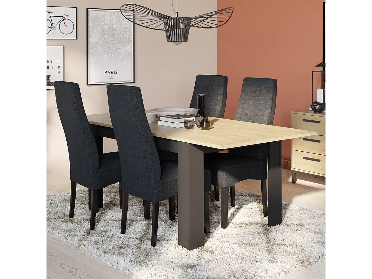 Ausziehbarer Tisch von 160 bis 200 cm in Hamilton-Eiche Dekor und mattem Schwarz - CRAFT