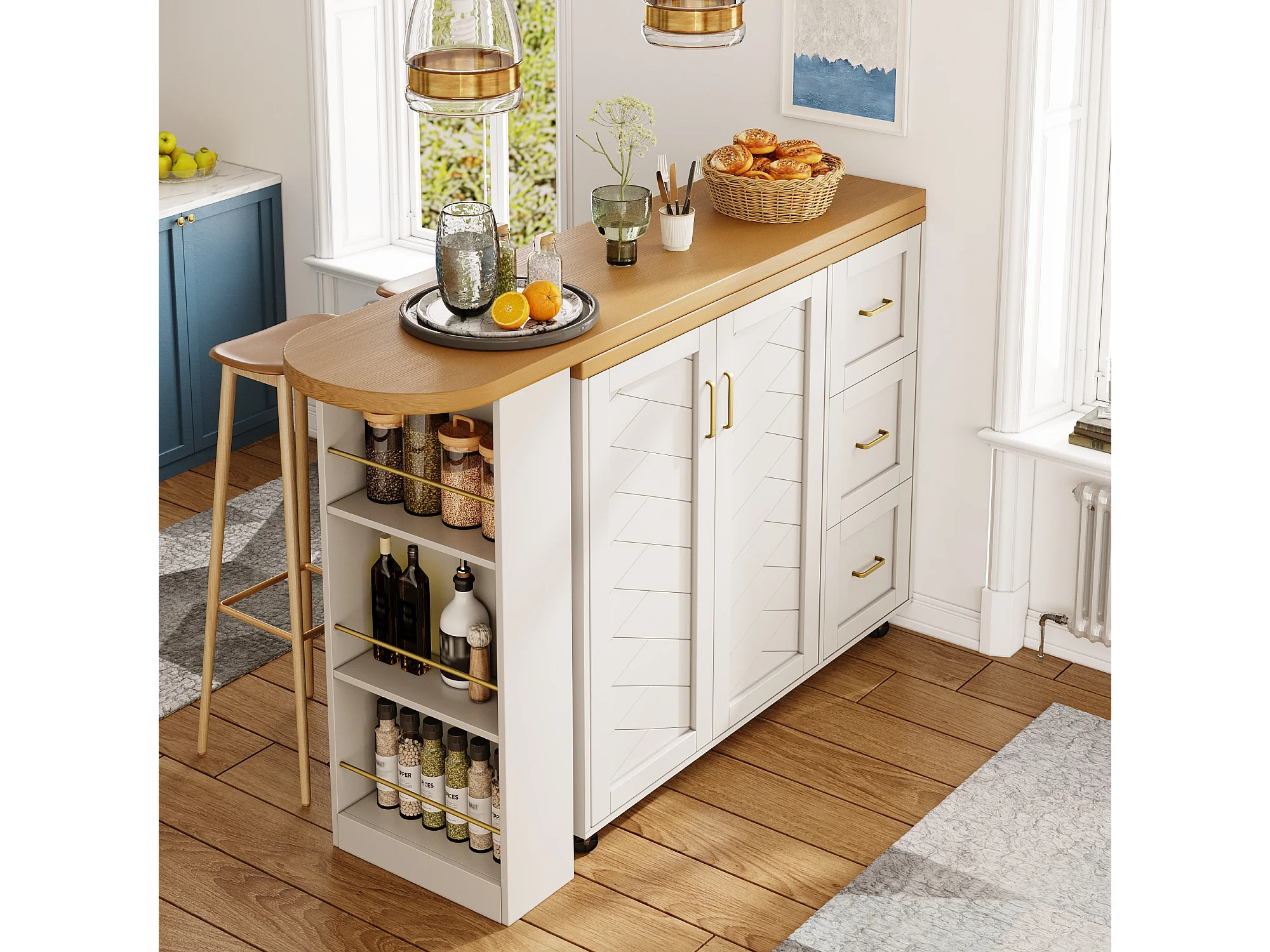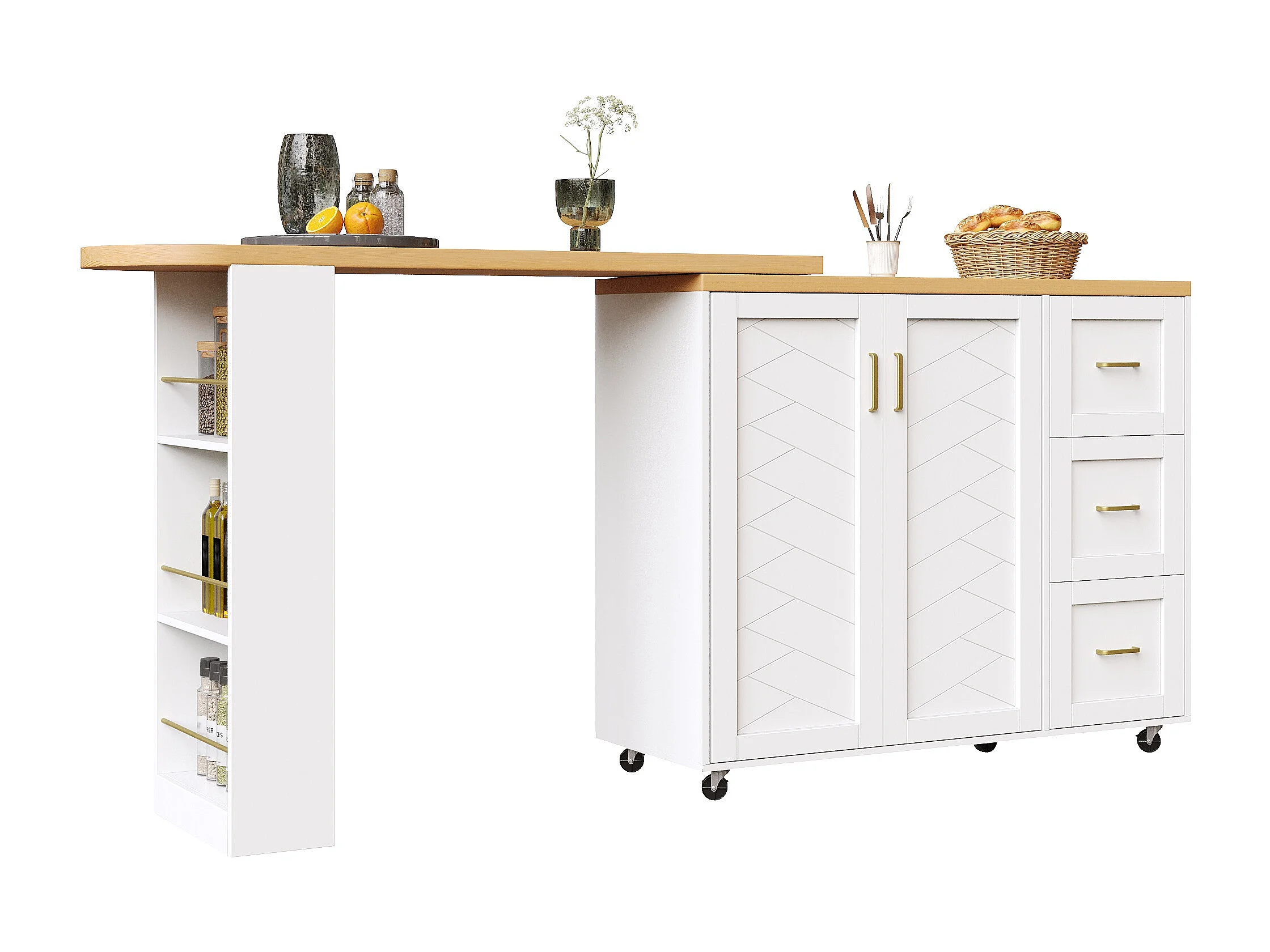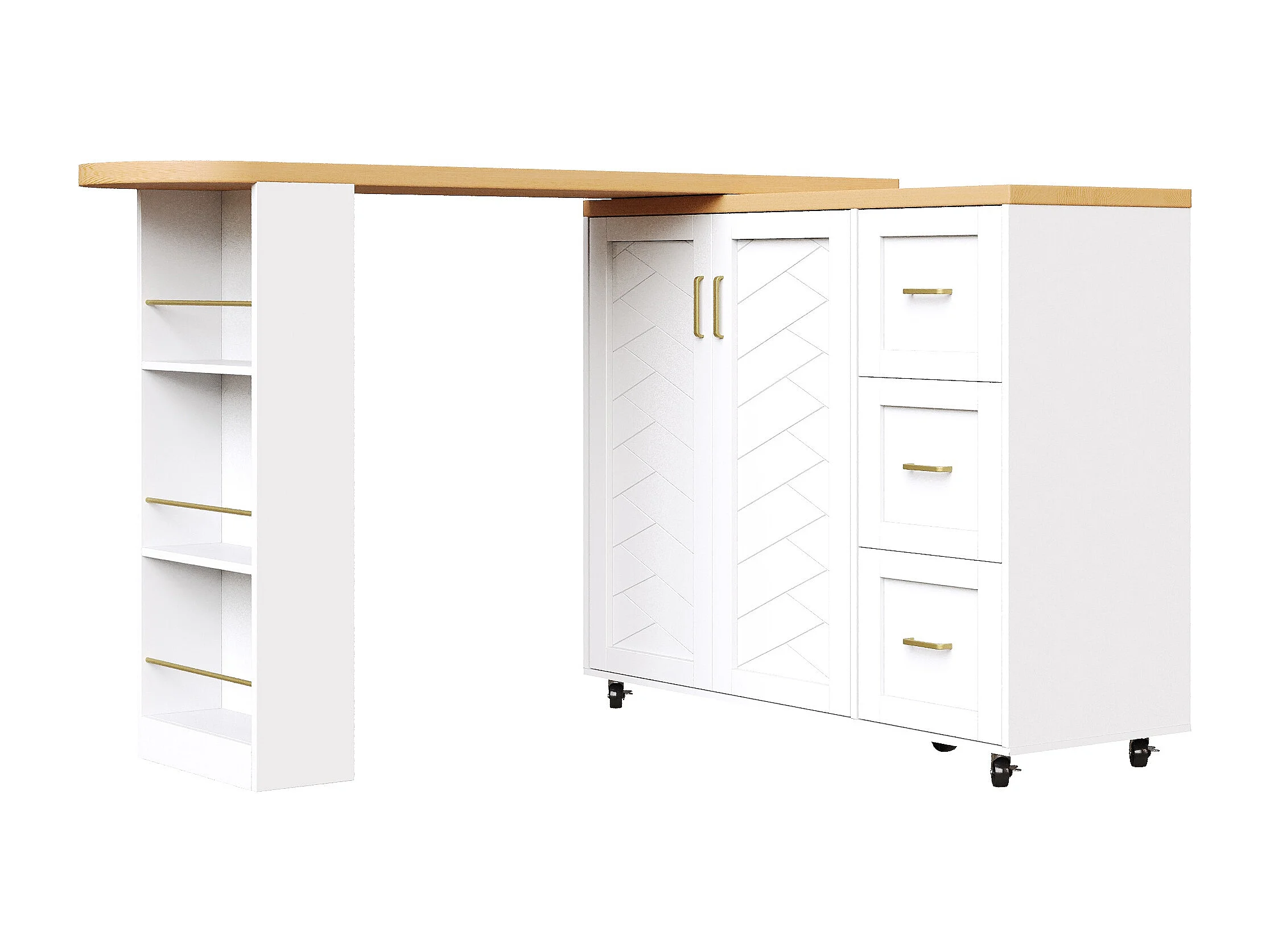 Ausziehbarer und drehbarer Bar-Schrank - drehbar - 228x39x104cm - mit 2 Türen und 3 Schubladen - mit Seitenregalen - Weiß