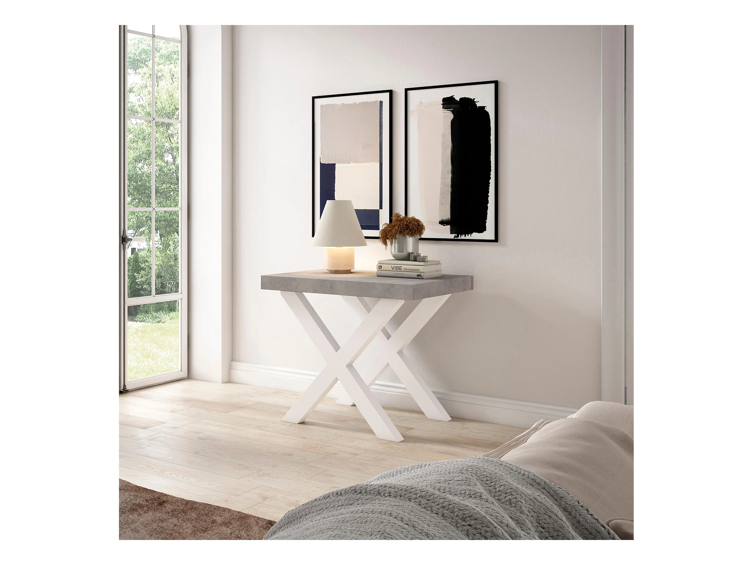 Ausziehbarertisch, 222x90x73cm, Für 10 Gäste, Massivholz Beine, Mattweiß und Zement