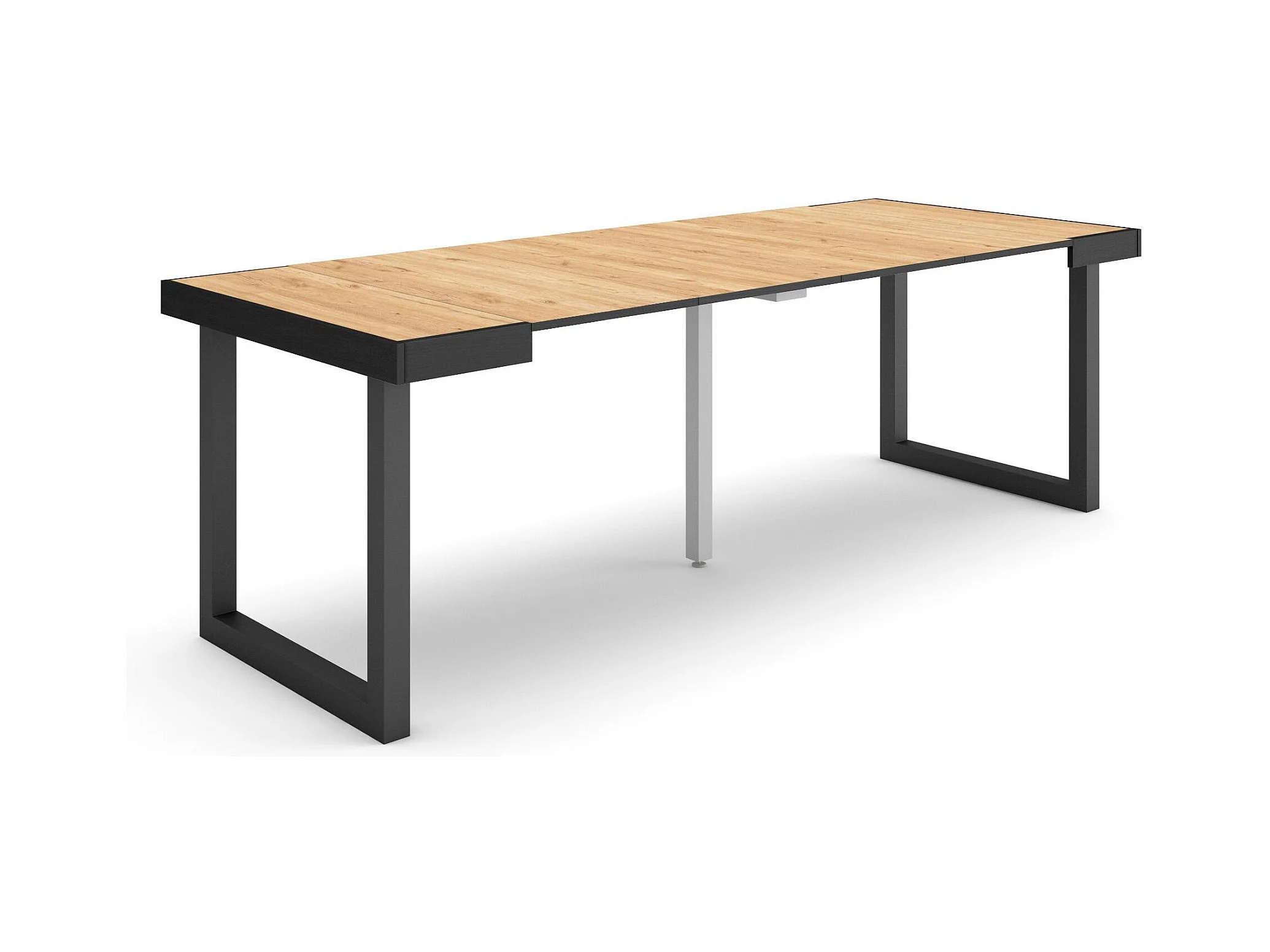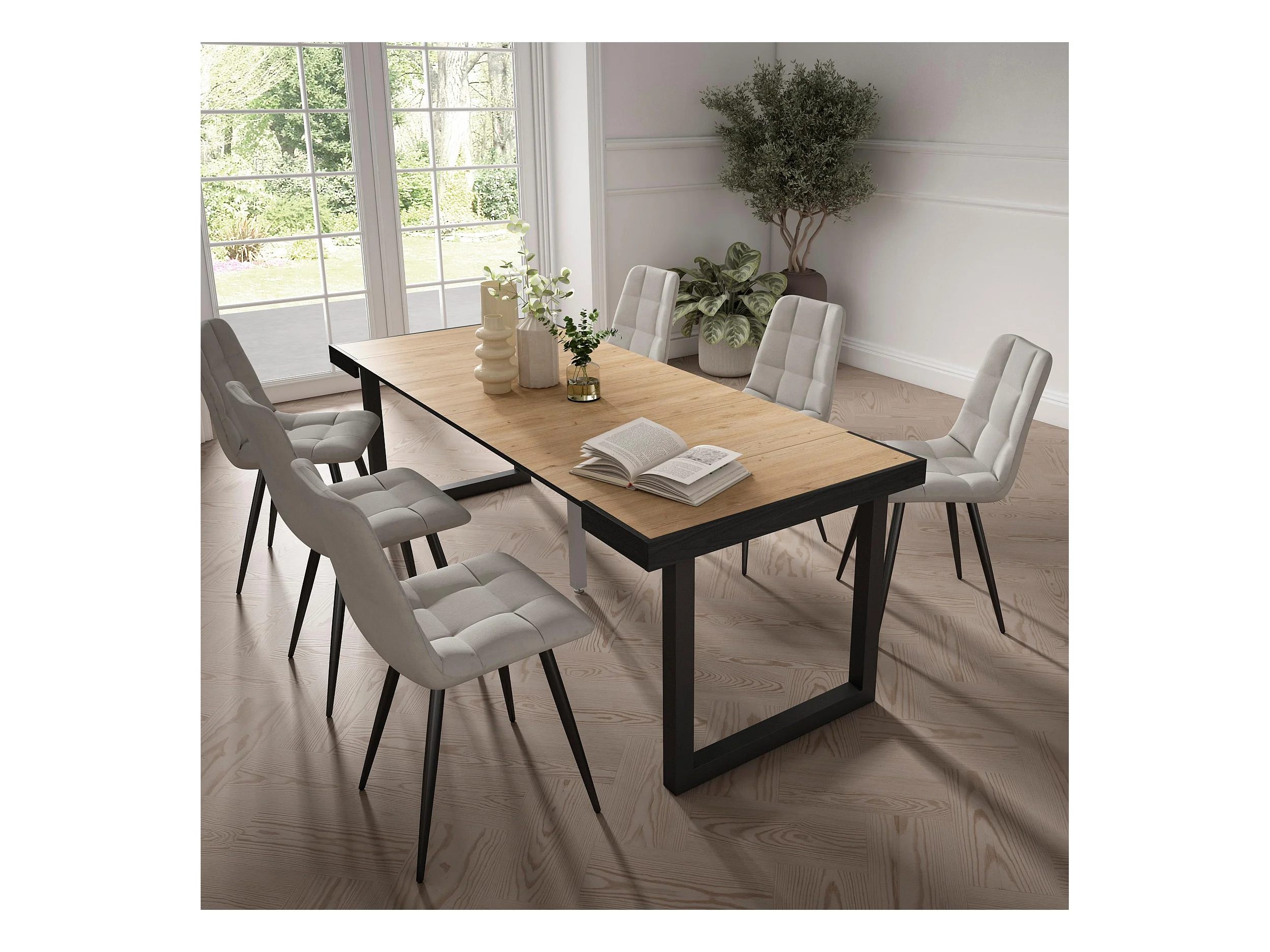 Ausziehbarertisch, 222x90x73cm, Für 10 Gäste, Massivholz Beine, Schwarz Eiche