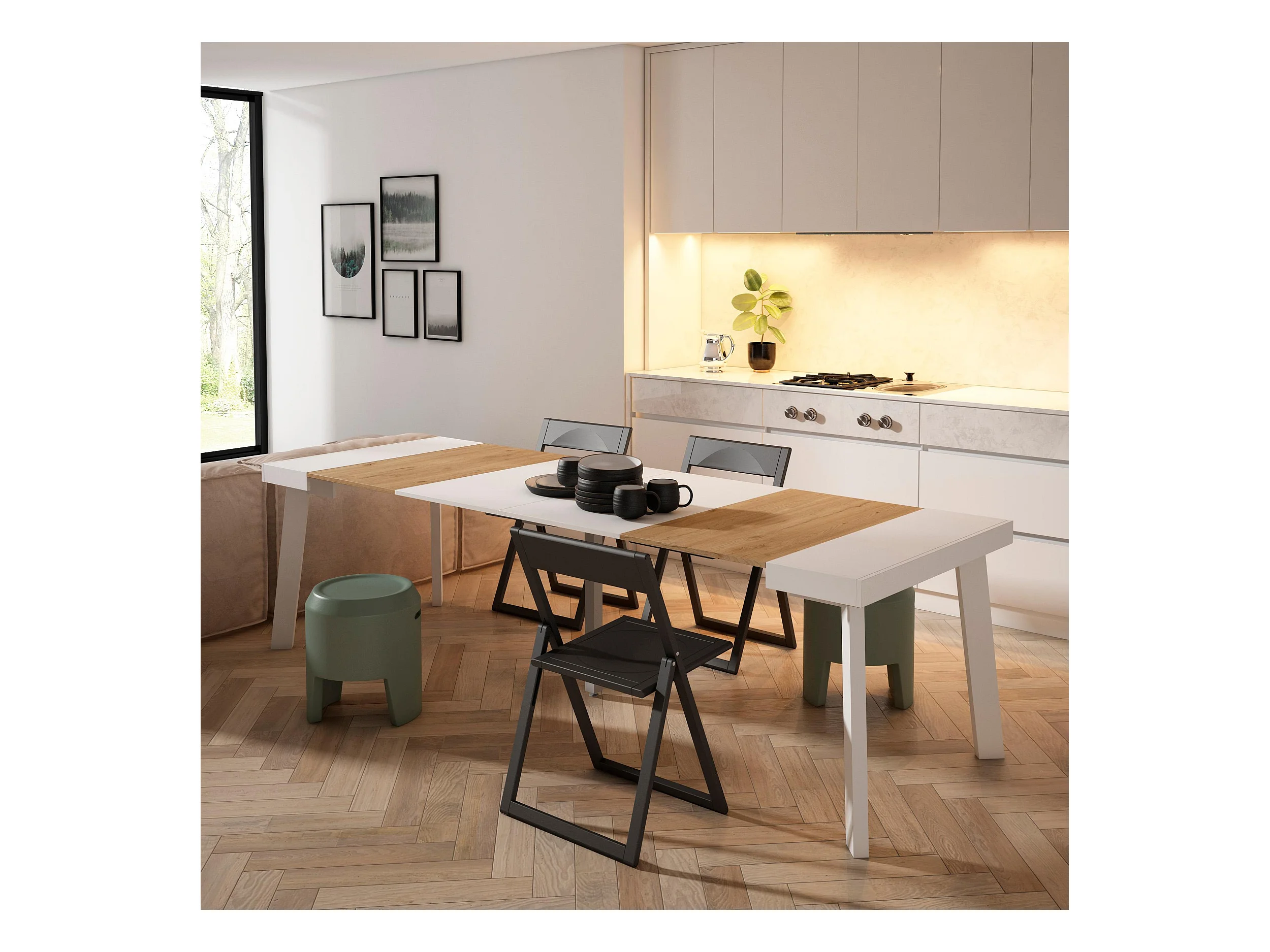 Ausziehbarertisch, 262x90x73cm, Für 12 Gäste, Hölzerne Beine, Eiche und weiß