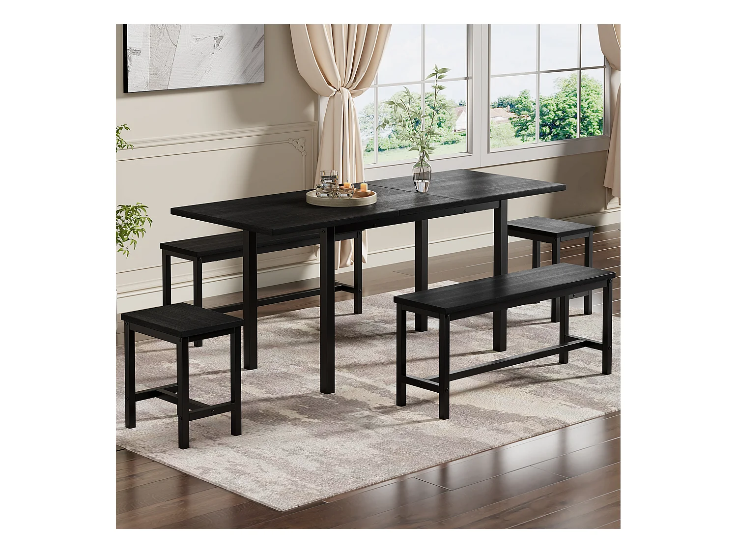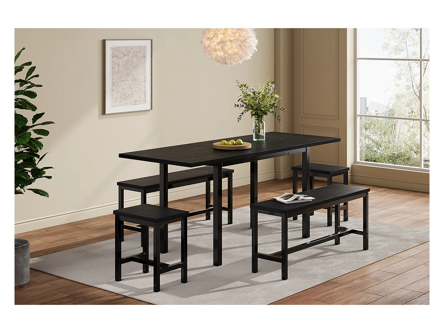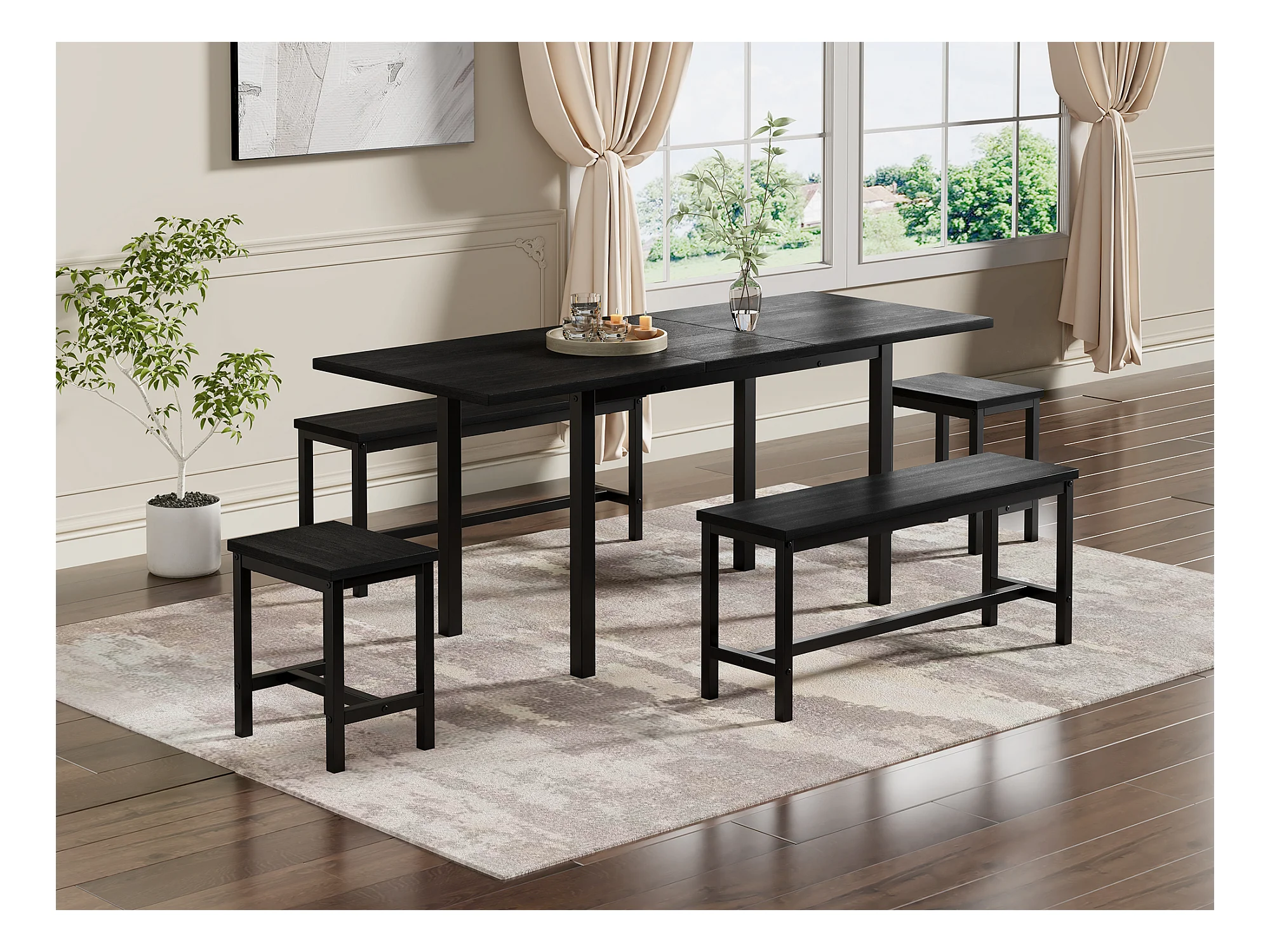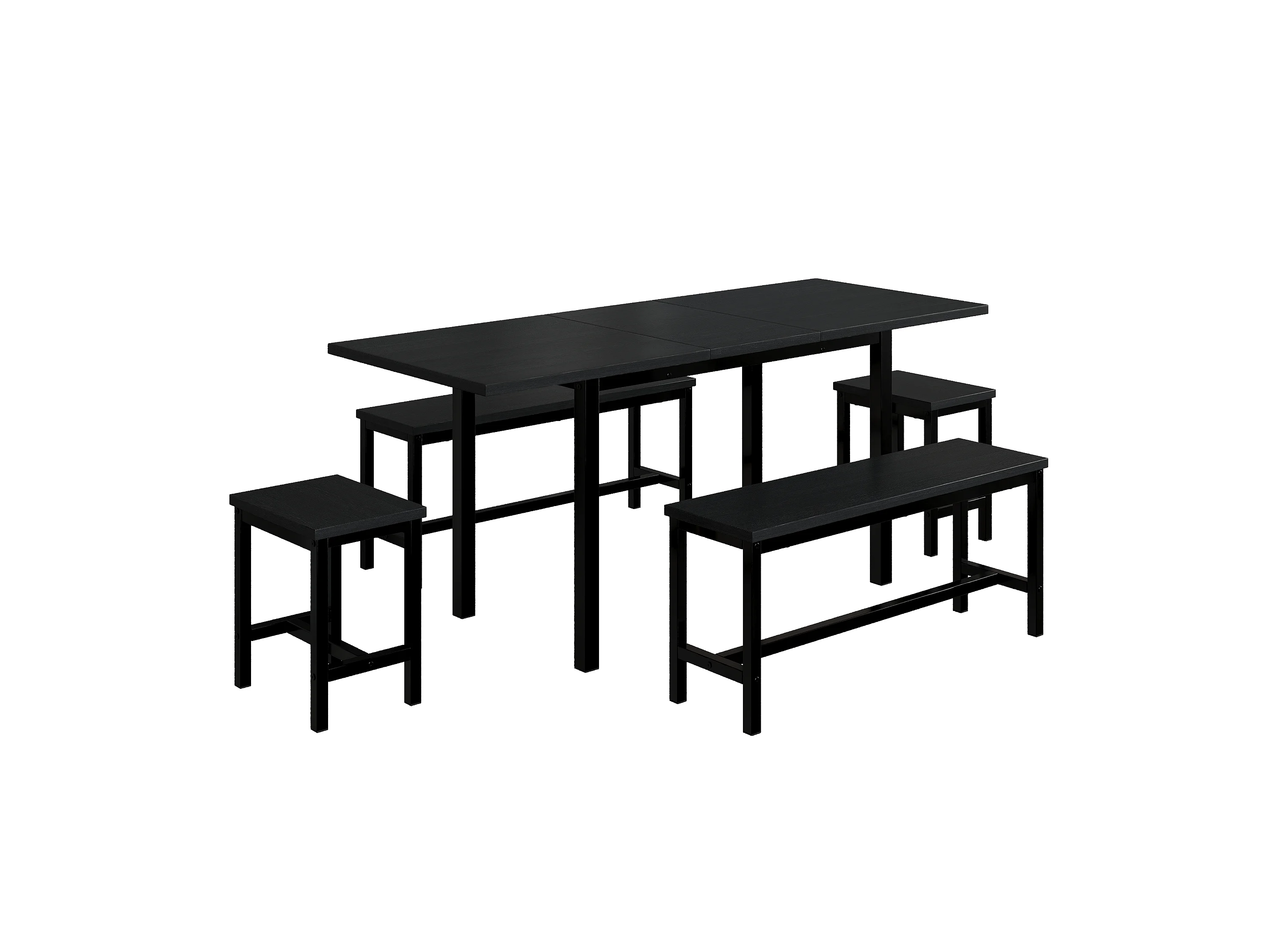 Ausziehbares Tischset + 4 Stühle - 160/120 x 80 x 75 cm - MDF-Holz und Metall - Schwarz