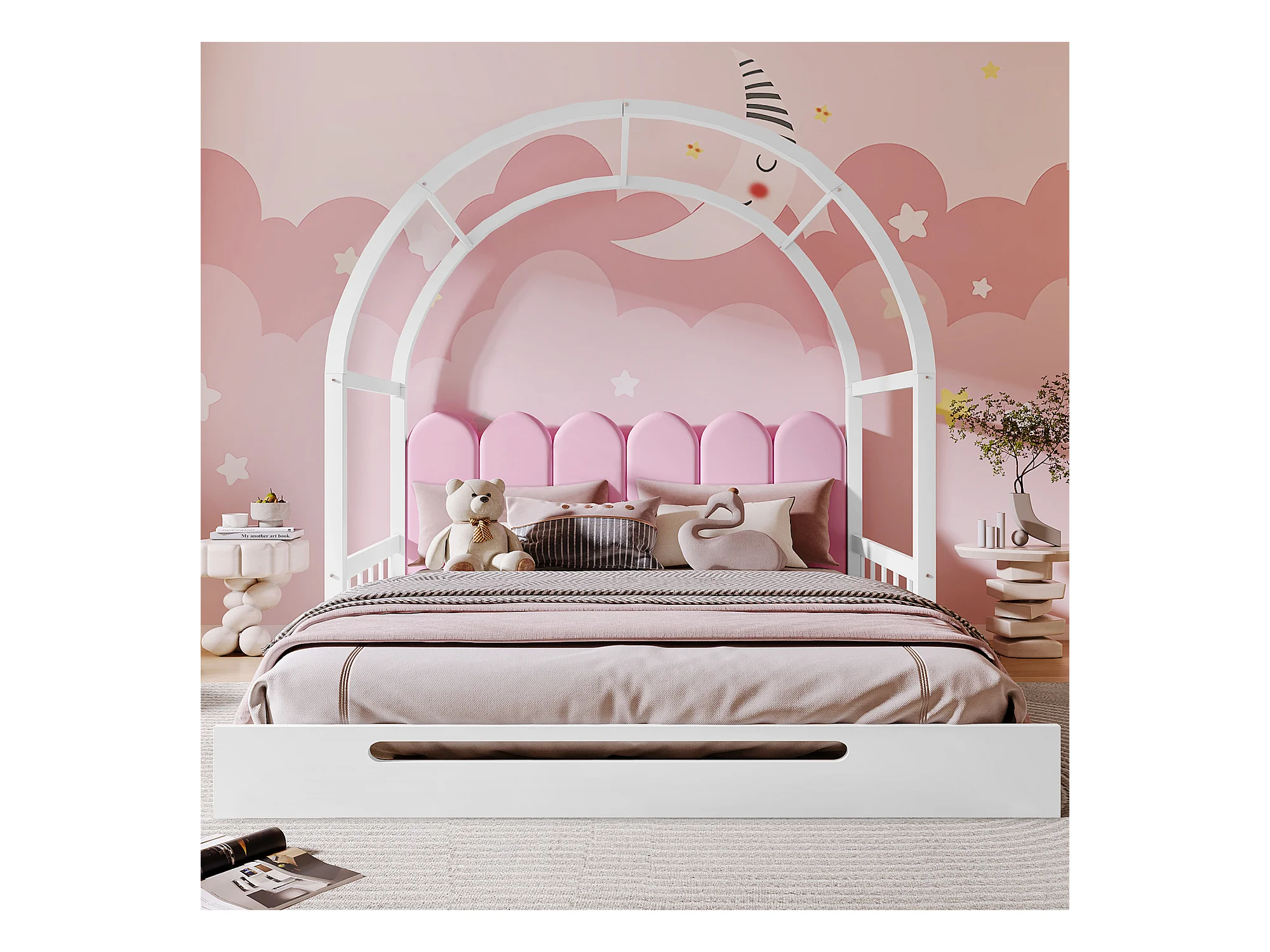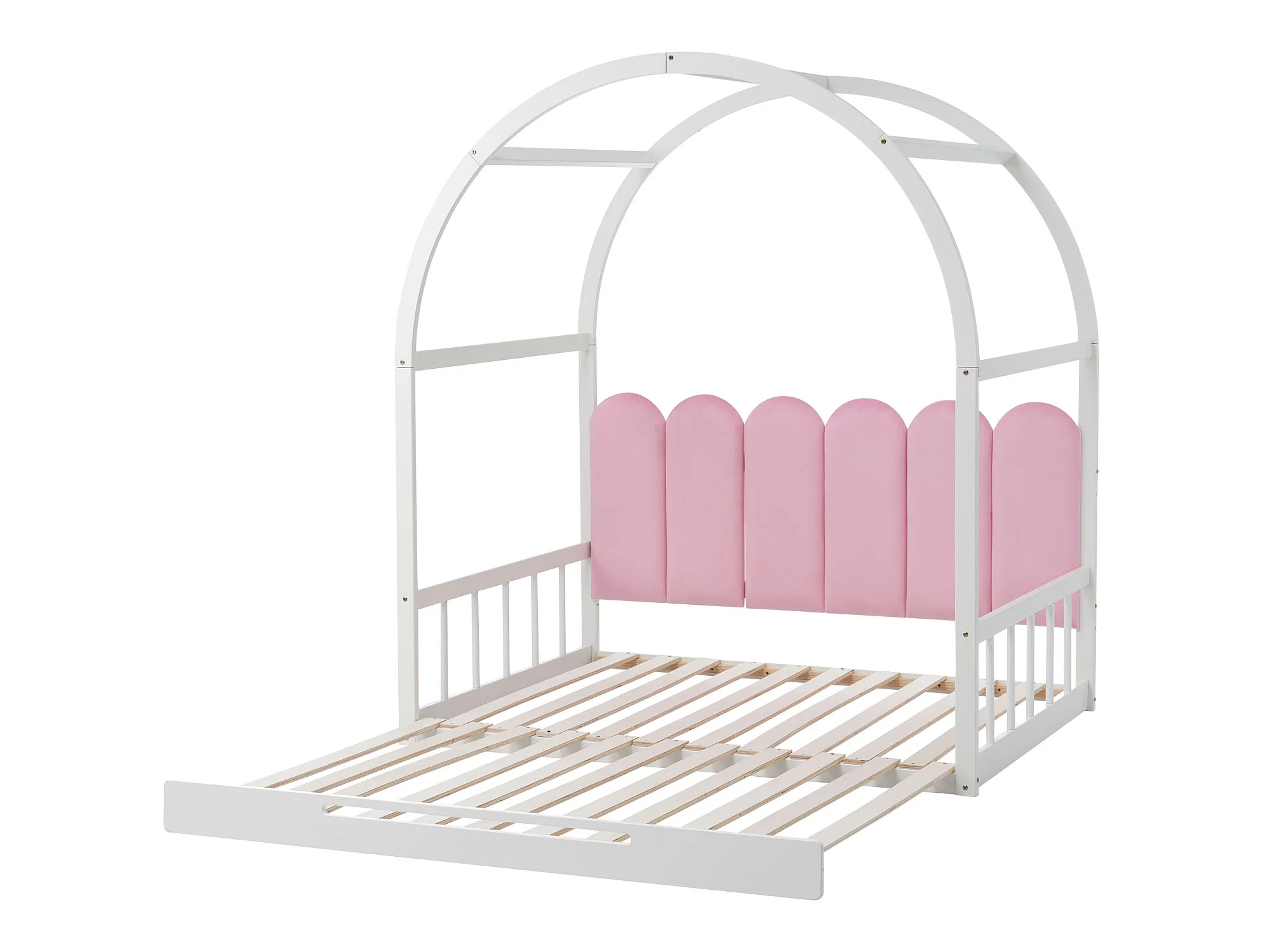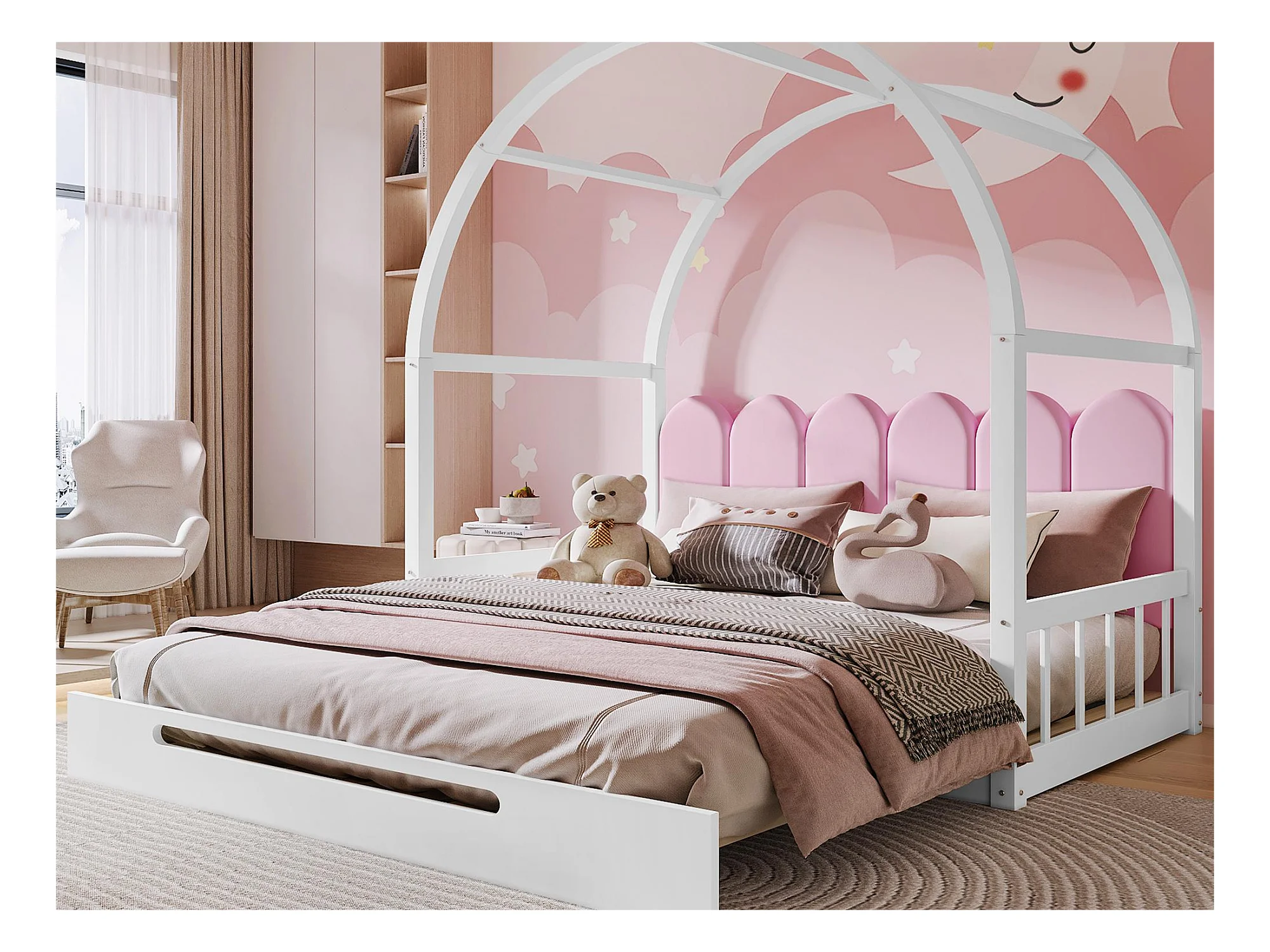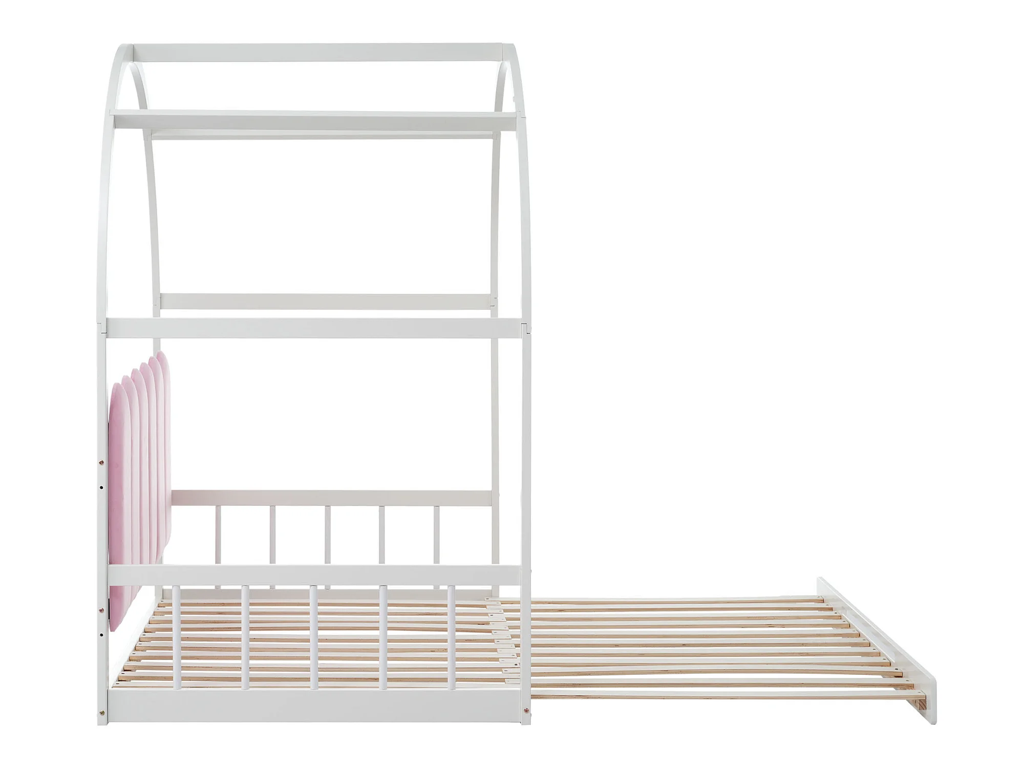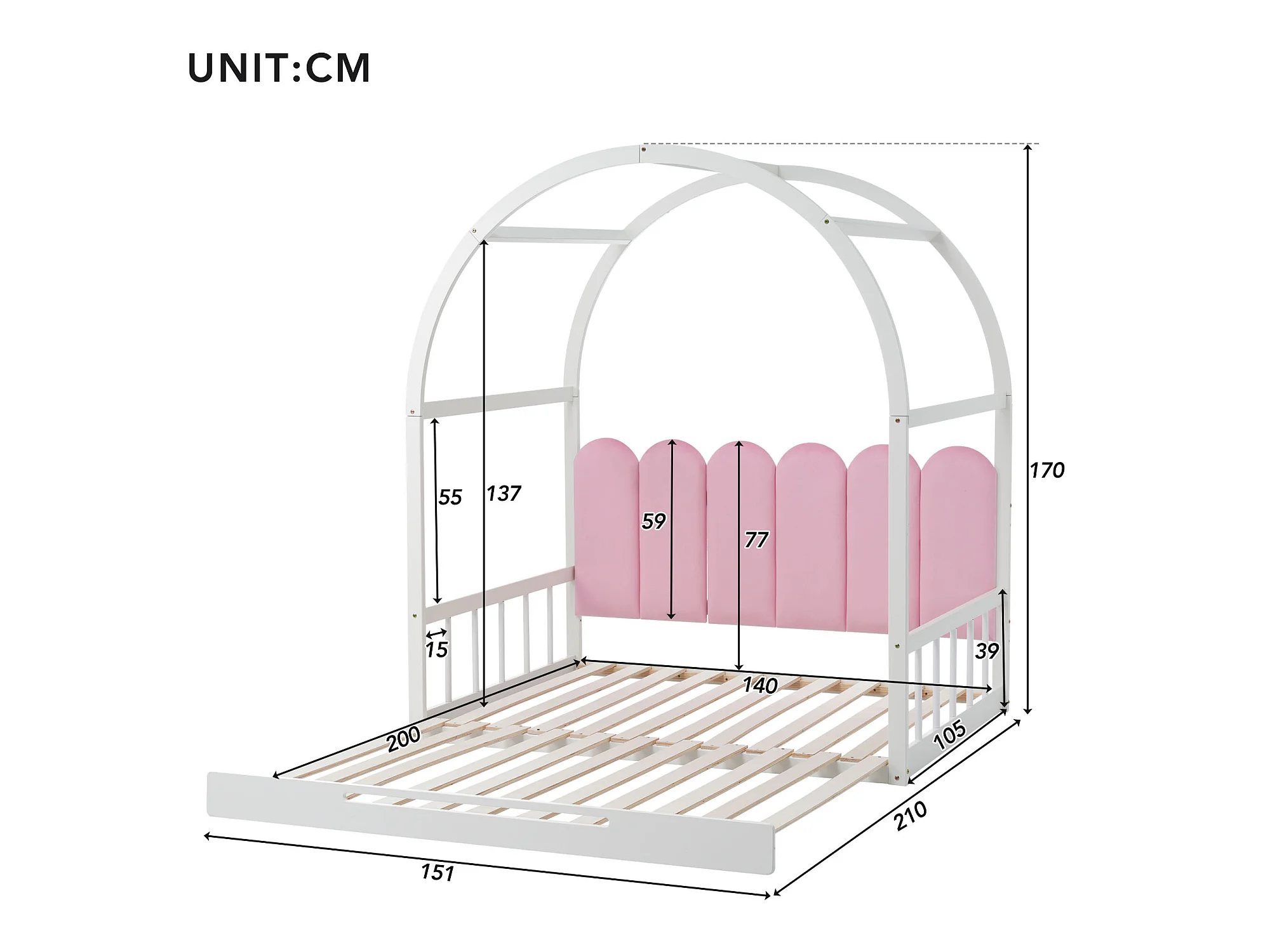 Ausziehbett 140 x 200 cm, Kinderbett aus Kiefernholz, Boxspring inklusive – weiß
