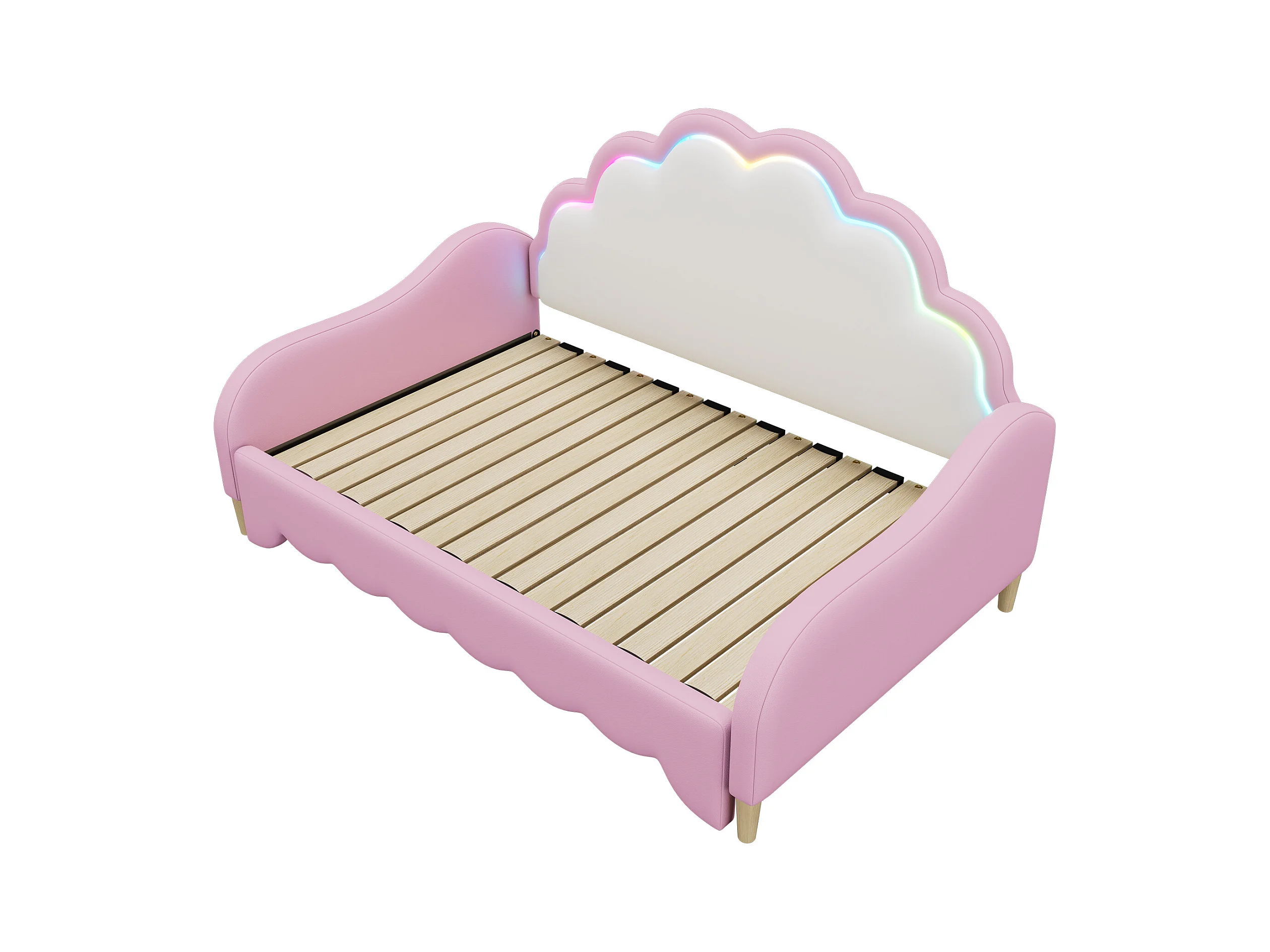Ausziehbett 140x200cm, Schlafsofa mit Kopfteil mit Stimmungslicht, komplett mit Matratze, Fernbedienung, rosa