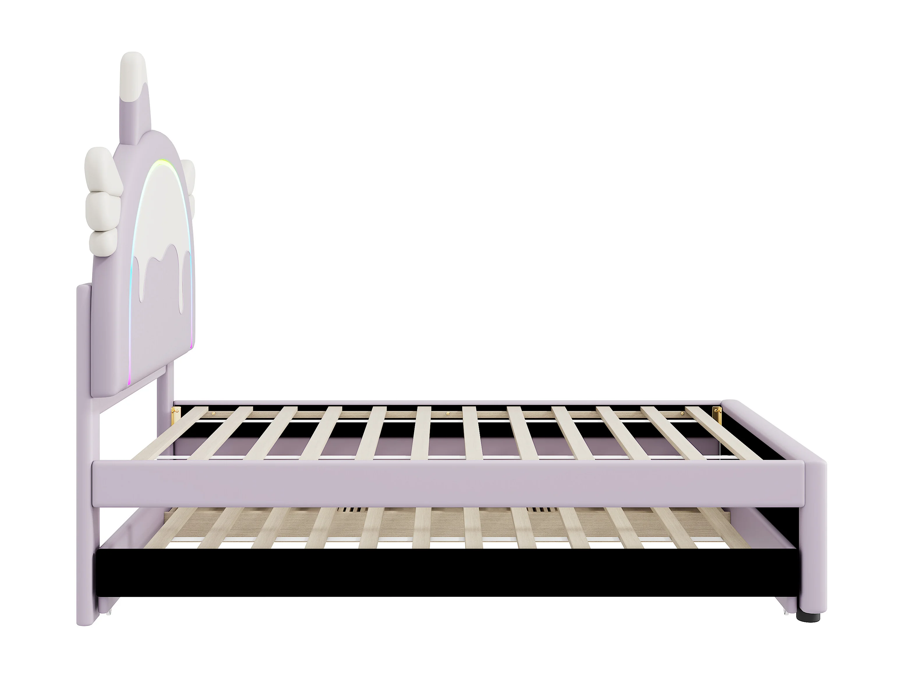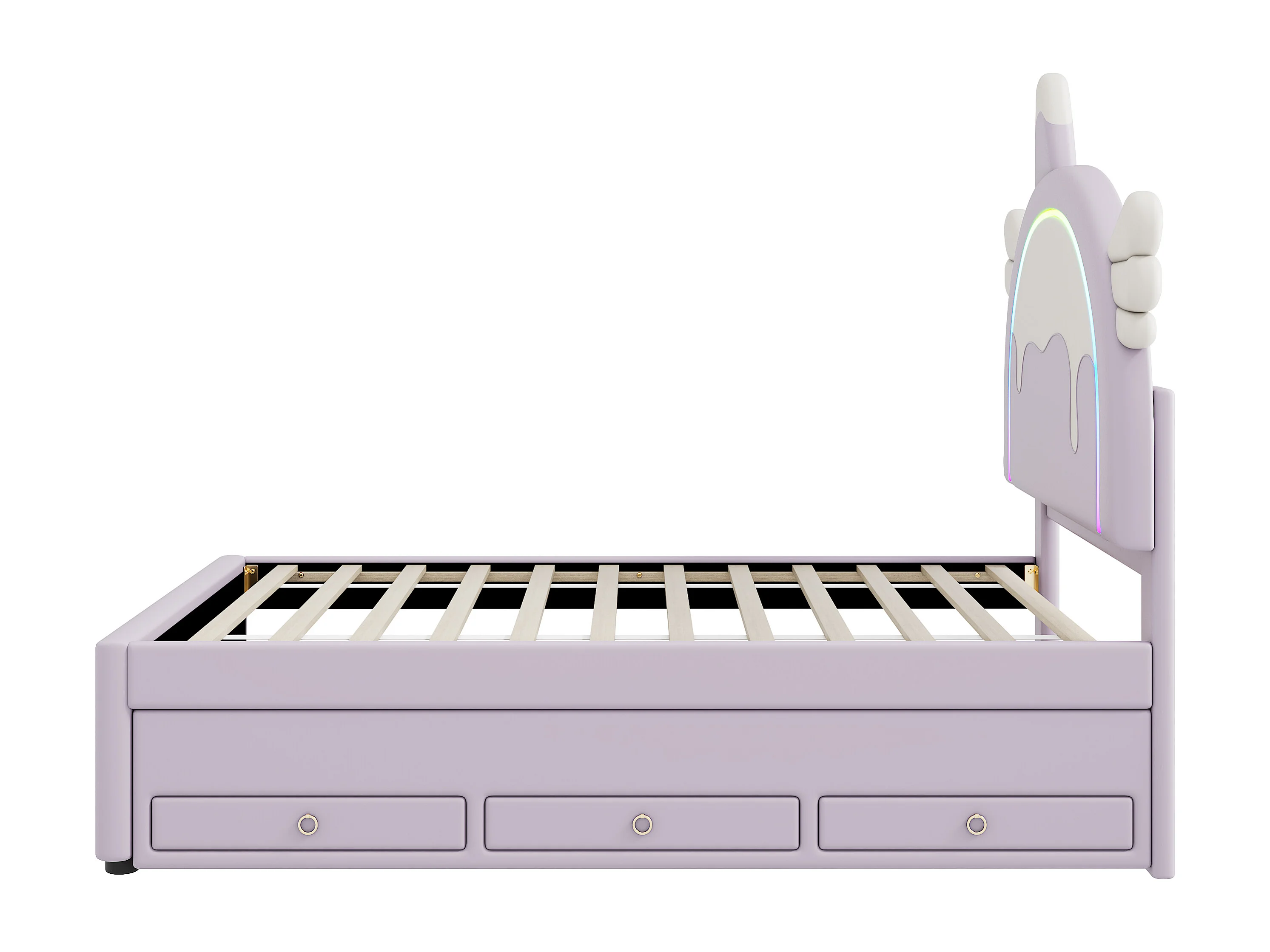 Ausziehbett 90 x 200 cm + 90 x 190 cm mit 3 Schubladen – Einhorn-Kopfteil – Kunstleder – Lila