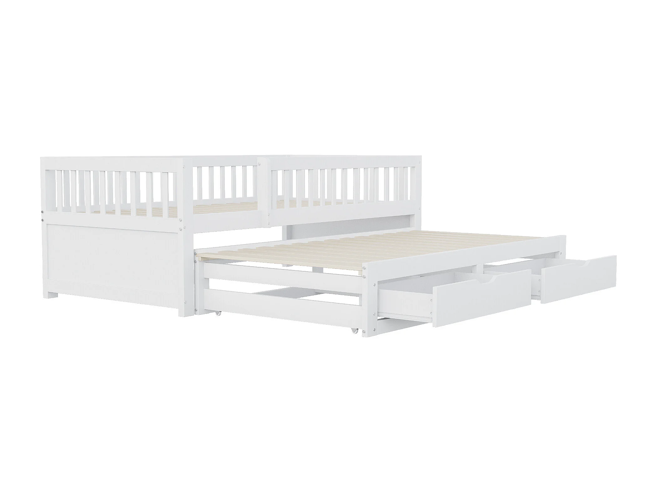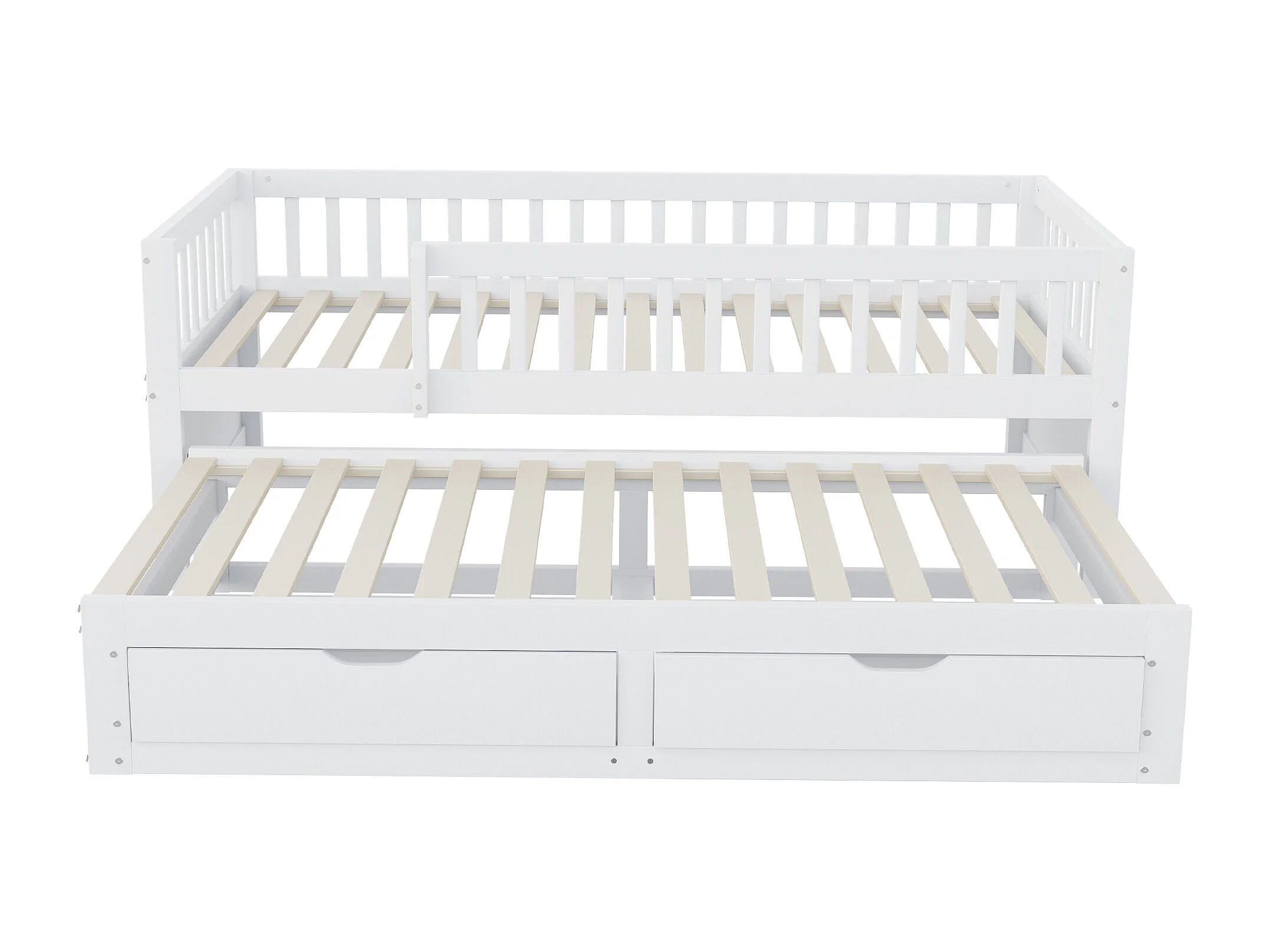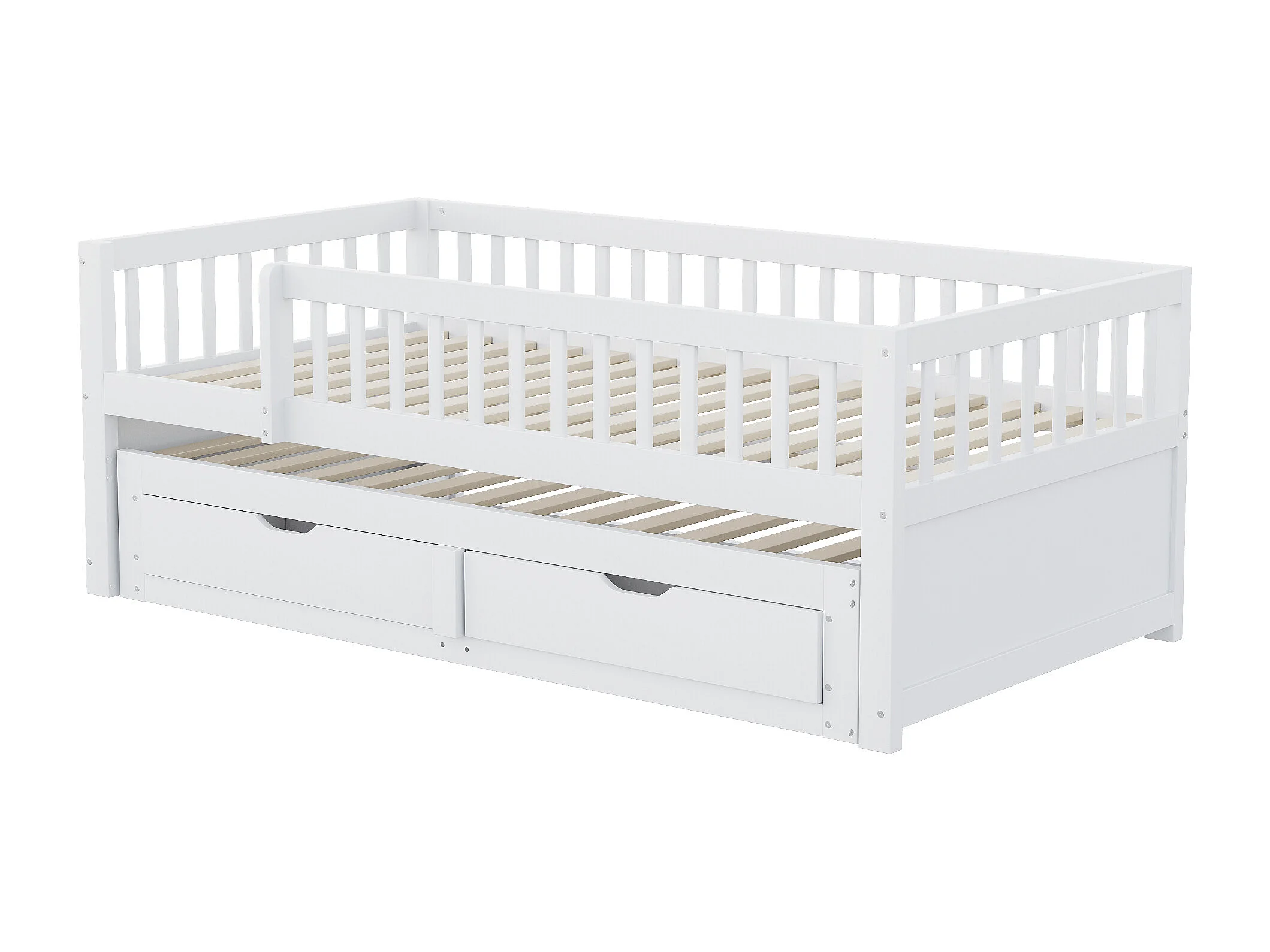 Ausziehbett 90 x 200 cm - Kinderbett mit 2 Schubladen und Absturzsicherung - Holz weiß
