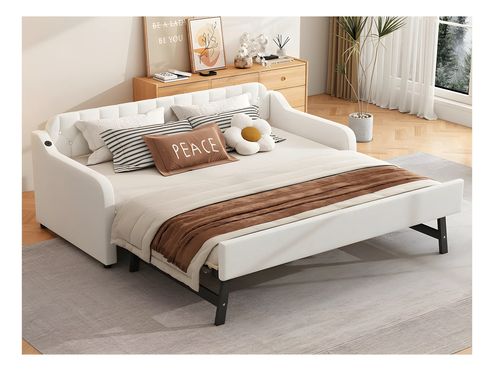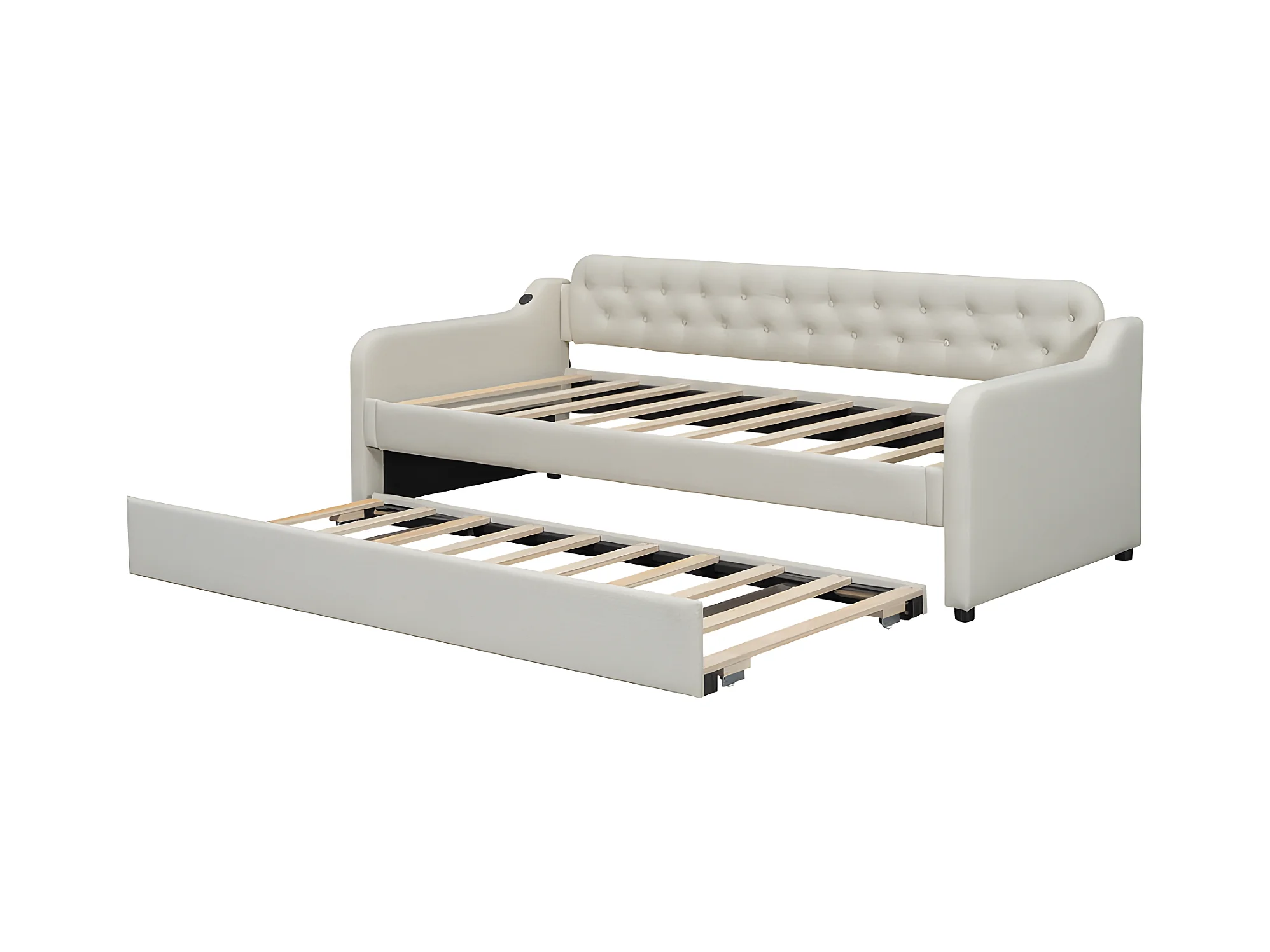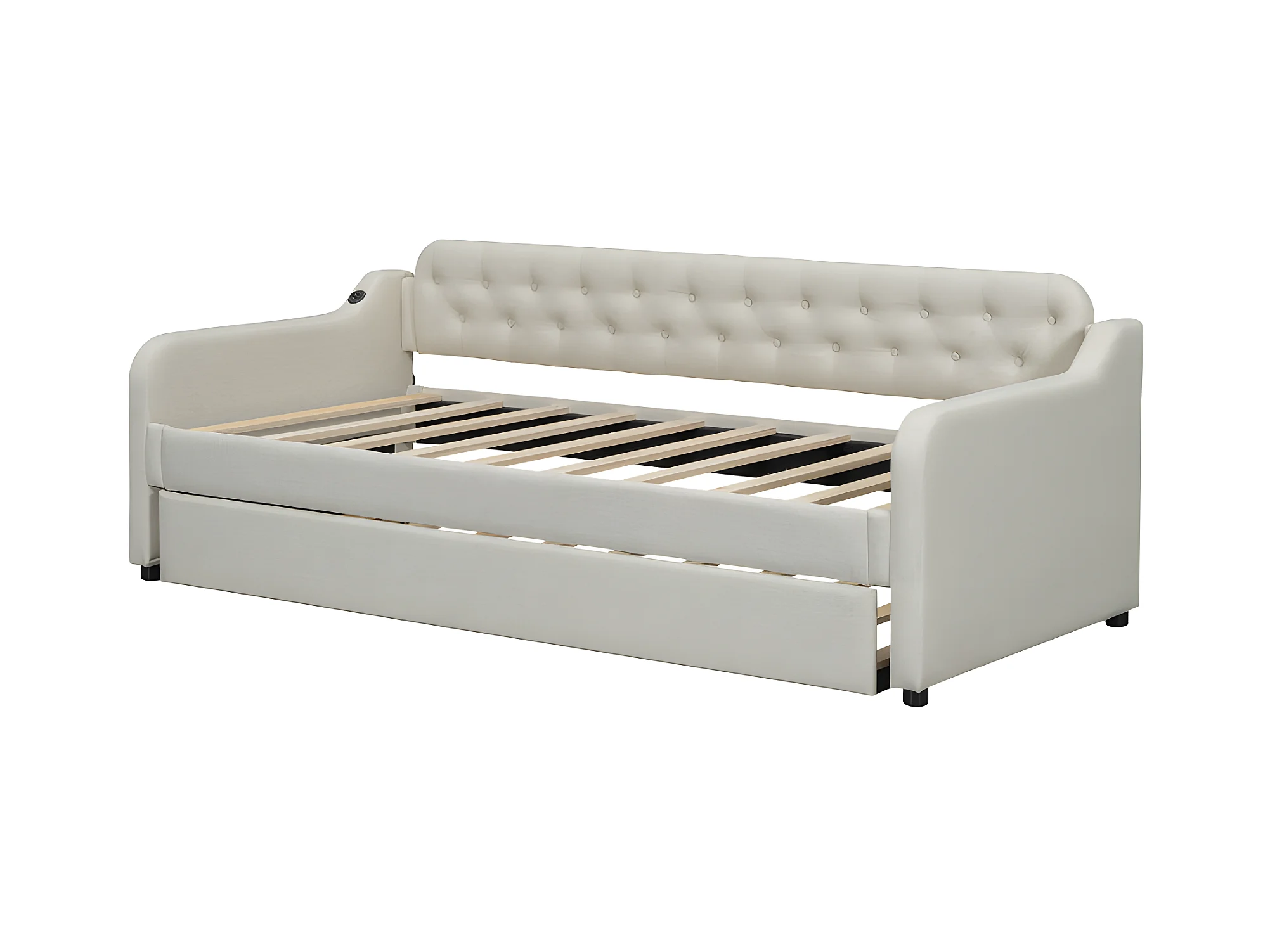 Ausziehbett 90 x 200 cm – mit USB-Anschluss – Leinenstoff – Beige