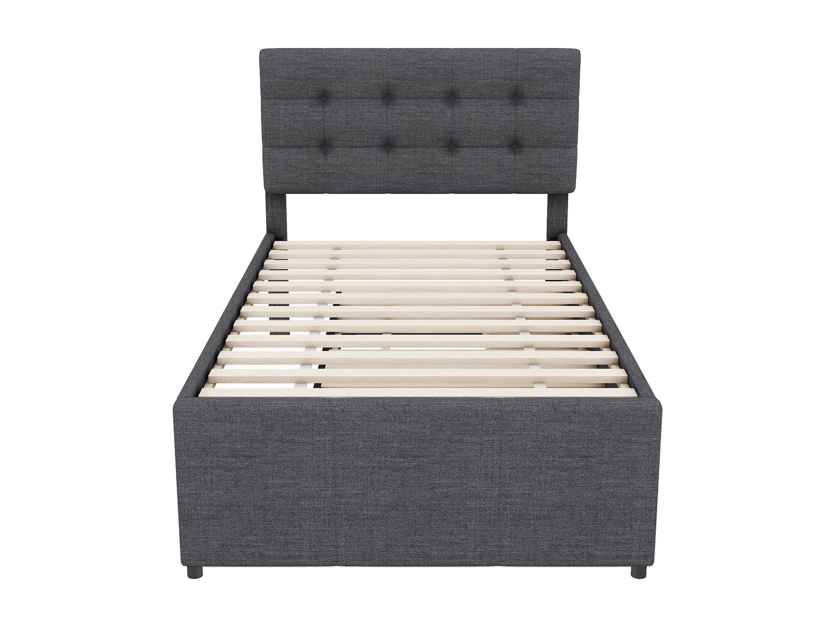 Ausziehbett 90x200 cm – Einzelbett mit 3 Schubladen – graues Leinen – ohne Matratze