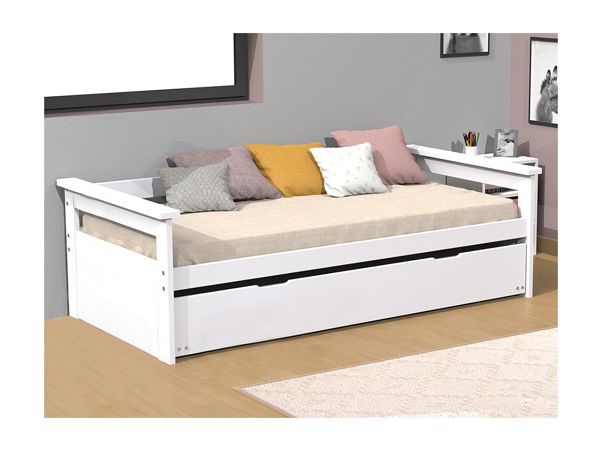Ausziehbett ALFONSO - 90x190cm - MDF & Tanne - Weiß