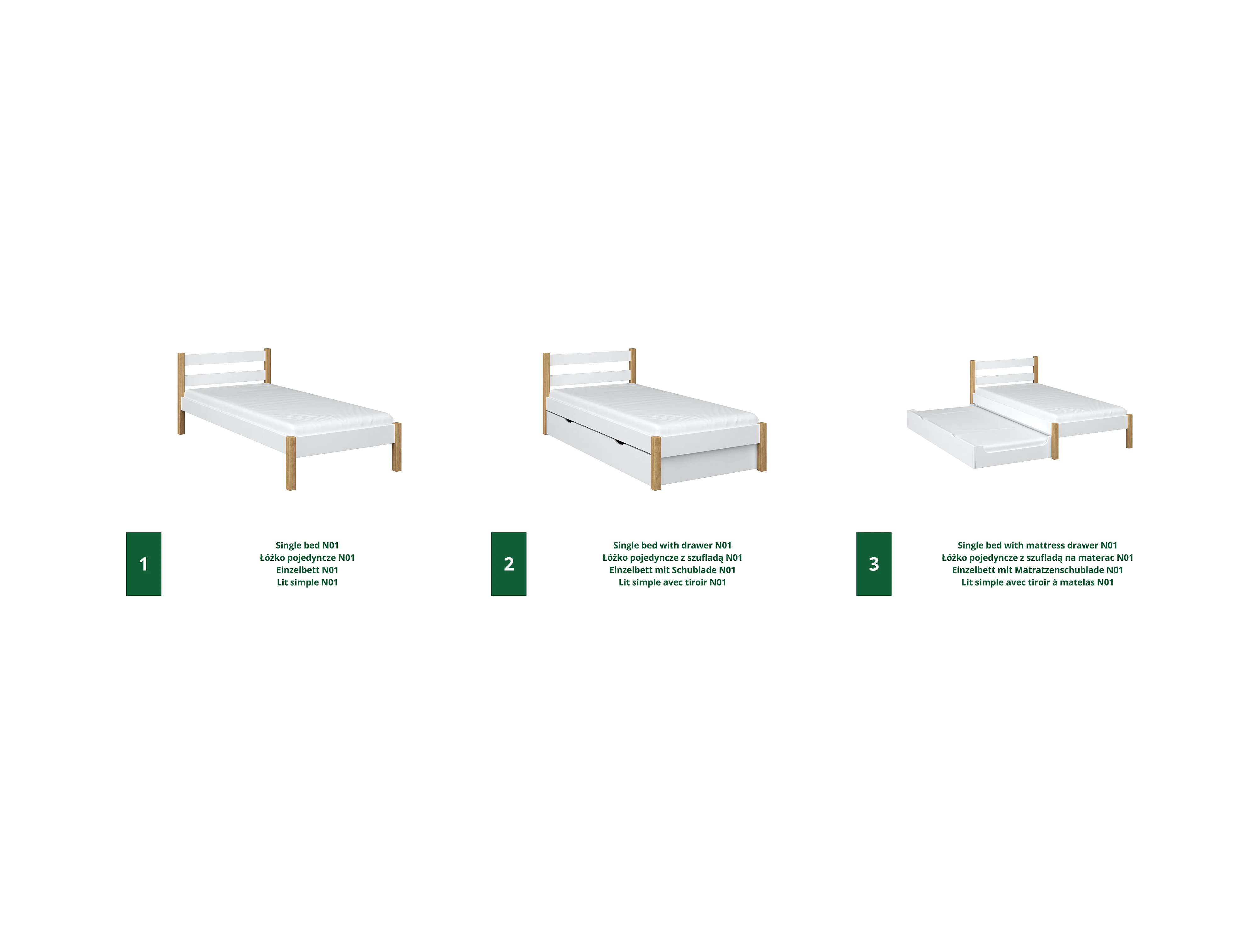 AUSZIEHBETT N01 Weiß / Eiche Natur 80x190