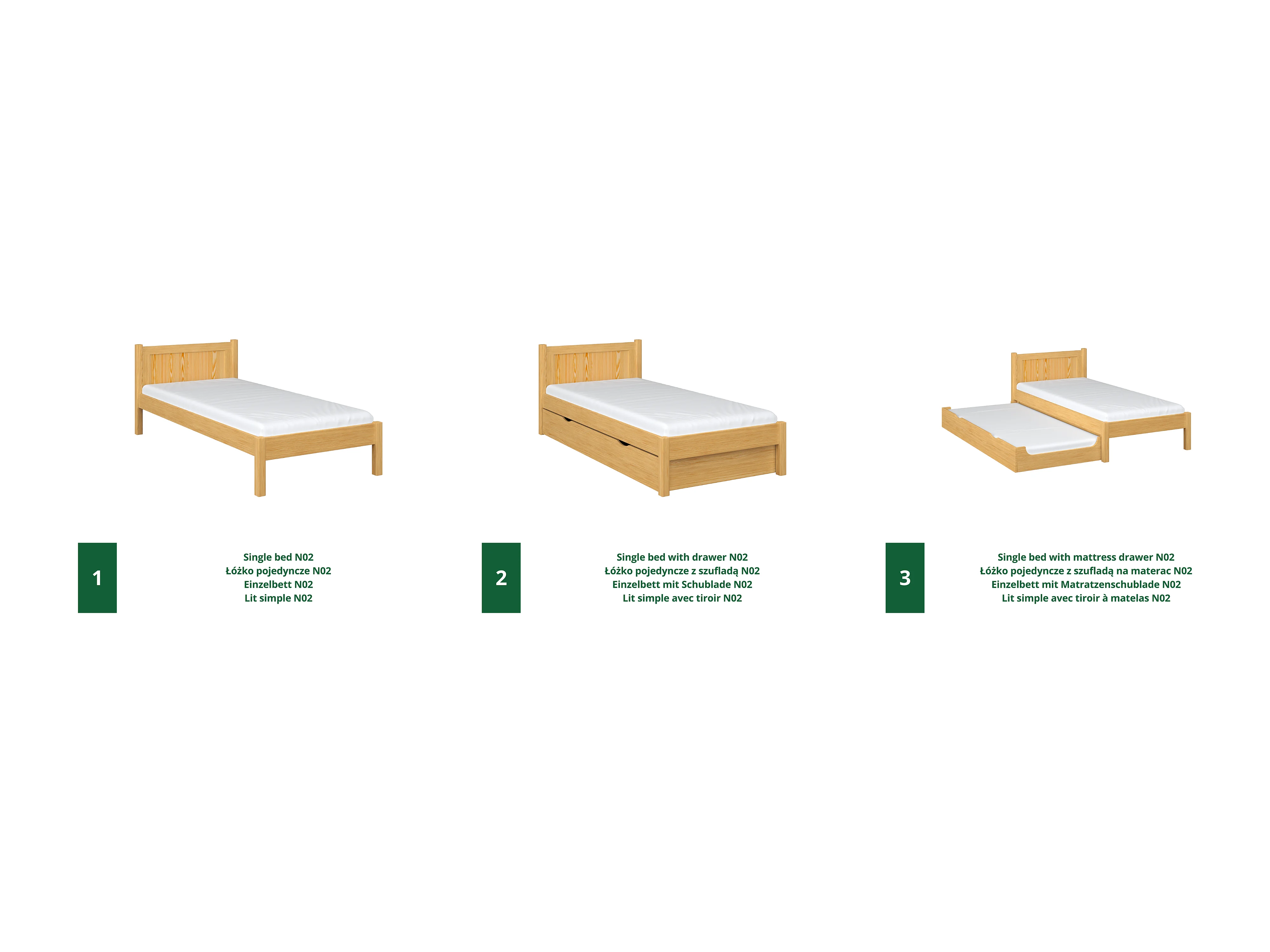 AUSZIEHBETT N02 Naturkiefer 100x190