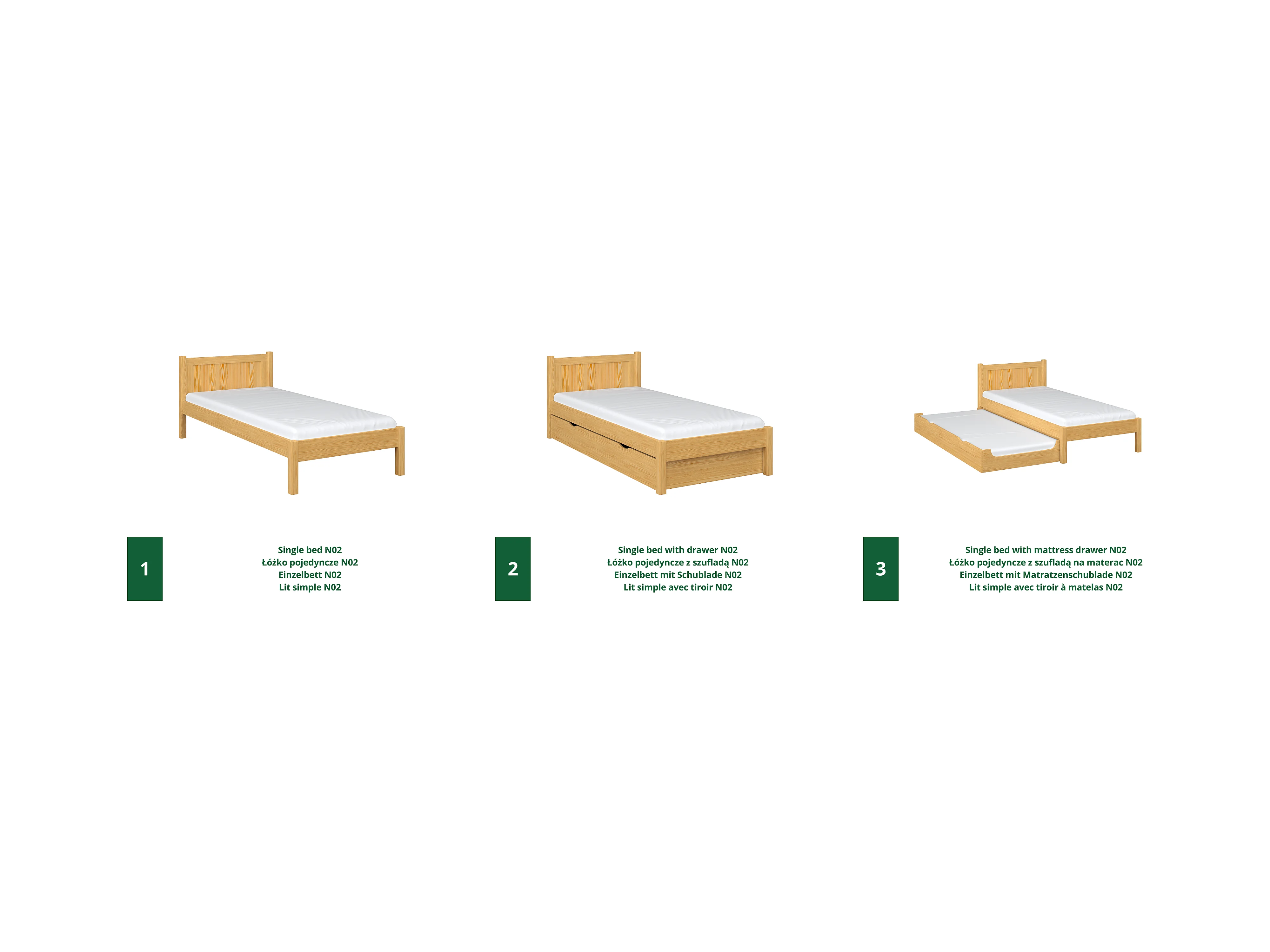 AUSZIEHBETT N02 Naturkiefer 80x180