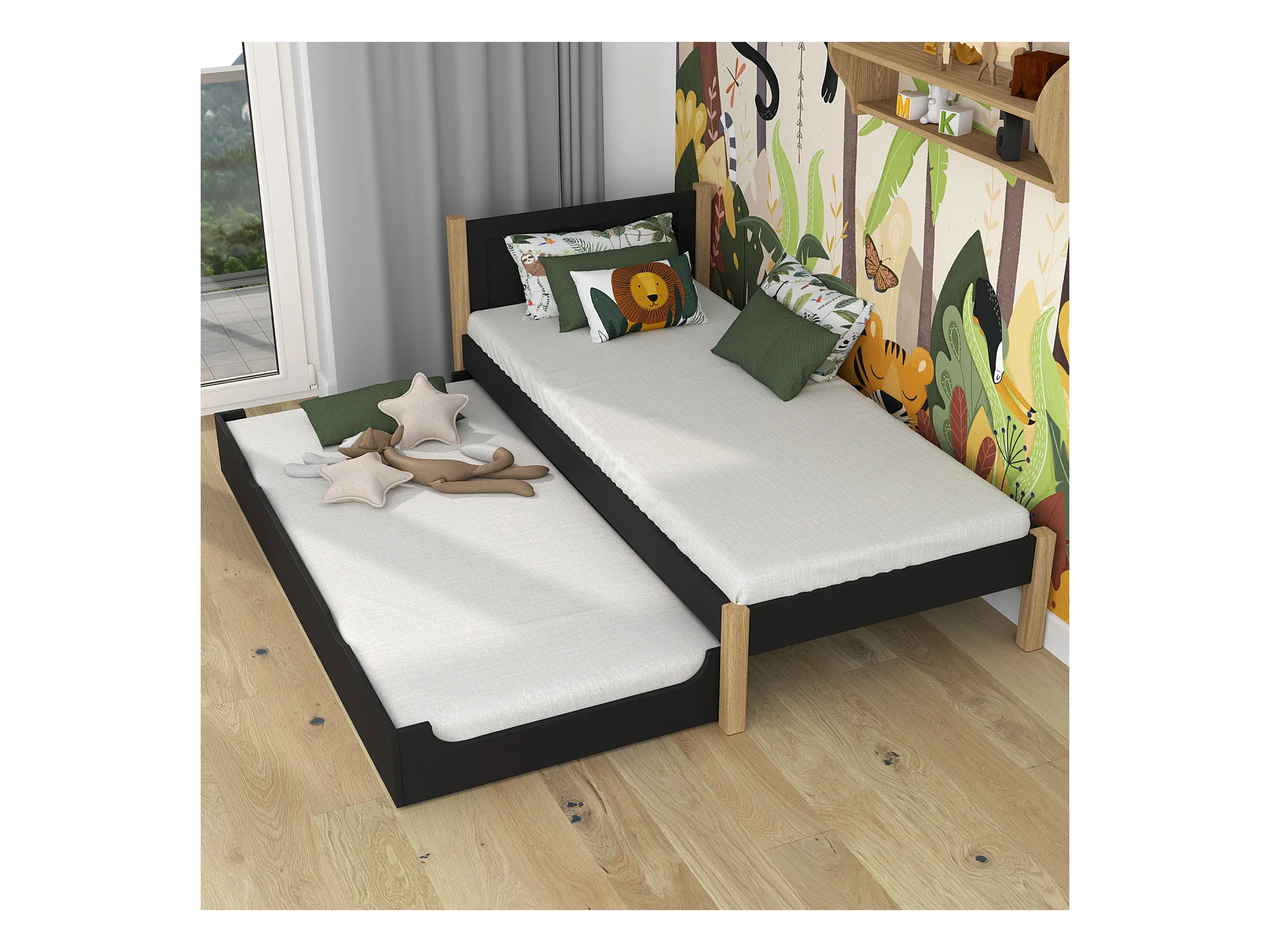 AUSZIEHBETT N02 Schwarz / Eiche Natur 100x180