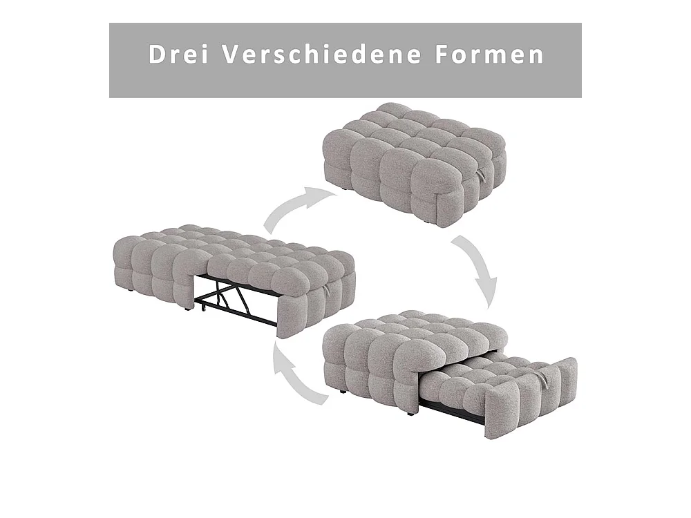 Ausziehbett, Schlafsofa, Sitzkissen 2 in 1, Teddybär, grau, Maße 183 x 76 x 42 cm