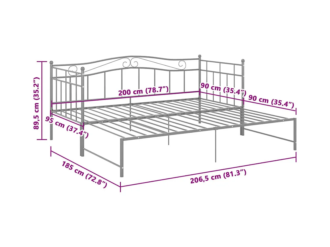Ausziehsofa Bettgestell Grau Metall 90x200 cm