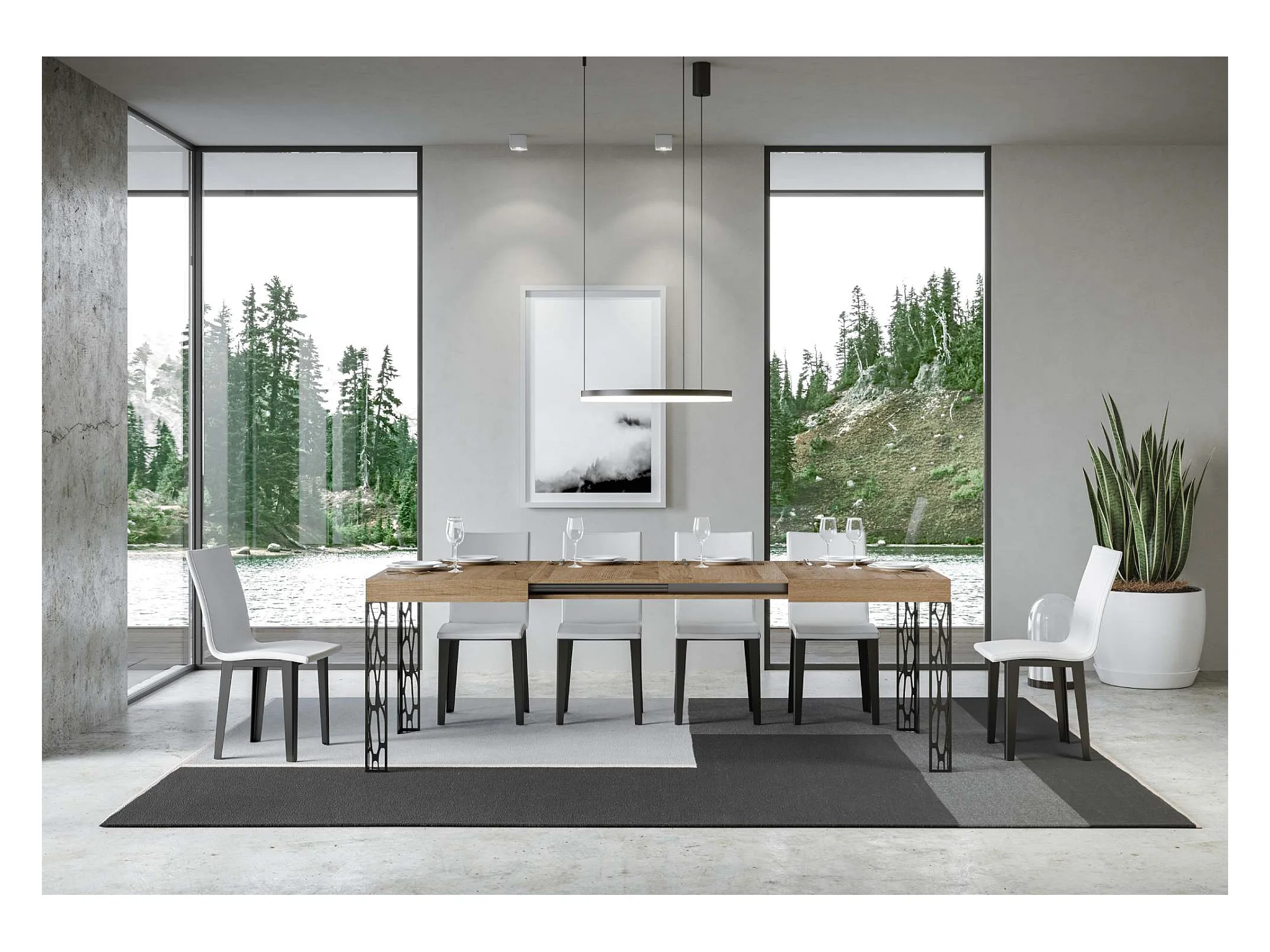 Ausziehtisch 90x130/234 cm Ghibli Eiche Natur mit Eisenrahmen aus Anthrazit