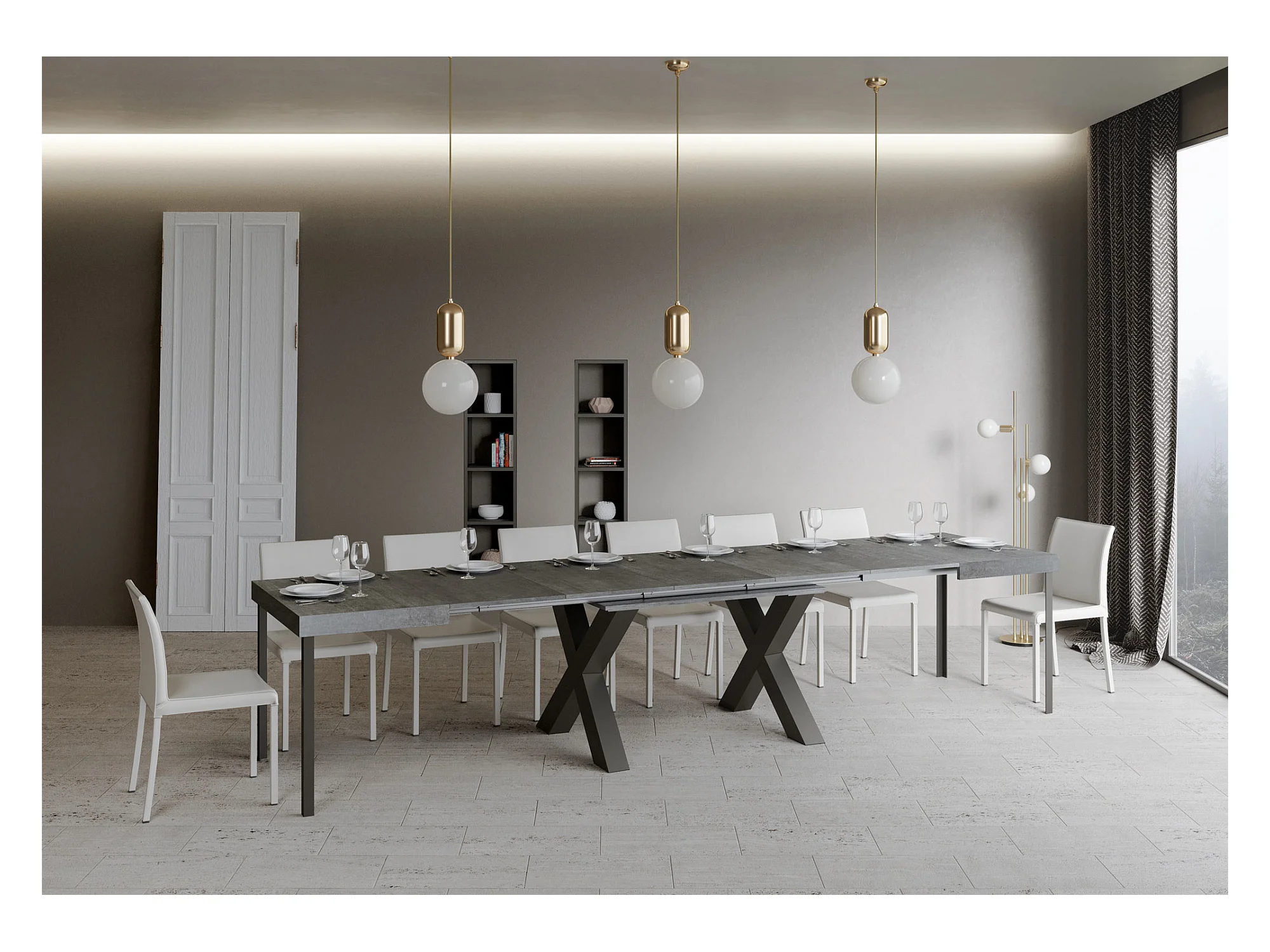Ausziehtisch 90x130/390 cm Traffic Zement mit Eisenrahmen aus Anthrazit